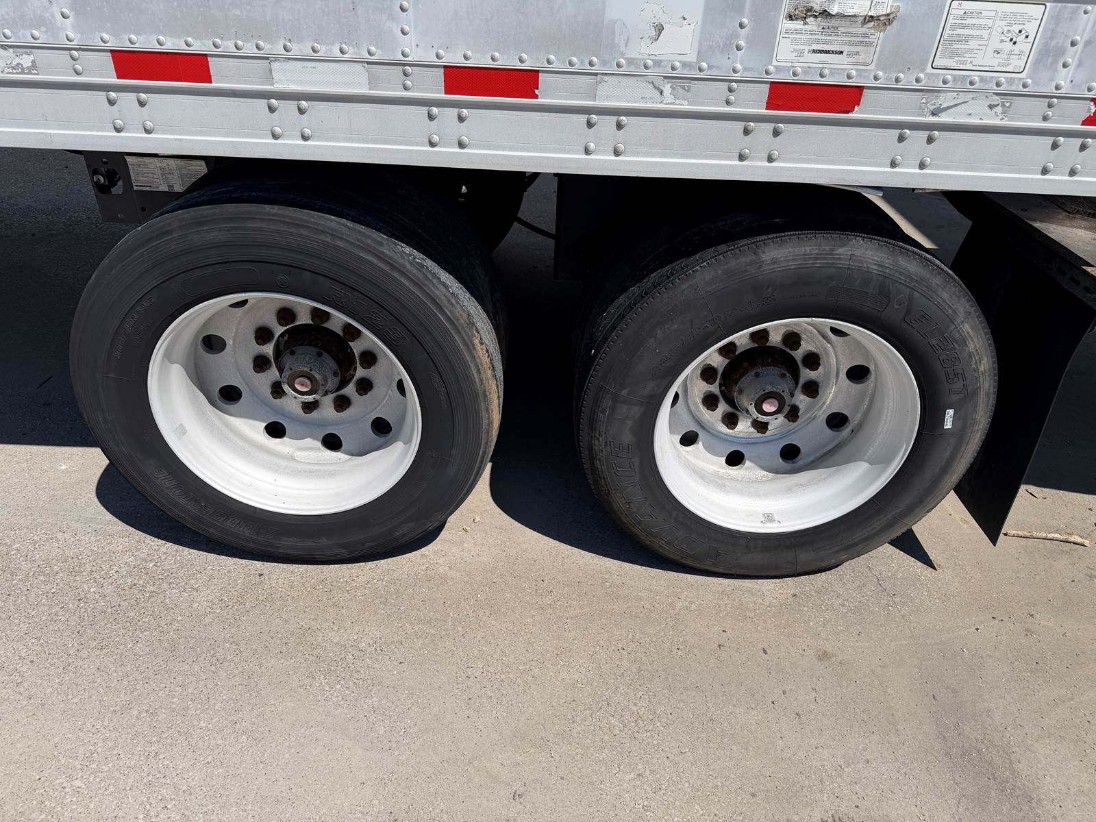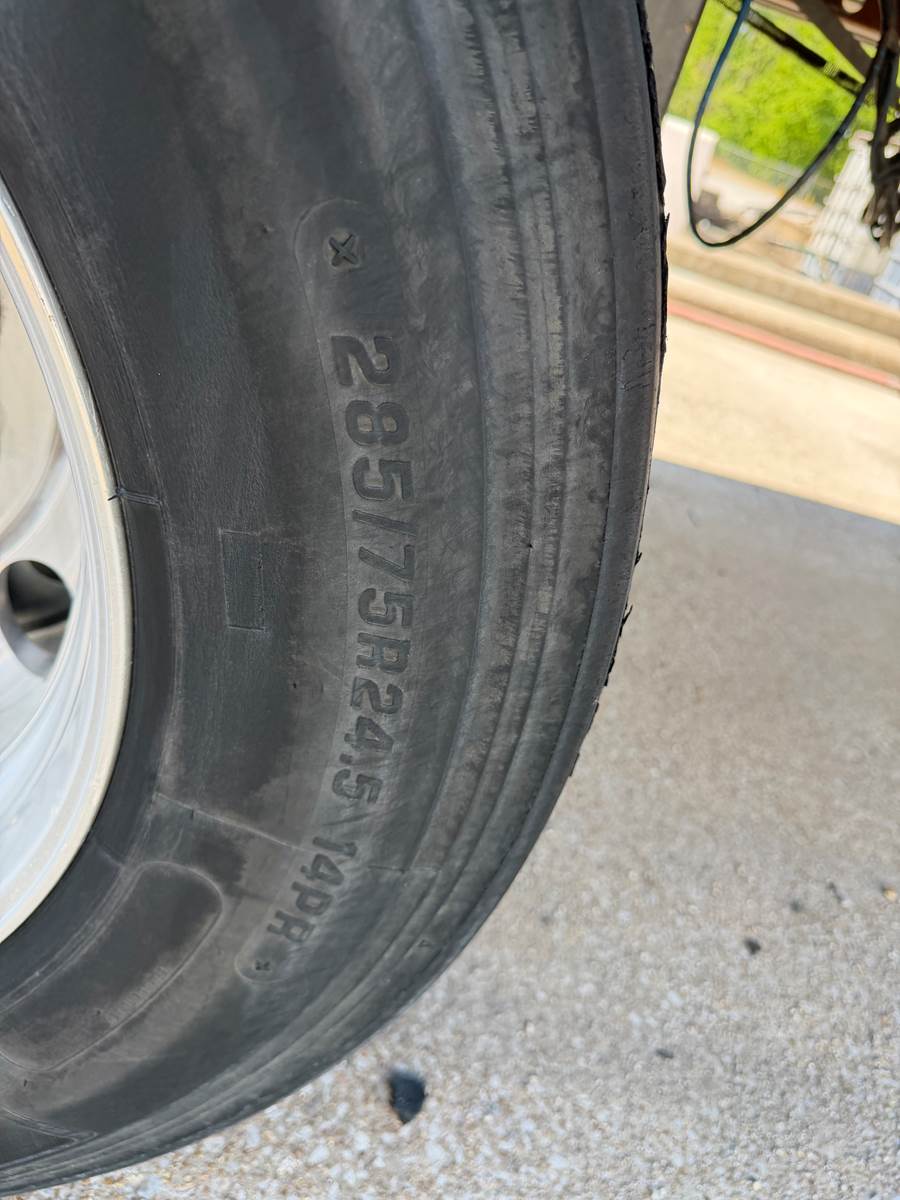 285/75R24.5 Tires / 2 tires @ 10/32nds / 1 @ 9/32nds / 1 @ 7/32nds / 1 @ 5/32nds / 3 @ 4/32nds
