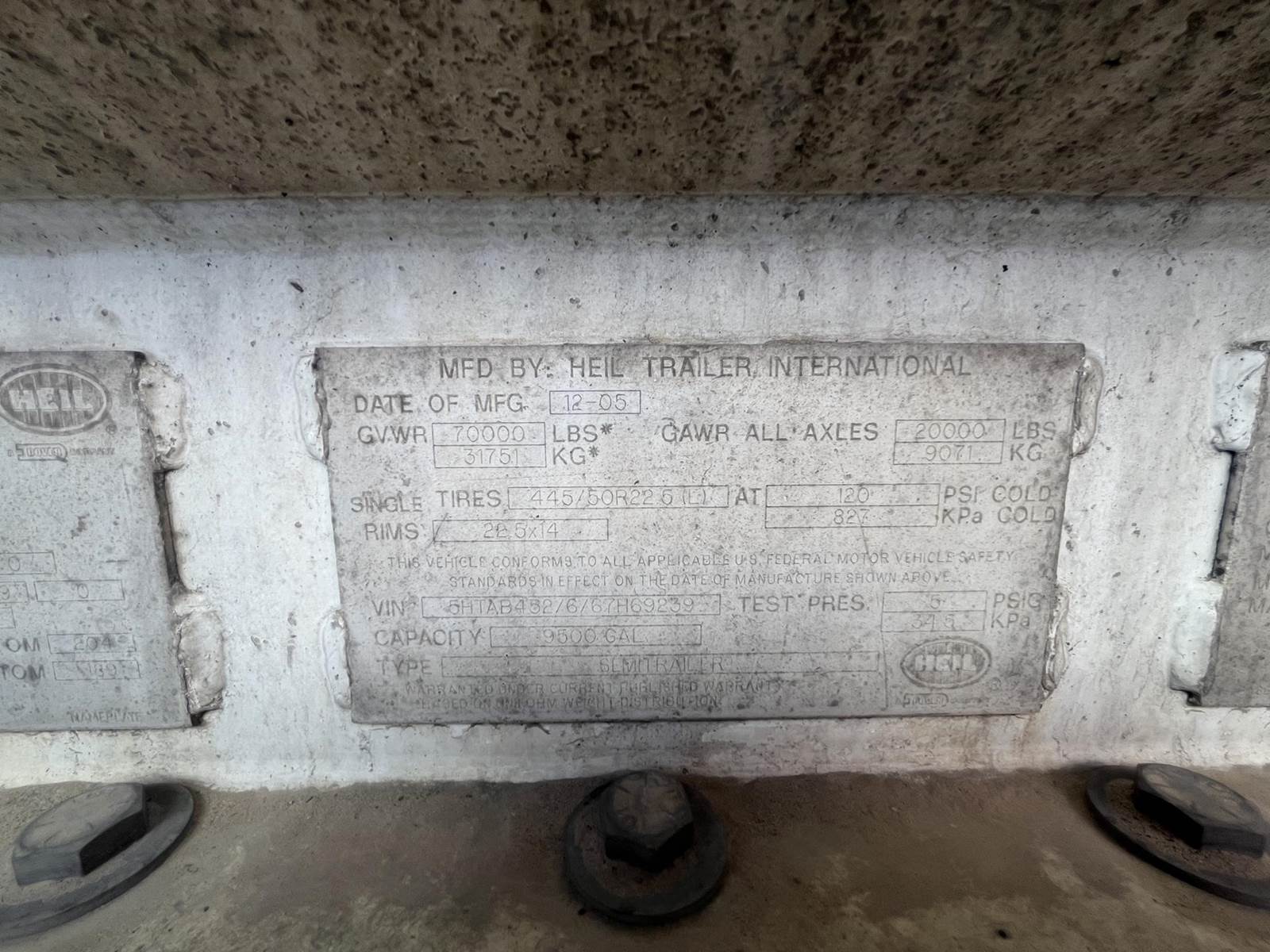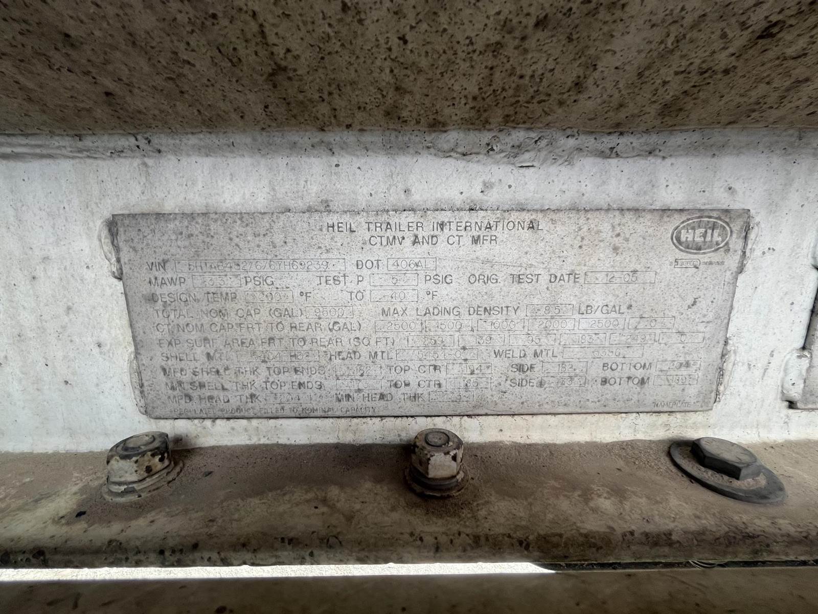 2006 Heil Fuel Trailer, - 9500 gal, - DOT 406, - 5 Compartments, 2500 - 1500 - 1000 - 2000 - 2500, - Aluminum tank, - Vapor recovery, -...