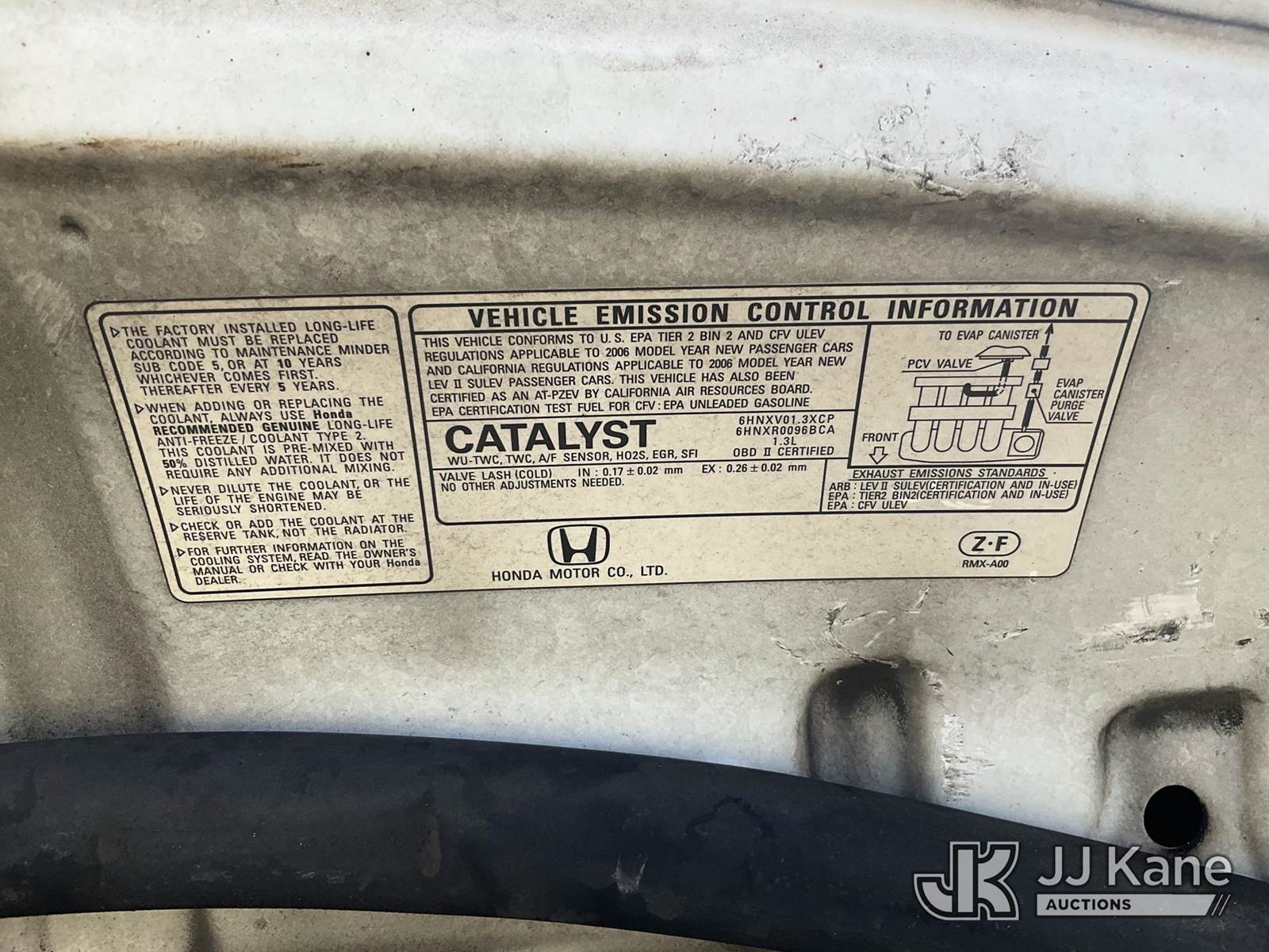 2006 Honda Civic Hybrid 4-Door Hybrid Sedan, s/n JHMFA36266S003370, 1.3L L4 SOHC 8V FWD, HYBRID, Auto, A/C, True Mileage Unknown (Not Running, No Key, Missing Wheels, Missing Lights, Missing Side Mirrors, Interior Stripped Of Parts, Must Be Towed) (Bidding Restricted to Licensed Vehicle Dealers Only), This is a Titled Item NOTE: This unit is being sold AS IS/WHERE IS via Timed Auction and is located in Jurupa Valley, CA. Inspection & preview days for this unit are the 2 business days prior to the first day of items closing for this auction, item is located at 4510 Muth Way Jurupa Valley, CA 92509 and hours of operations are 8a-4p. For pre-sale questions, please contact please contact Office Staff @ (310) 353-7140. Dealer License Number 45696. (Buyer is responsible for removal. Assistance by consignor or JJ Kane Auctions is not assured.)