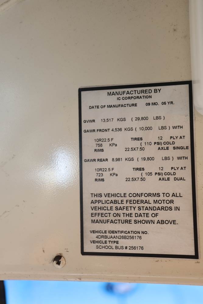 2006 IC Bus CE Series School Bus. VIN: 4DRBUAAN26B256176. Body: School Bus 1D. Engine: 7.6L I6 DI Diesel. Asset #: 111. Odometer reading: 194013. Seller reports: Ran when parked, body rot, some leaks, must be towed. Title & key available.