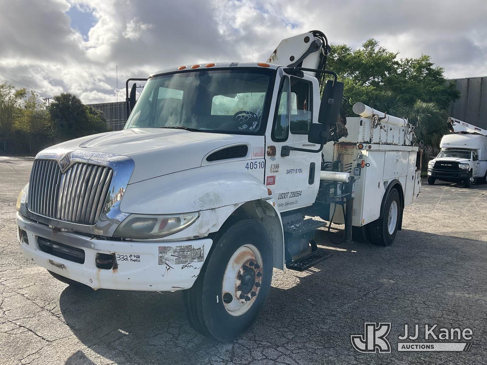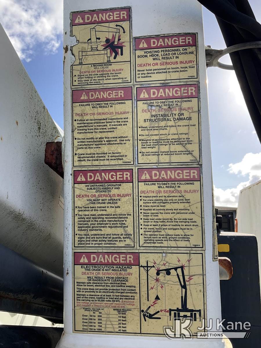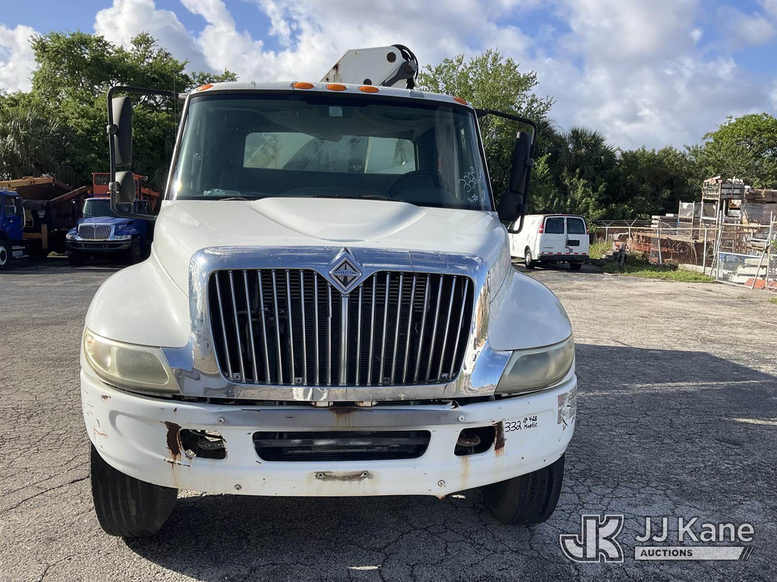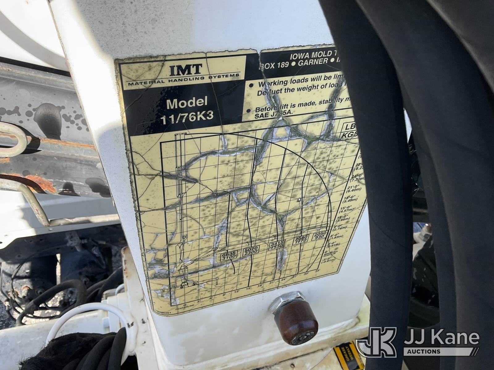 IMT 11/76-K3, 6,835 Lb Knuckleboom Crane s/n 761036, with 30 ft. reach, dual controls & 2 hyd outriggers, mounted behind cab on 2006 International 4300 URD/Flatbed Truck, 7.6L L6 Diesel, 6-spd, A/C, (Exempt from Odometer Disclosure - Reads 134,530 miles) (Runs & Moves With Jump, Blown Hydraulic Hoses, Boom Operating Condition Unknown, ABS Light On, Body Damage & Rust, Interior & Engine Grill Damaged) (FL Residents Purchasing Titled Items – tax, title & registration fees will be collected at the maximum rate of $400.00 under 25,999 and $800.00 for Over 26,000 and $250.00 for Trailers – Proof of insurance is mandatory; Out of State Residents Purchasing Title Items – tax will be collected based upon your state rate) (Reads 7,833 hours) This is a Titled Item NOTE: This unit is being sold AS IS/WHERE IS via Timed Auction and is located in West Palm Beach, FL. Inspection & preview days for this unit are the 2 business days prior to the first day of items closing for this auction, item is located at 2570 Old Okeechobee Rd West Palm Beach, FL 33409 and hours of operations are 8a-4p. For pre-sale questions, please contact Andy Garcia @ (561) 215-0085. (Missing manuals, See Auction Company for Manufacturers Information to obtain manuals) (Buyer is responsible for removal. Assistance by consignor or JJ Kane Auctions is not assured.)
