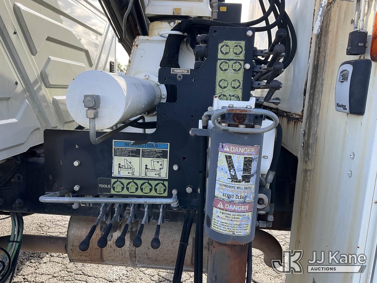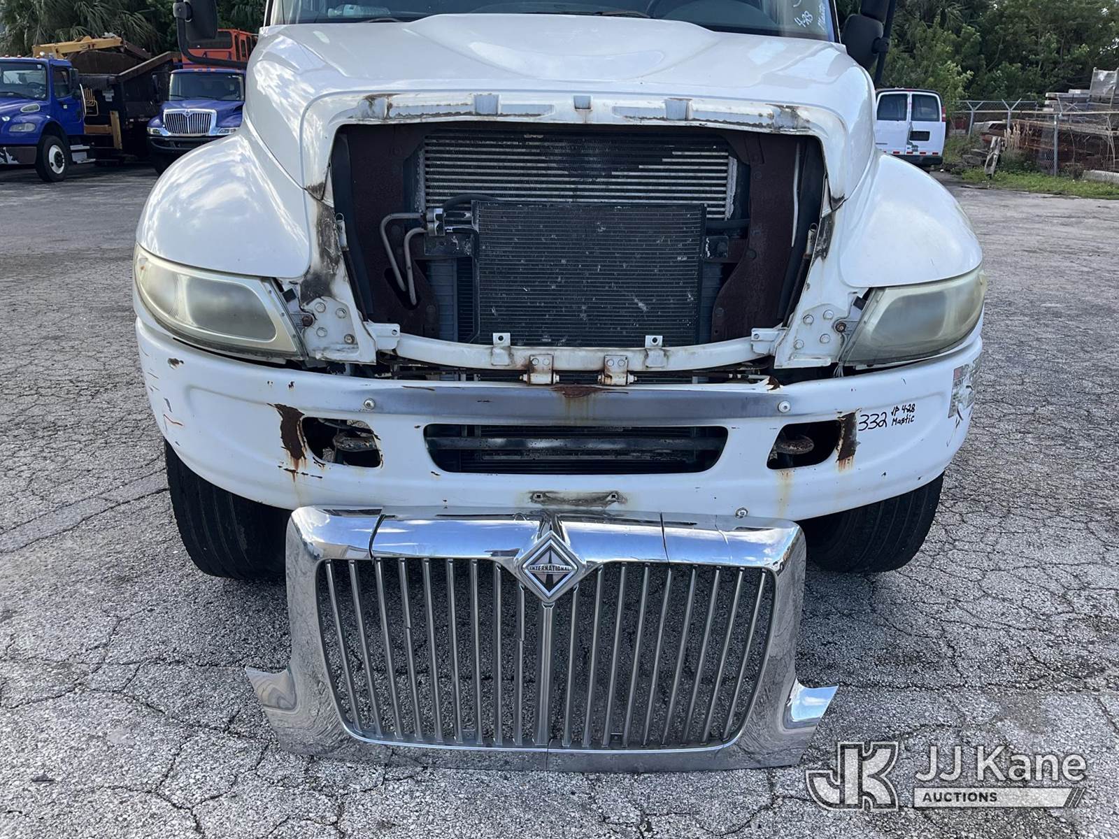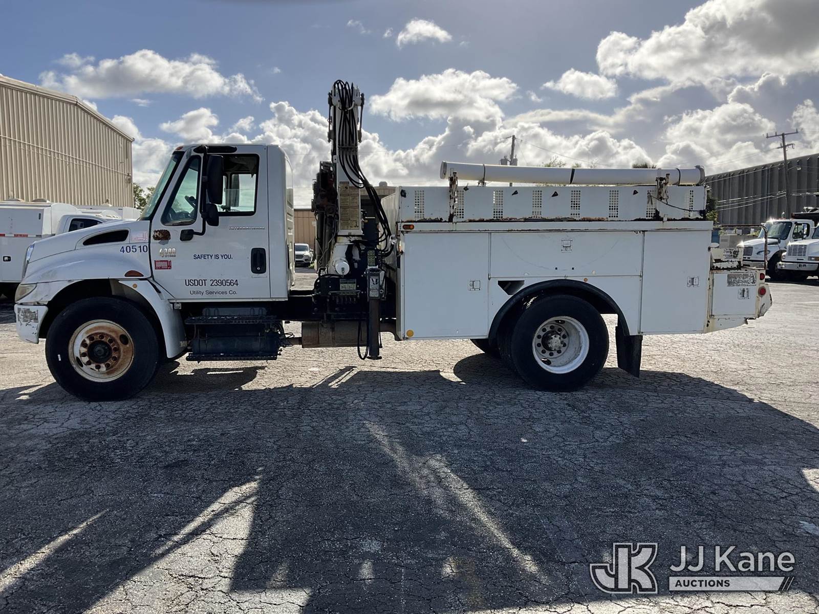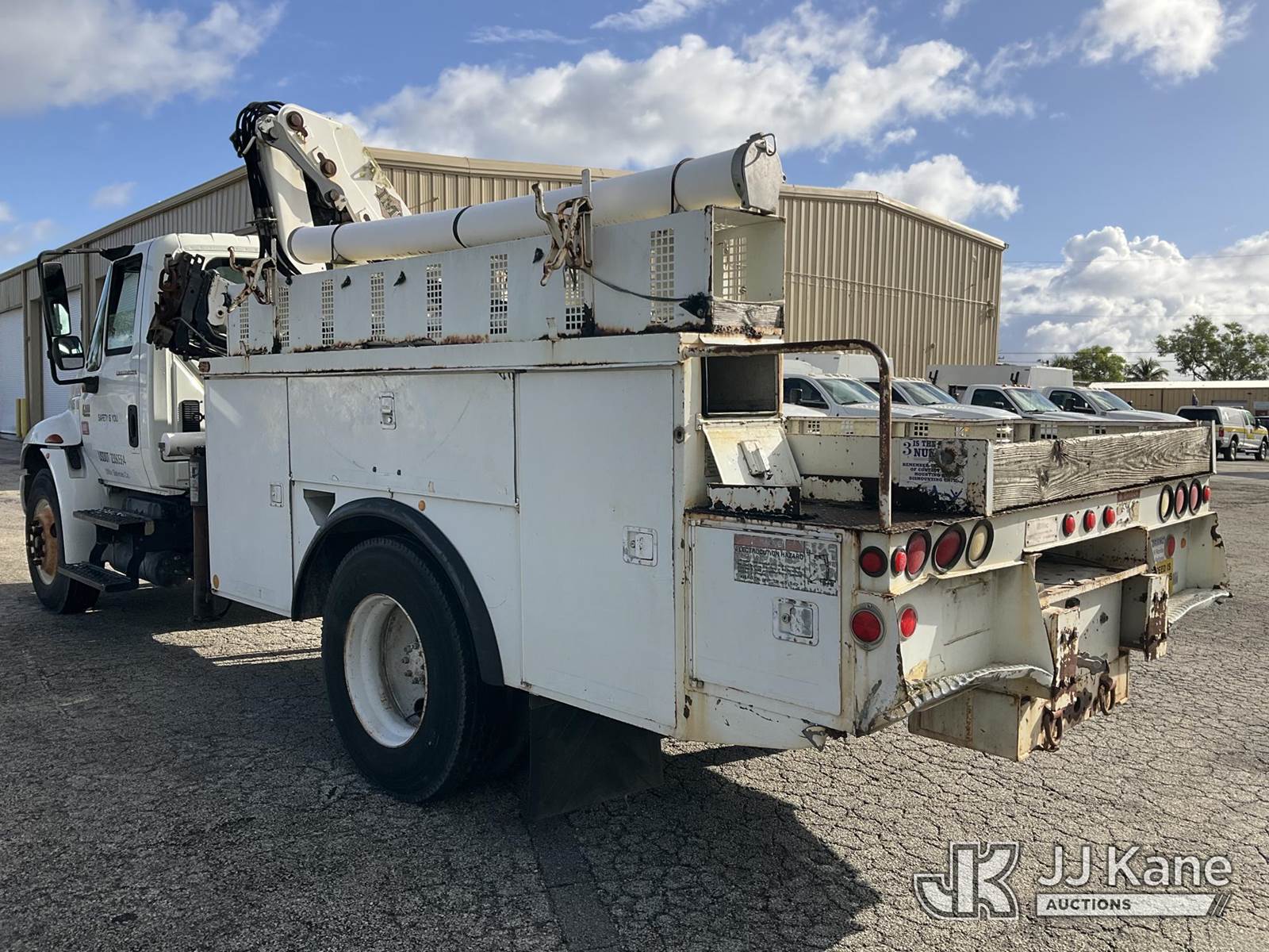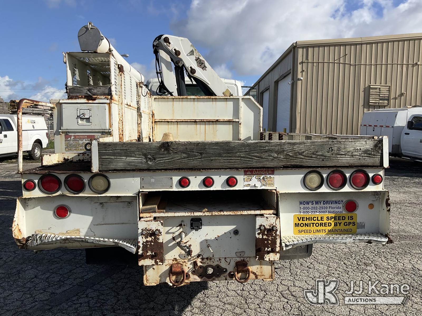 IMT 11/76-K3, 6,835 Lb Knuckleboom Crane s/n 761036, with 30 ft. reach, dual controls & 2 hyd outriggers, mounted behind cab on 2006 International 4300 URD/Flatbed Truck, 7.6L L6 Diesel, 6-spd, A/C, (Exempt from Odometer Disclosure - Reads 134,530 miles) (Runs & Moves With Jump, Blown Hydraulic Hoses, Boom Operating Condition Unknown, ABS Light On, Body Damage & Rust, Interior & Engine Grill Damaged) (FL Residents Purchasing Titled Items – tax, title & registration fees will be collected at the maximum rate of $400.00 under 25,999 and $800.00 for Over 26,000 and $250.00 for Trailers – Proof of insurance is mandatory; Out of State Residents Purchasing Title Items – tax will be collected based upon your state rate) (Reads 7,833 hours) This is a Titled Item NOTE: This unit is being sold AS IS/WHERE IS via Timed Auction and is located in West Palm Beach, FL. Inspection & preview days for this unit are the 2 business days prior to the first day of items closing for this auction, item is located at 2570 Old Okeechobee Rd West Palm Beach, FL 33409 and hours of operations are 8a-4p. For pre-sale questions, please contact Andy Garcia @ (561) 215-0085. (Missing manuals, See Auction Company for Manufacturers Information to obtain manuals) (Buyer is responsible for removal. Assistance by consignor or JJ Kane Auctions is not assured.)