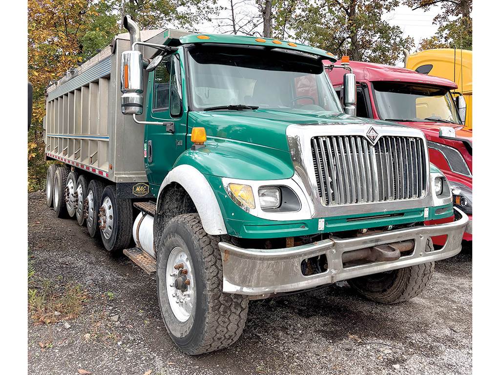 2006 INTERNATIONAL 7600 6 Axle Conventional Dump Truck, Caterpillar C13 ACERT Engine, 470 H.P., Engine Brake, 8 Speed Transmission, (Manual), 4 Steerable Air Lift Pusher Axles, Air Ride Suspension, Dual Hydraulic Power Steering, Air Conditioned, Chrome Bumper, Dual Aluminum Fuel Tanks, Single Stack, Exterior Visor, Tilt And Telescoping Steering Wheel, Cruise Control, Power Windows, Double Frame, Hydraulic Wetline Kit, 24 Ft. Aluminum Dump Body, Roll Tarp, 290 Inch Wheel Base, 425/65R22.5 Tires Front, 3 Pusher Axles 22.5 Low Profile Tires, 11R24.5 Tires Rear, Aluminum Disc Wheels.