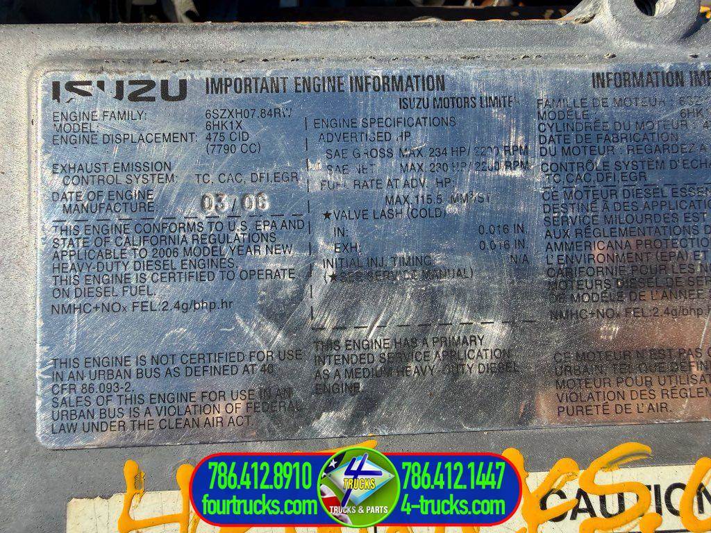 USED 2006 ISUZU 6HK1X ENGINE, EGR VALVE, 234HP, STOCK:0227261, ESN:6HK14289, COMPLETE, INSPECTED AND TESTED RUNNING GOOD ENGINE, ALSO MANY ENGINES IN STOCK