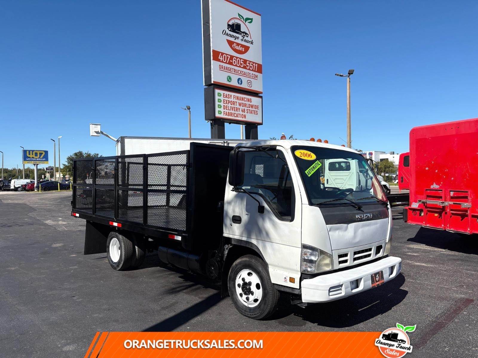 14FT FLATBED DUMP * 2006 ISUZU NPR * ENGINE 4HK1TC * DIESEL * AUTOMATIC TRANSMISSION * GVW 12,000 * SPRING SUSPENSION * MILEAGE 205,658 * COLOR WHITE *