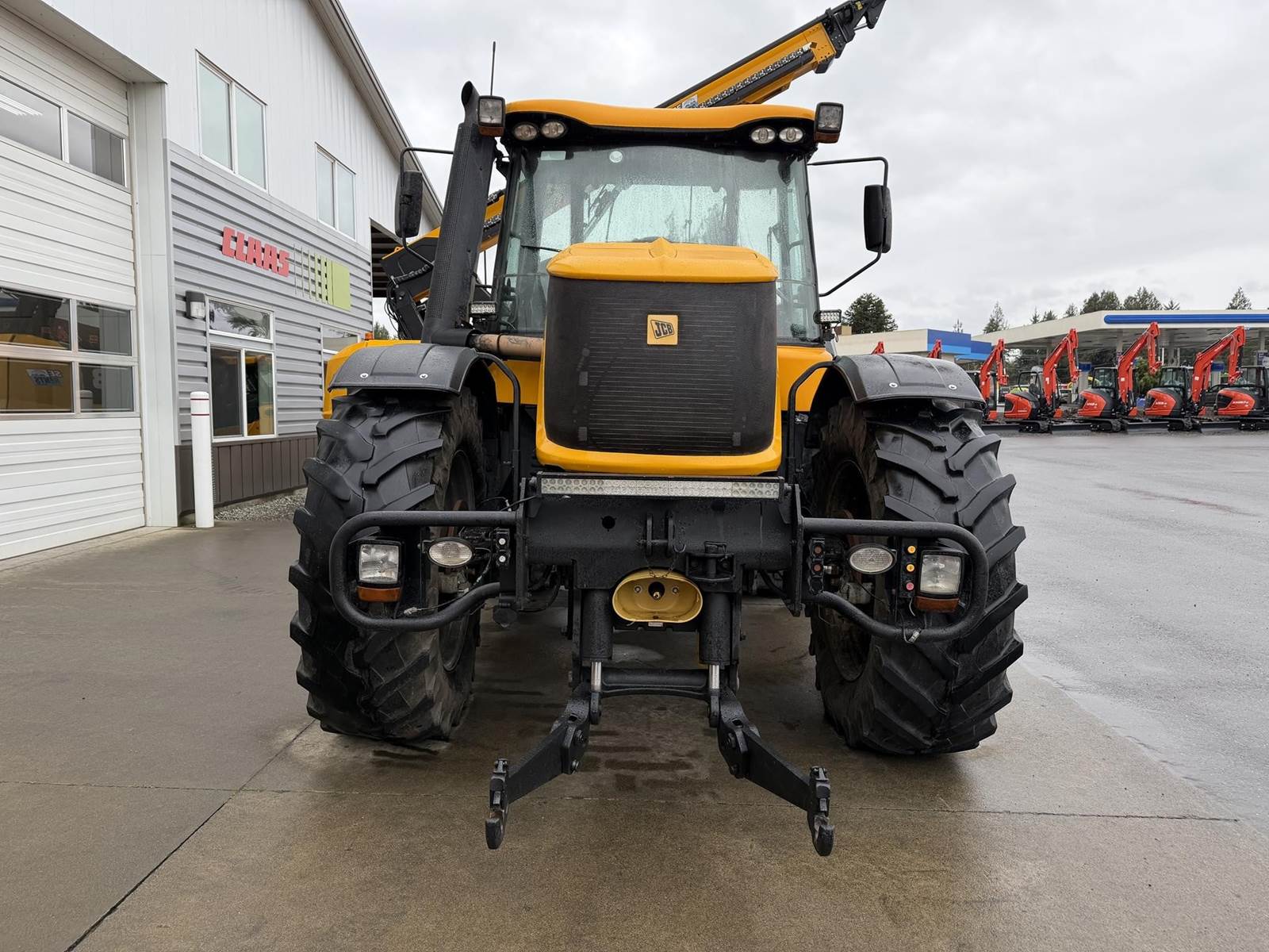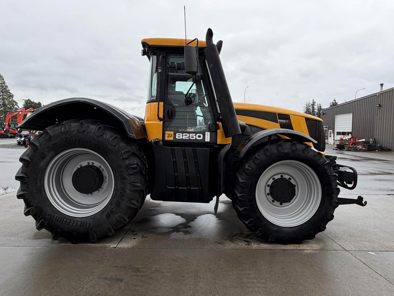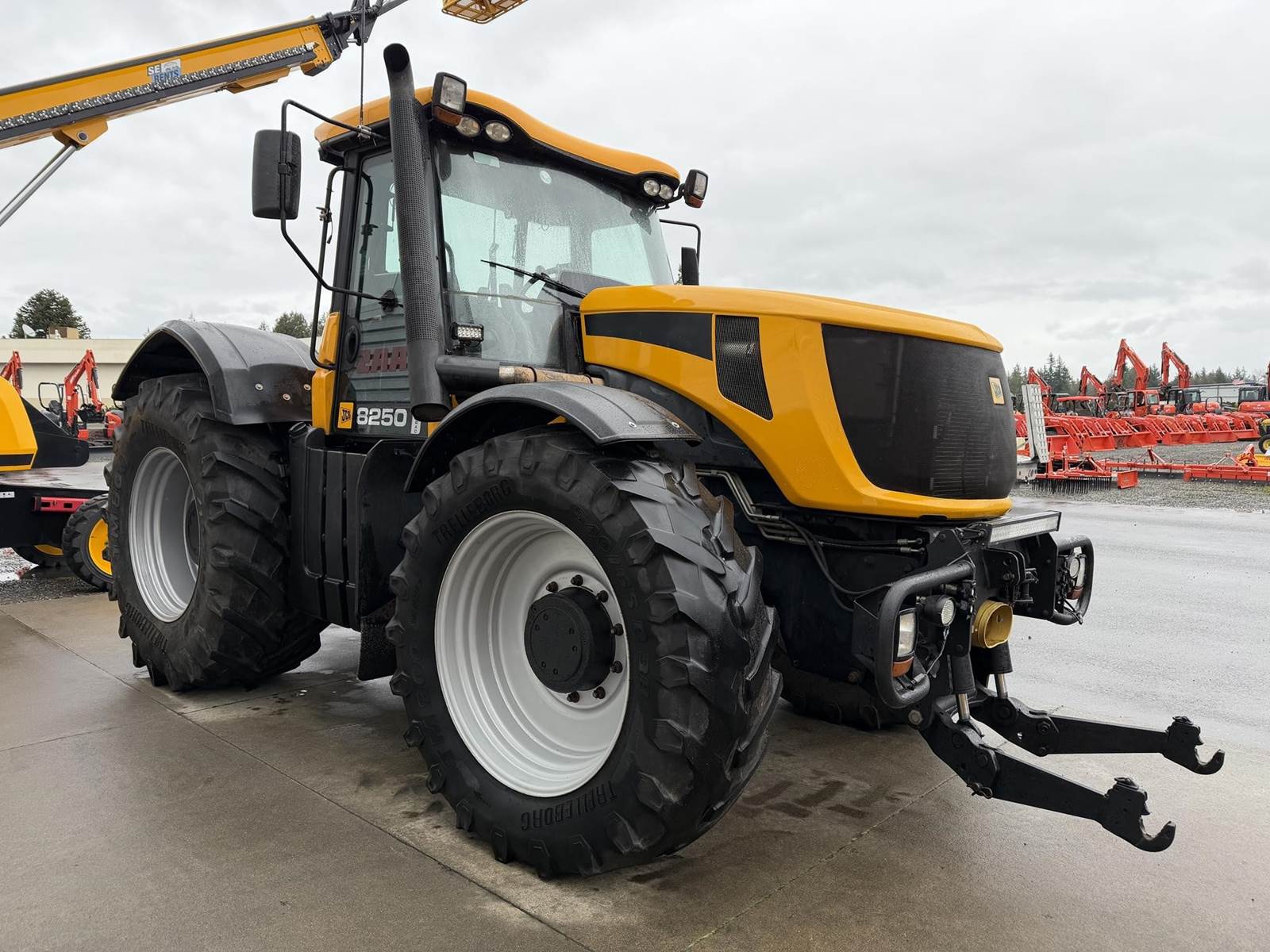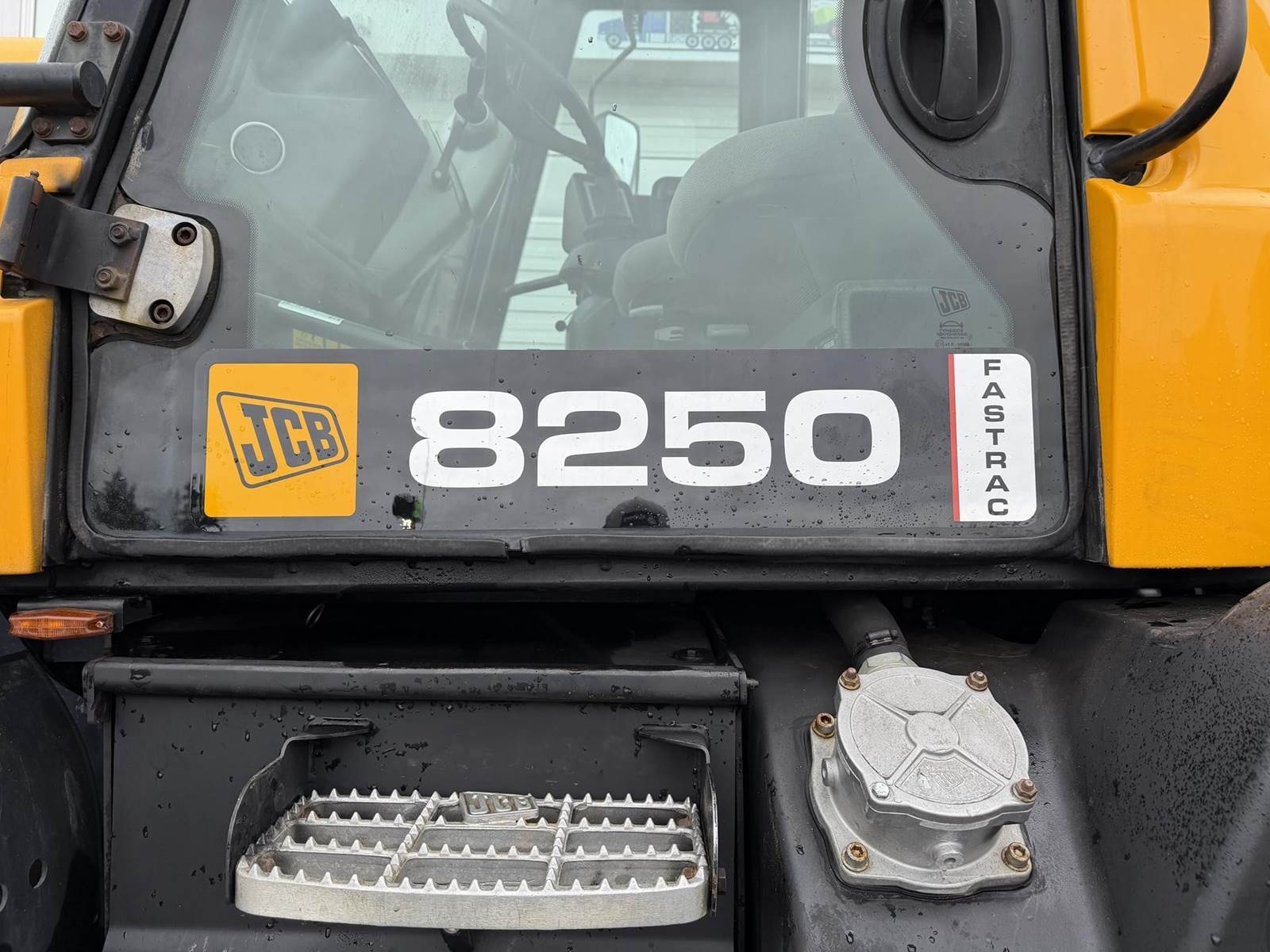 2006 JCB FASTRAC 8250 Four Wheel Drive Tractor - Cummins QSC 8.3L intercooled turbocharged diesel engine, CVT transmission, front and rear 3Pt. front and rear PTO, two front remotes, four rear remotes. Full front and rear suspension, big cab with buddy seat. This is perfect tor triple mowers plus this machine will do 43 MPH on the road.