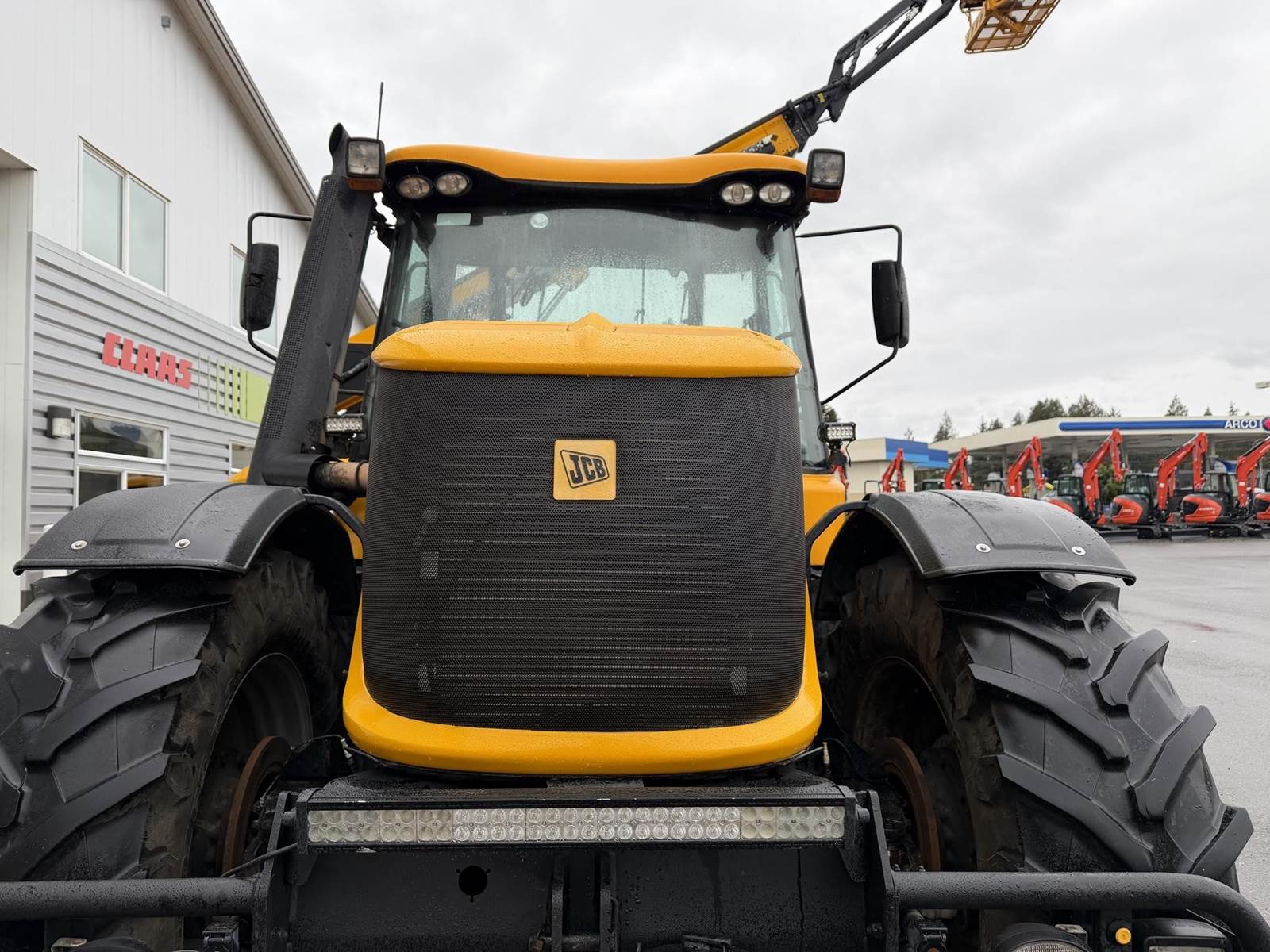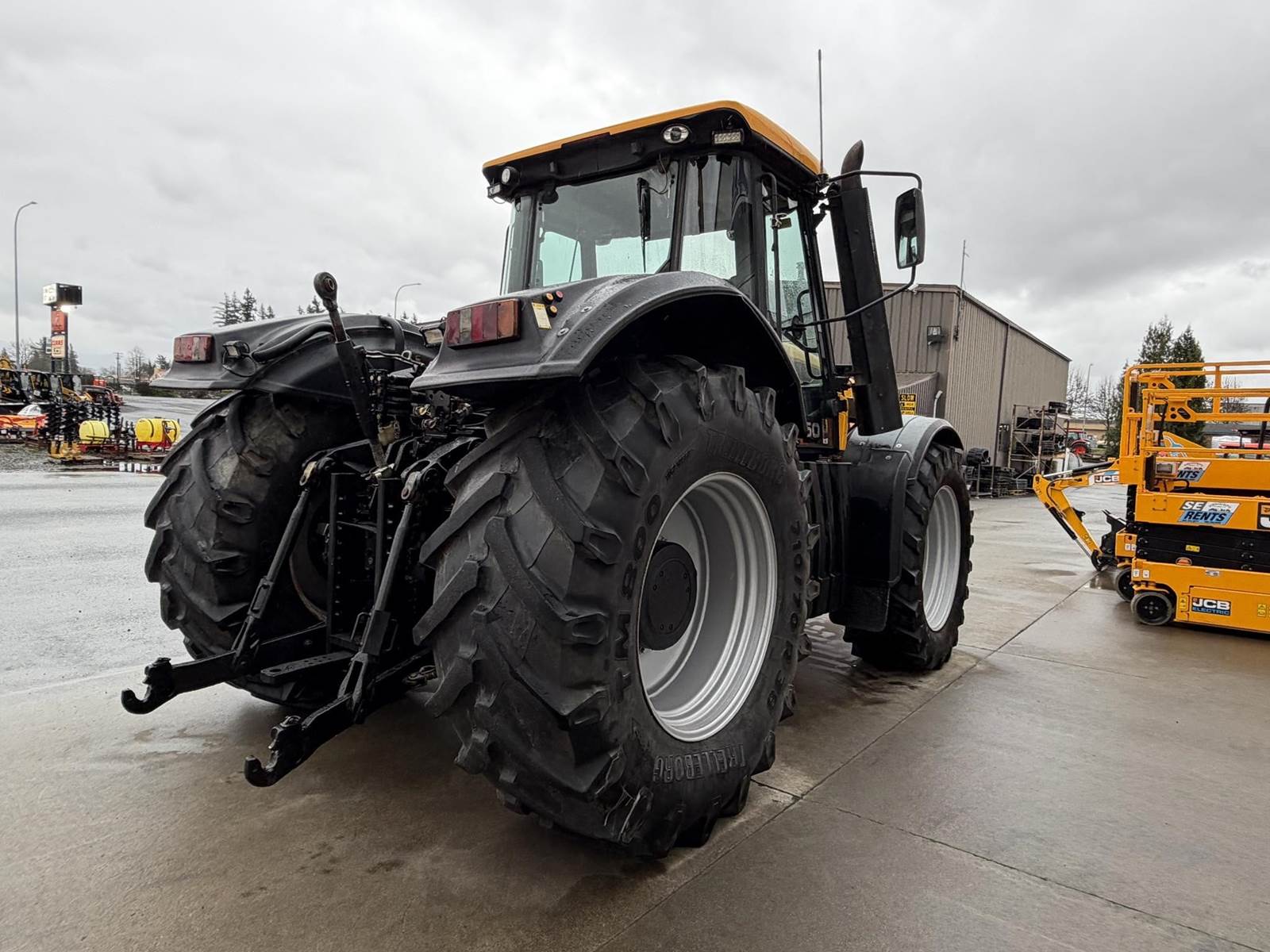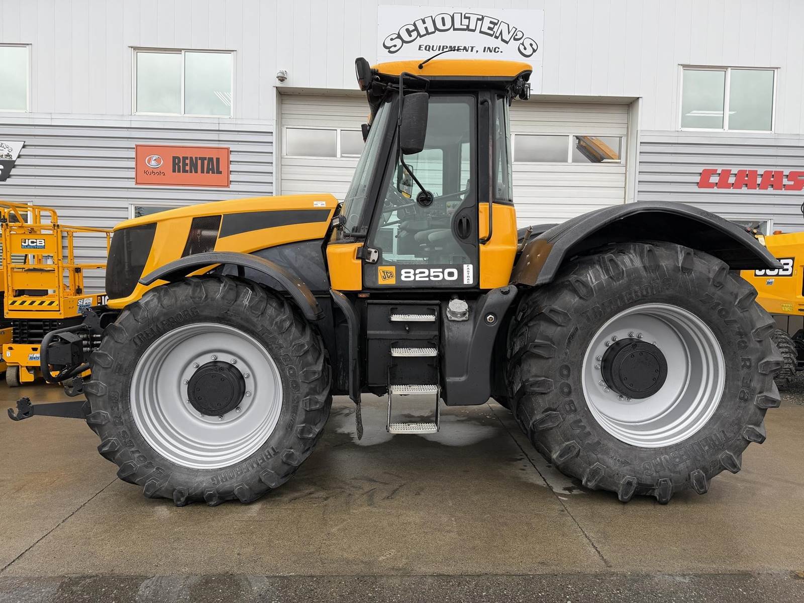 2006 JCB FASTRAC 8250 Four Wheel Drive Tractor - Cummins QSC 8.3L intercooled turbocharged diesel engine, CVT transmission, front and rear 3Pt. front and rear PTO, two front remotes, four rear remotes. Full front and rear suspension, big cab with buddy seat. This is perfect tor triple mowers plus this machine will do 43 MPH on the road.