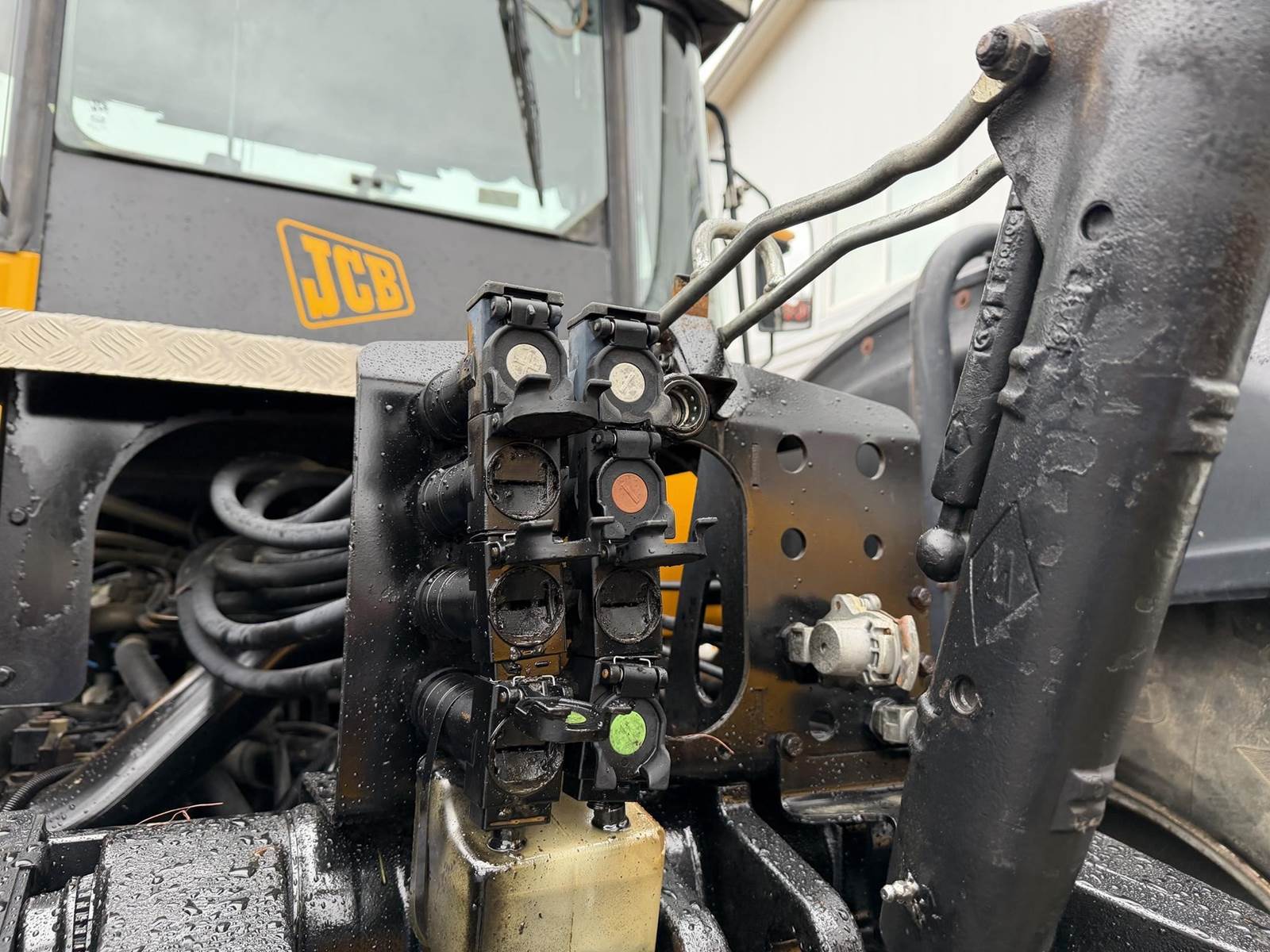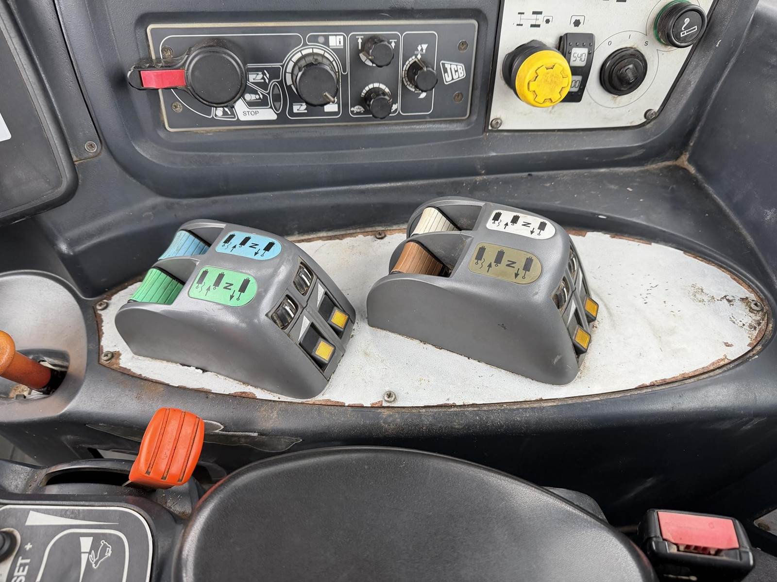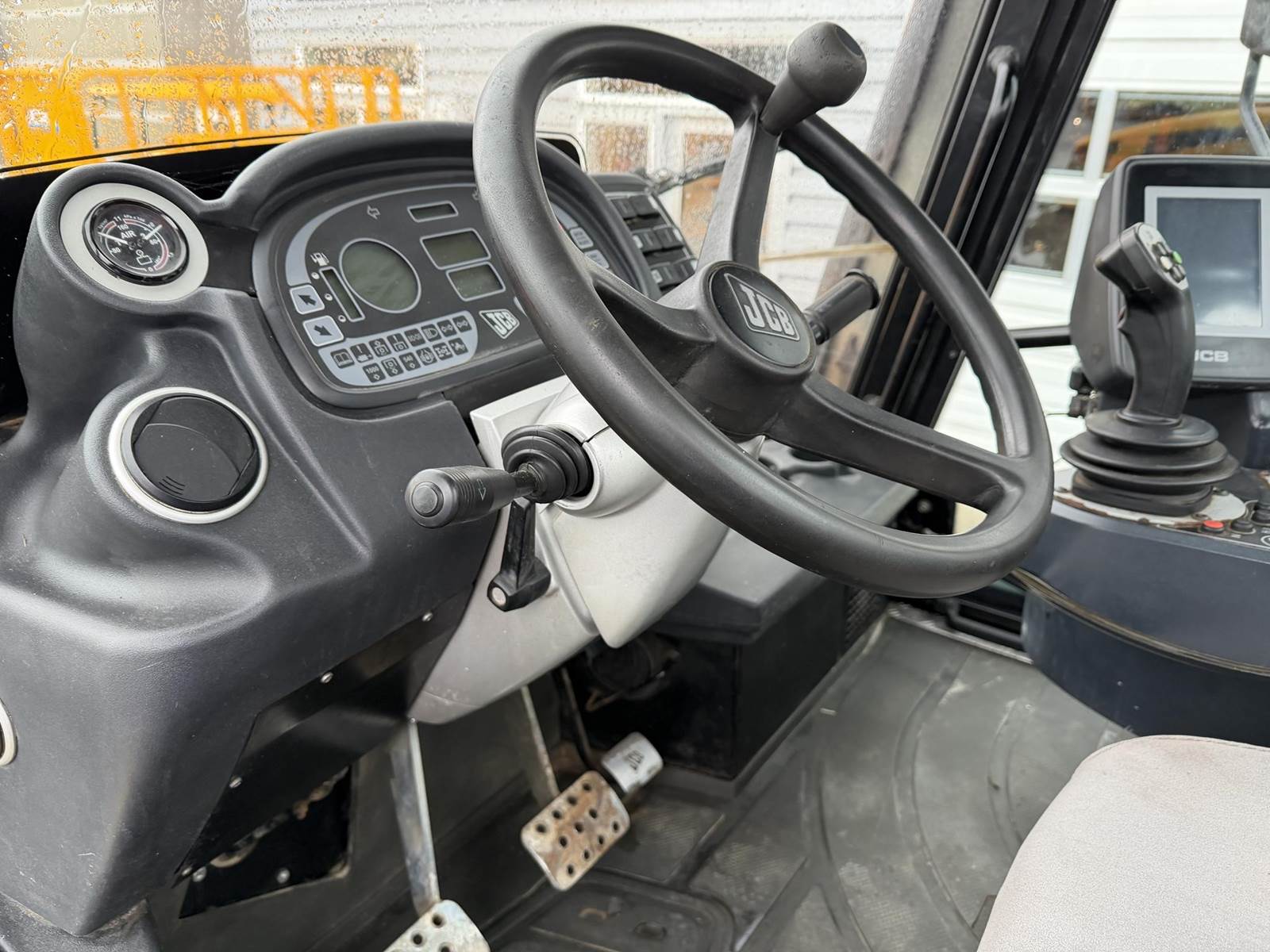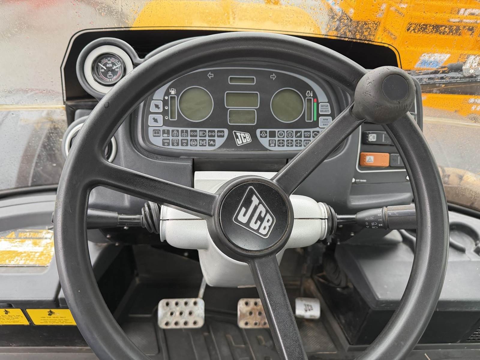2006 JCB FASTRAC 8250 Four Wheel Drive Tractor - Cummins QSC 8.3L intercooled turbocharged diesel engine, CVT transmission, front and rear 3Pt. front and rear PTO, two front remotes, four rear remotes. Full front and rear suspension, big cab with buddy seat. This is perfect tor triple mowers plus this machine will do 43 MPH on the road.