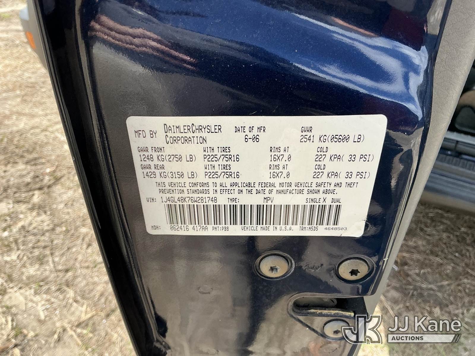 2006 Jeep Liberty Sport Utility Vehicle, 6-cyl gas, 4wd, Auto, A/C, (Exempt from Odometer Disclosure - Reads 208,217 miles) (Runs & Moves) (Check Engine Light On) (FL Residents Purchasing Titled Items – tax, title & registration fees will be collected at the maximum rate of $400.00 under 25,999 and $800.00 for Over 26,000 and $250.00 trailers – Proof of insurance is mandatory; Out of State Residents Purchasing Title Items – tax will be collected based upon your state rate.) This is a Titled Item NOTE: This unit is being sold AS IS/WHERE IS via Timed Auction and is located in Thonotosassa, FL. Inspection & preview days for this unit are the 2 business days prior to the first day of items closing for this auction, item is located at 11720 N US 301 Thonotosassa, Fl 33592 and hours of operations are 8a-4p. For pre-sale questions, please contact Office Staff @ (813) 986-2485. (Buyer is responsible for removal. Assistance by consignor or JJ Kane Auctions is not assured.)