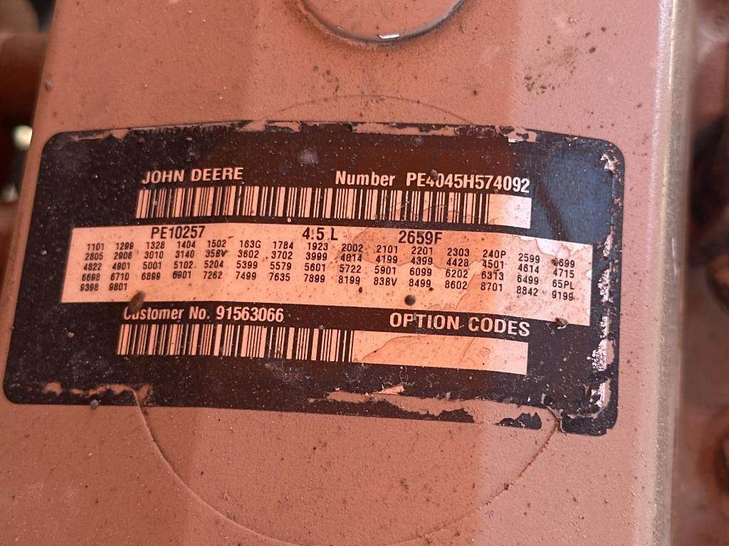 Location: ISA Yard: Merrill, WI John Deere Powertech 4.5L Turbo Diesel Engine, 4 Speed Transmission, 4x4, 10000LB Max Capacity, Extendable Boom, 55' Max Height, Approx 72" Forks, 4 Wheel Steer, Outriggers, Hydraulic Tilting Forks, OROPS, Frame Tilt, 14.00-24 Tires Serial: 0160021161 Hours Shown: 5938