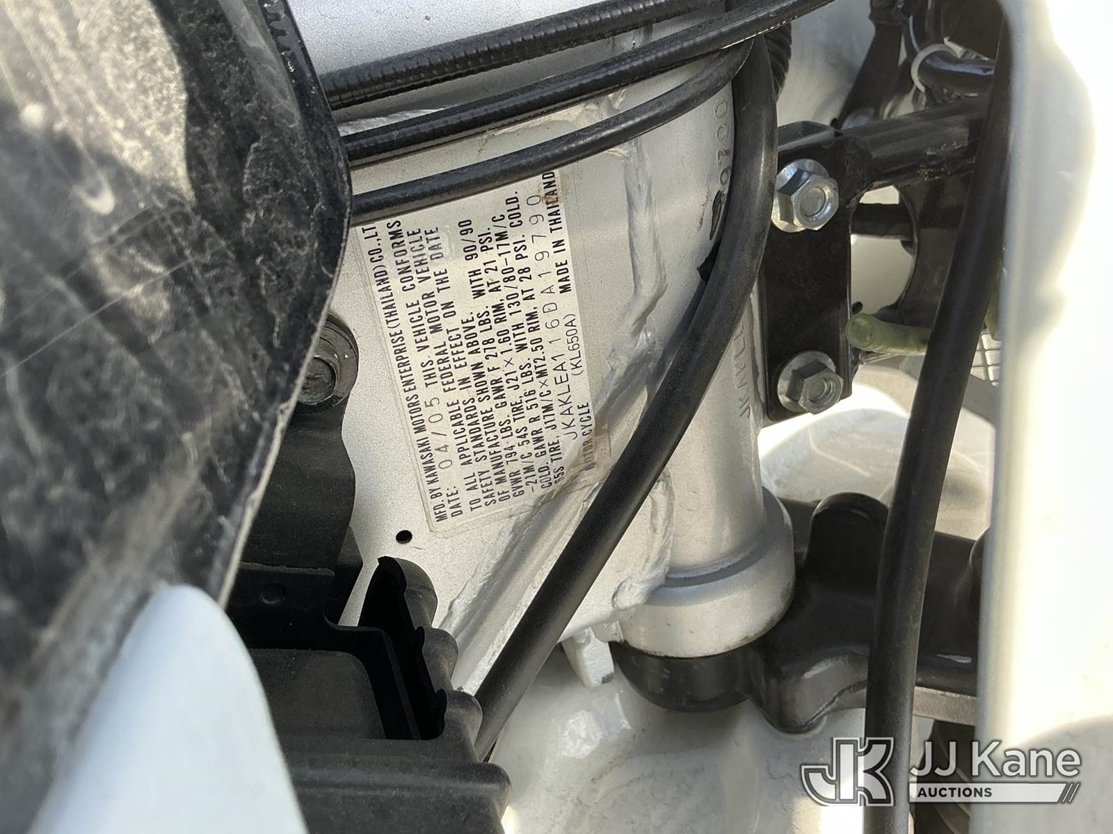 2006 Kawasaki KLR650 Motorcycle, 651CC GAS (Exempt from Odometer Disclosure - Reads 2,850 miles) (Runs & Moves) (Needs Jump) This is a Titled Item NOTE: This unit is being sold AS IS/WHERE IS via Timed Auction and is located in Dixon, CA. Inspection & preview days for this unit are the 2 business days prior to the first day of items closing for this auction, item is located at 8668 Sparling Ln Dixon, CA 95620 and hours of operations are 8a-4p. For pre-sale questions, please contact JJ Kane Staff at (707) 678-8060 (dixon@jjkane.com). Dealer License Number 45696. (Buyer is responsible for removal. Assistance by consignor or JJ Kane Auctions is not assured.)