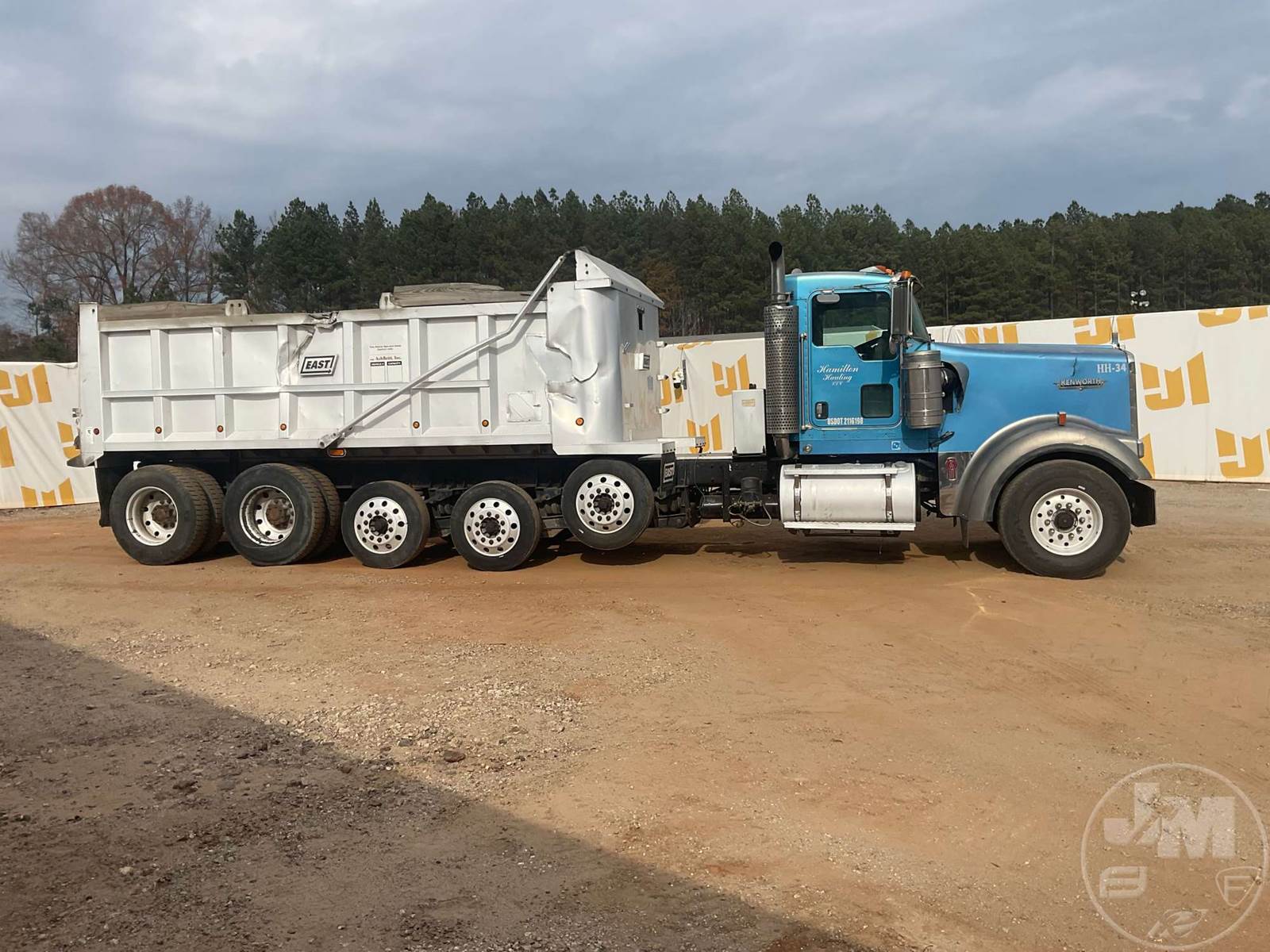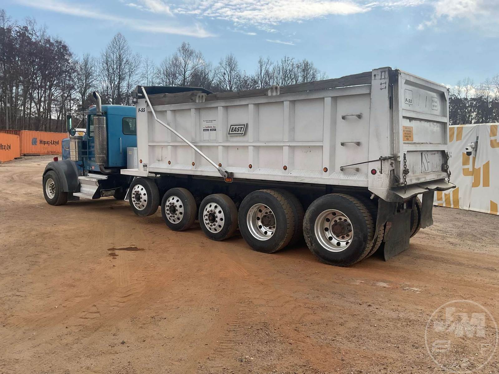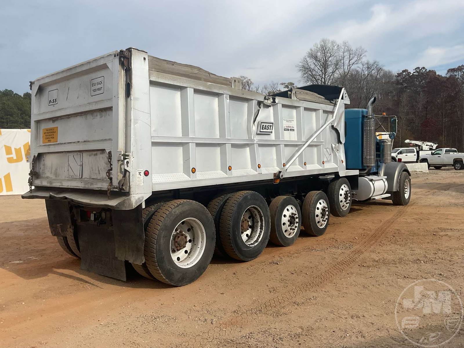 QUINT AXLE DUMP TRUCK, CATERPILLAR, C-15, EATON FULLER, 18 SPEED, AIR BRAKES, AIR RIDE SUSPENSION, LIFT AXLE, 272" " WB, 18K FRONTS, DOUBLE FRAME, ENGINE BRAKE, DIFF LOCK, CRUISE CONTROL, A/C, POWER DOOR LOCKS, EAST, 22', ALUM, DUMP BODY, SPREADER APRON, TARP, AIR GATE, MANUAL GATE, 80000 GVWR, ALL ALUMINUM WHEELS, 385/65R22.5 STEER TIRES, 11R24.5 TIRES, 57K REARS, STEERABLE LIFT AXLE, ***OIL LEAK***, ODOMETER READS: 811619