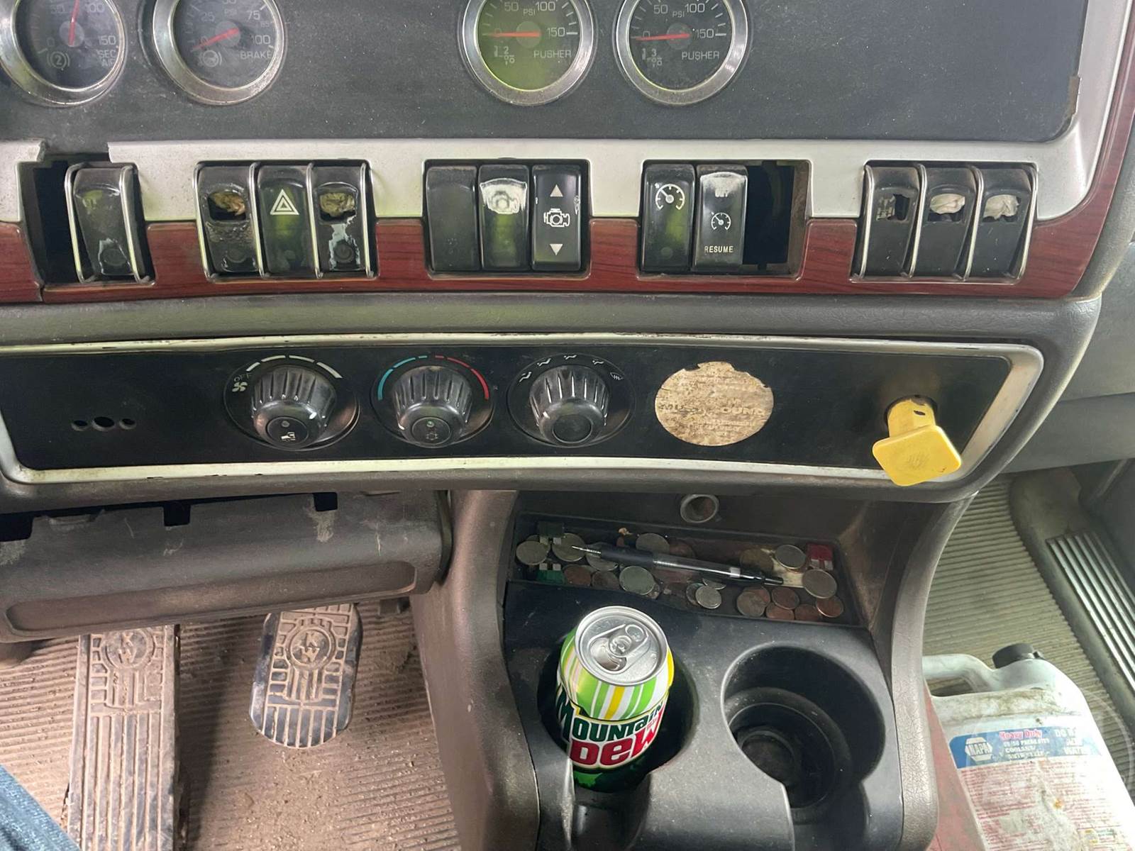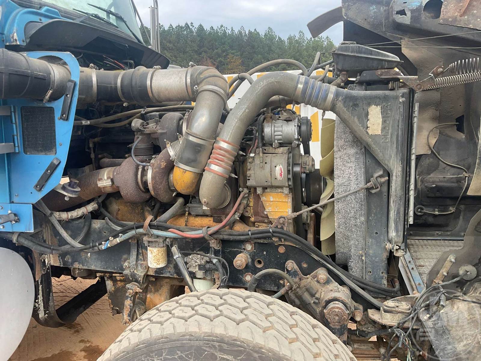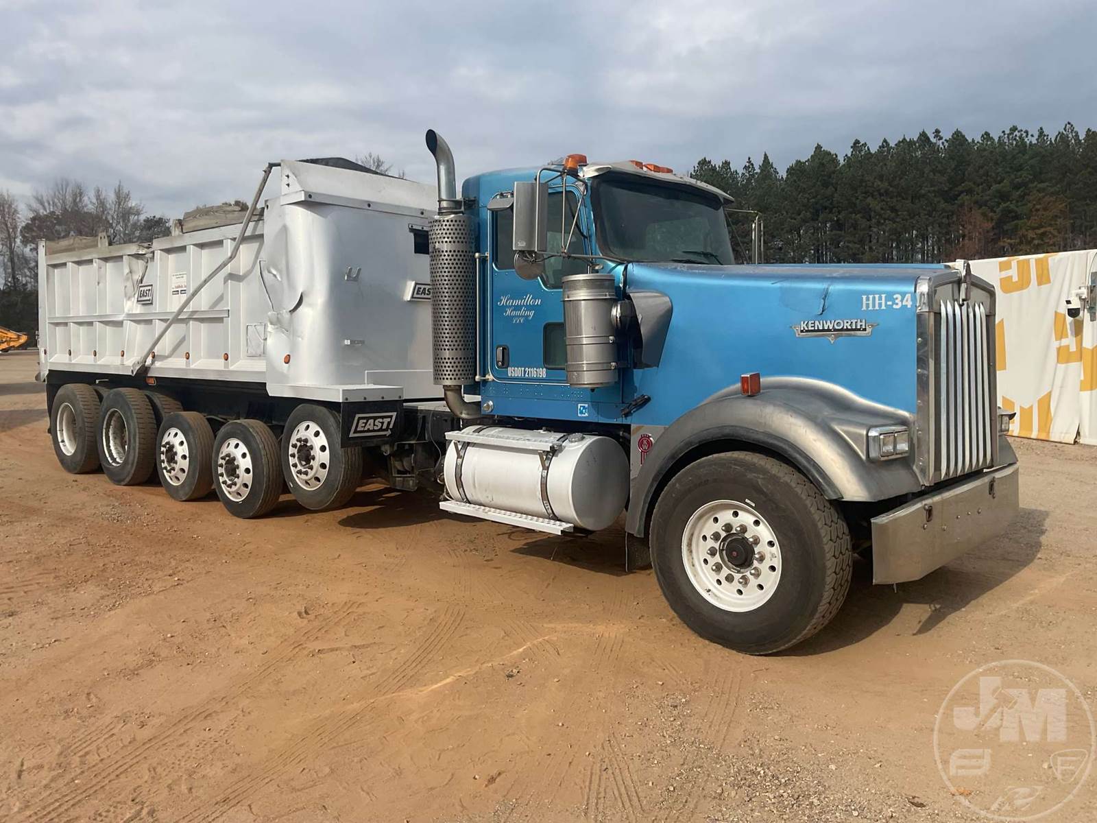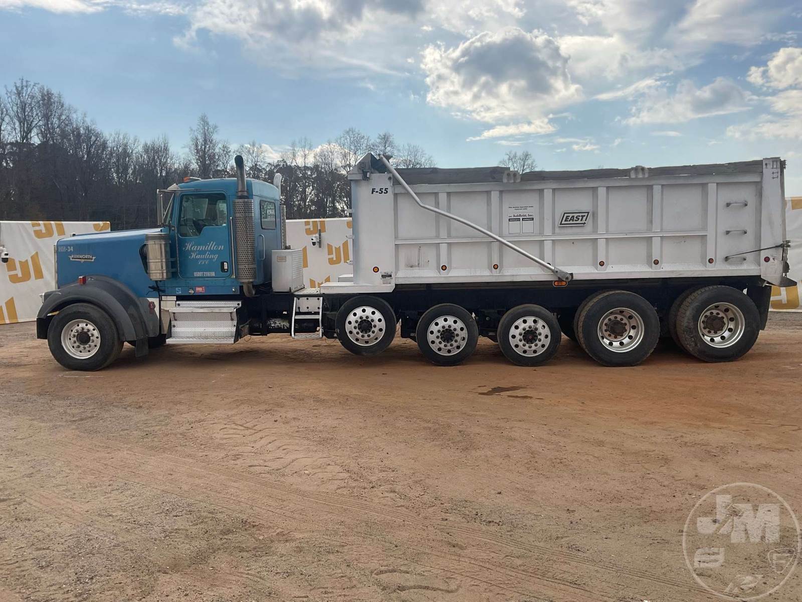 QUINT AXLE DUMP TRUCK, CATERPILLAR, C-15, EATON FULLER, 18 SPEED, AIR BRAKES, AIR RIDE SUSPENSION, LIFT AXLE, 272" " WB, 18K FRONTS, DOUBLE FRAME, ENGINE BRAKE, DIFF LOCK, CRUISE CONTROL, A/C, POWER DOOR LOCKS, EAST, 22', ALUM, DUMP BODY, SPREADER APRON, TARP, AIR GATE, MANUAL GATE, 80000 GVWR, ALL ALUMINUM WHEELS, 385/65R22.5 STEER TIRES, 11R24.5 TIRES, 57K REARS, STEERABLE LIFT AXLE, ***OIL LEAK***, ODOMETER READS: 811619