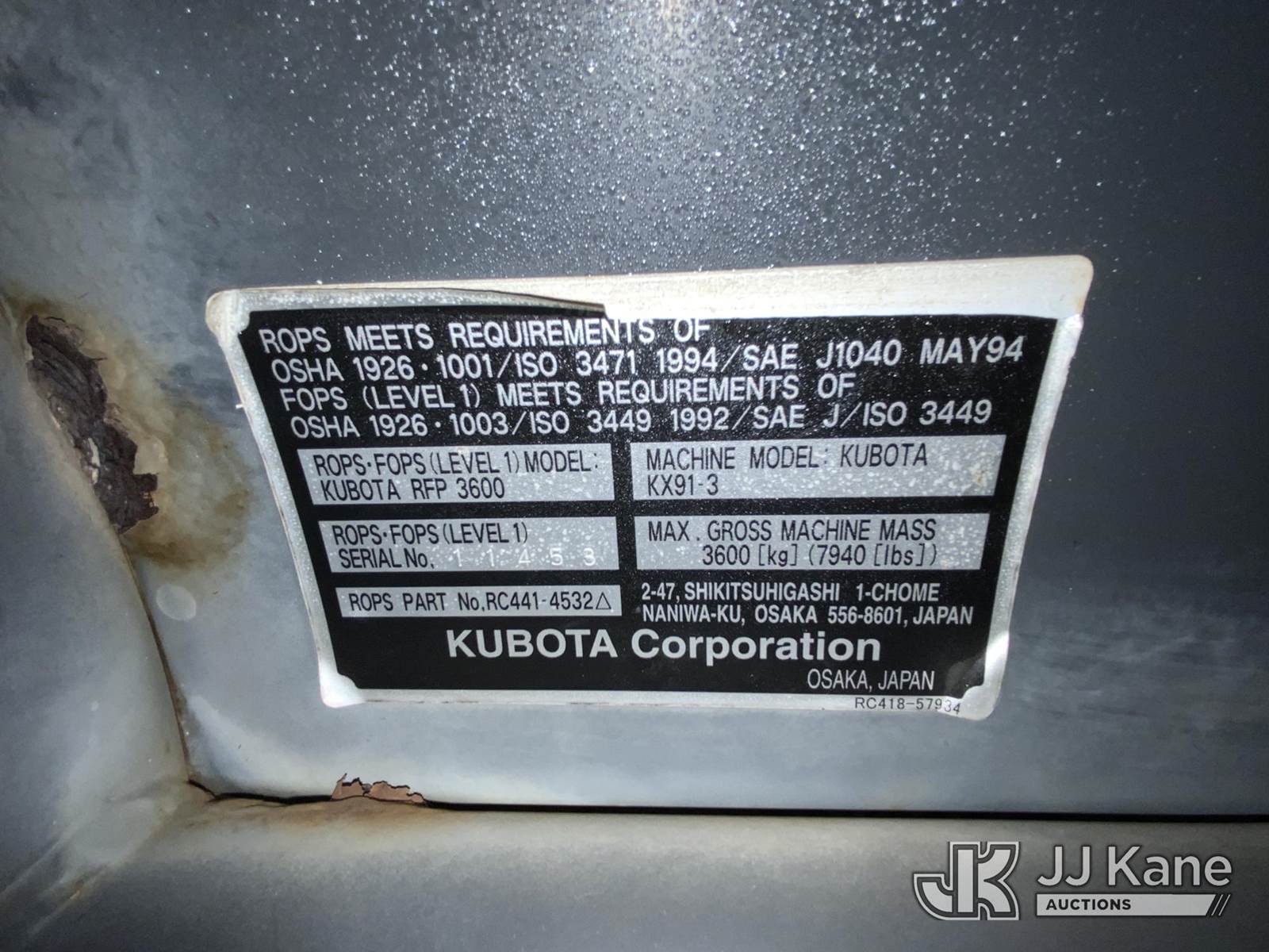 2006 Kubota KX91-3SS Mini Hydraulic Excavator, s/n 30871, Hydraulic Drive, diesel, with backfill blade, rubber tracks, ROPS, (Runs, Moves & Operates) (Jump To Start, Hours Unknown - Will Not Show On Display) (Seller States: Machine Is Weak) NOTE: This unit is being sold AS IS/WHERE IS via Timed Auction and is located in Robert, LA. Inspection & preview days for this unit are by appointment only; please contact us at contact@jjkane.com or 84-Go-JJKane for more details. License # LA AB-154 (Buyer is responsible for removal. Assistance by consignor or JJ Kane Auctions is not assured.)