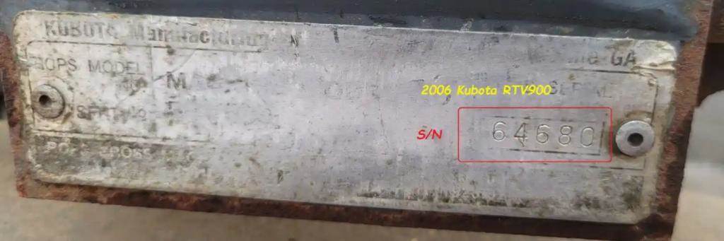 2006 Kubota RTV900 Type#: RTV900 S/N: 68420 CARB Program ATV. Hole cut in the