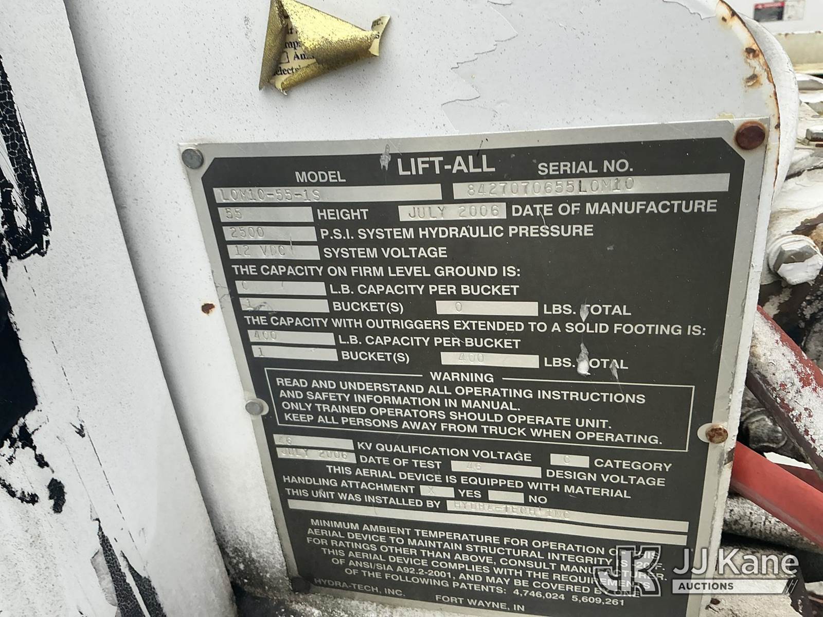 Lift-All LOM1055-1S, 60 ft, Material Handling Bucket Truck s/n 8427070655L0M10, with single man bucket & 4 hydraulic outriggers, rear mounted on 2006 GMC C7500 Utility Truck, 7.2L L6 diesel, Auto, A/C, with front winch, True Mileage Unknown (Not Running, Condition Unknown, Upper Condition Unknown) This is a Titled Item NOTE: This unit is being sold AS IS/WHERE IS via Timed Auction and is located in Washington, NC. Inspection & preview days for this unit are by appointment only; please contact us at contact@jjkane.com or 84-Go-JJKane for more details. (Missing manuals, See Auction Company for Manufacturers Information to obtain manuals) (Buyer is responsible for removal. Assistance by consignor or JJ Kane Auctions is not assured.)