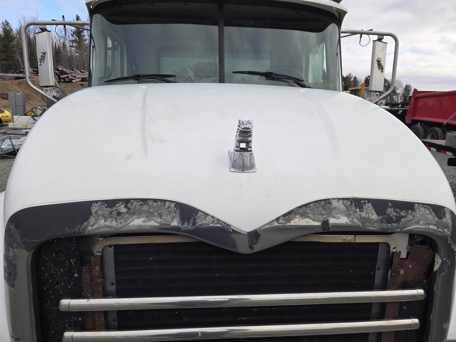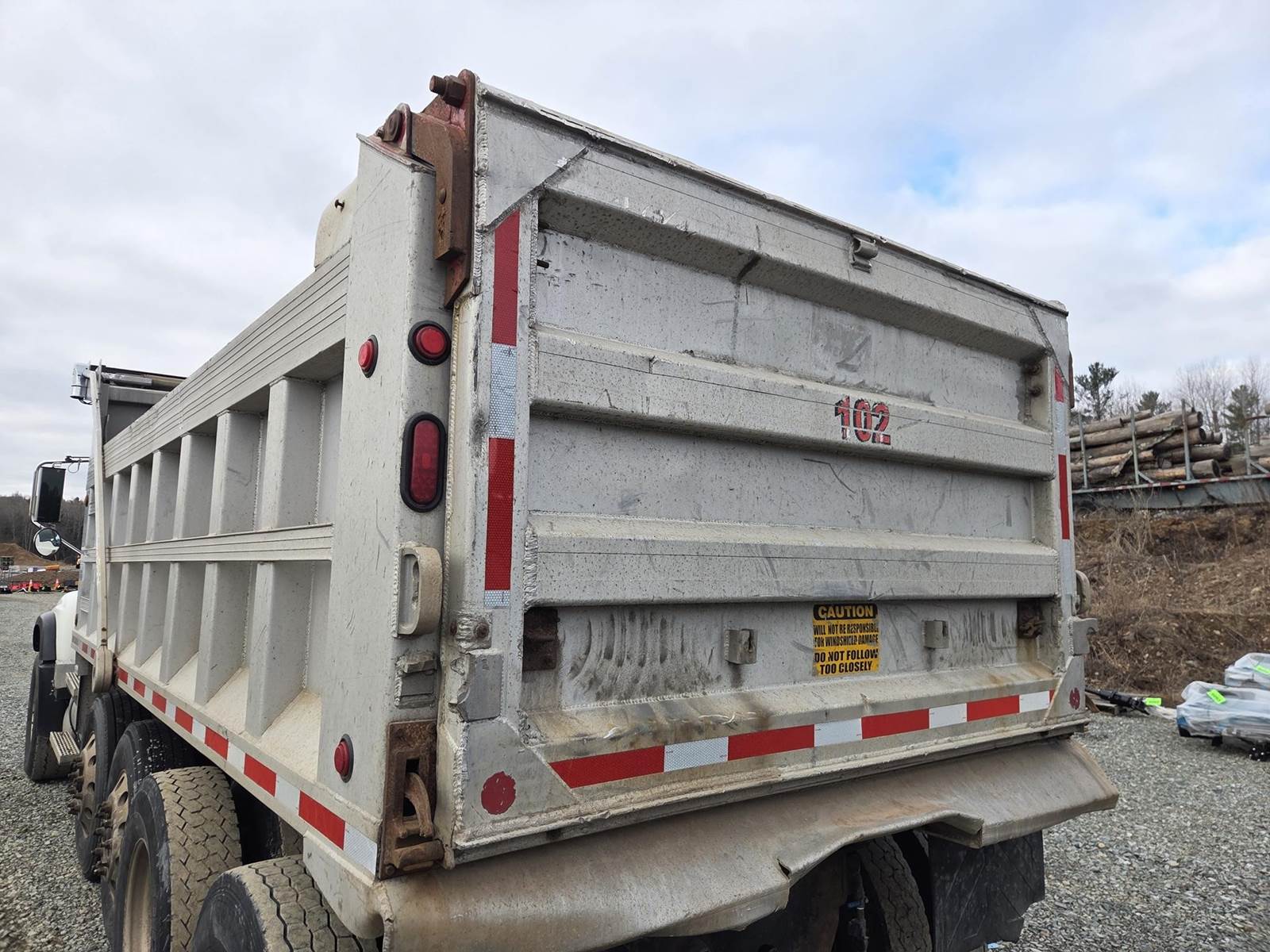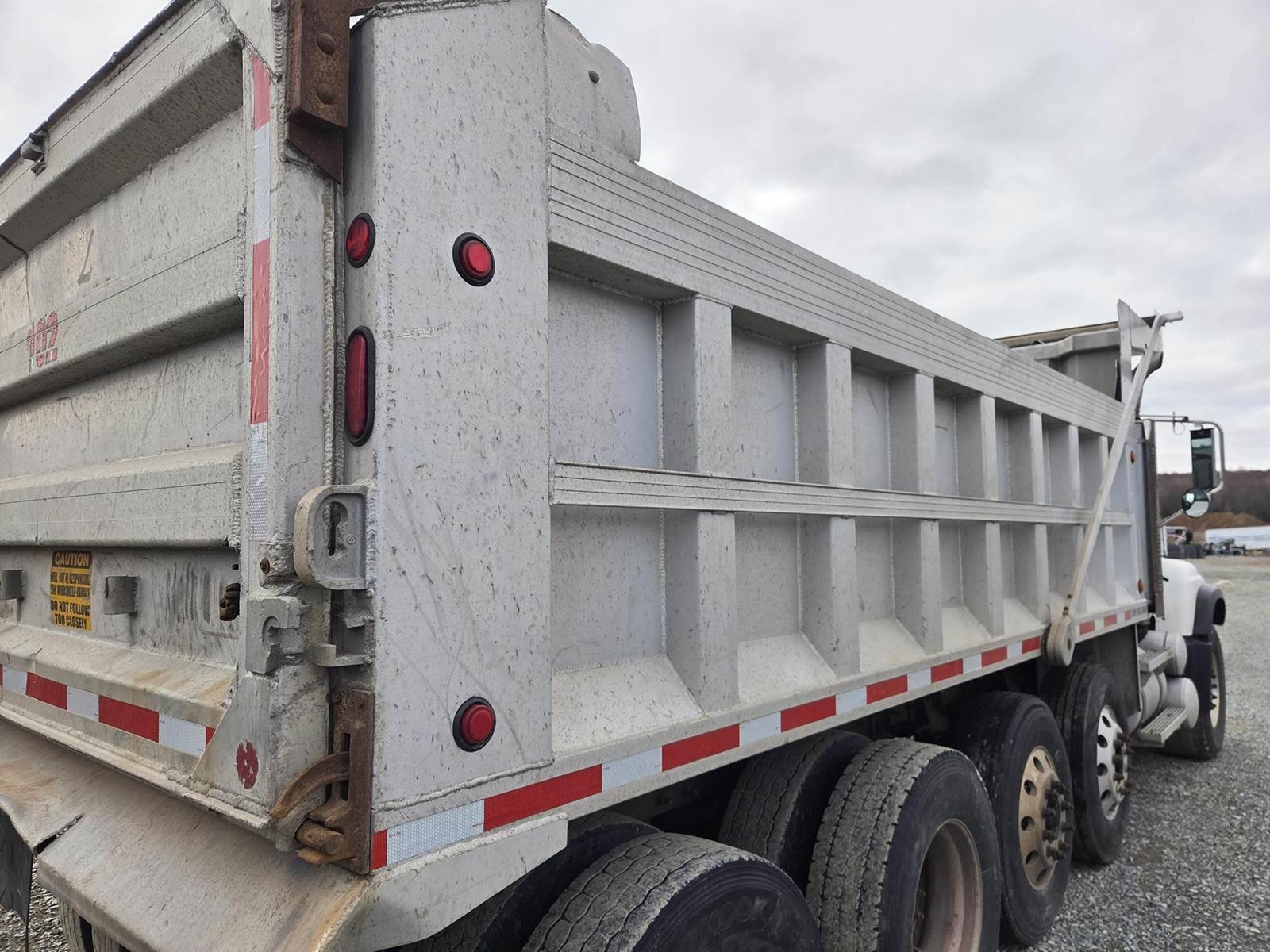 6 Cylinder Mack Turbo Diesel Engine, Maxitorque 10 Speed, Multi-Speed Reverse Manual Transmission, Camelback Suspension, Engine Brake, Inter Axle Lock, PTO, Approx 18' Dump Box, Air Trip Tailgate, Tarper, Steerable Air Lift Pusher Axles, Pintle Hitch W/ Air to the Rear, Air Ride Drivers Seat, Heat, A/C, Radio, Cruise Control, Full Aluminum Rims, 425/65R22.5 Front Tires, 11R22.5 Pushers and Drive Tires