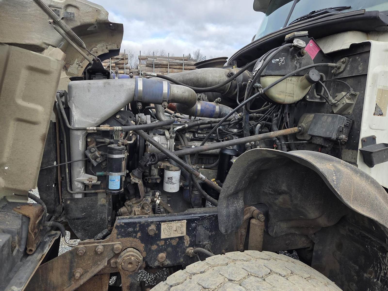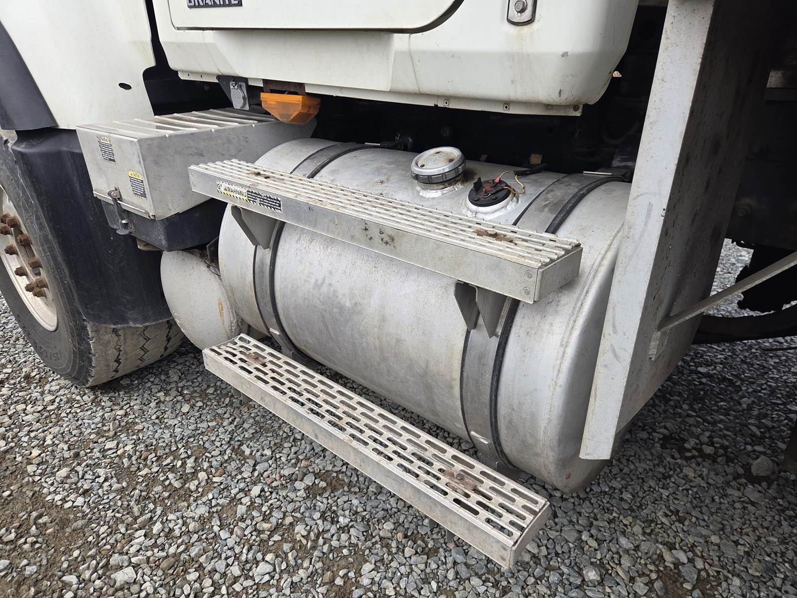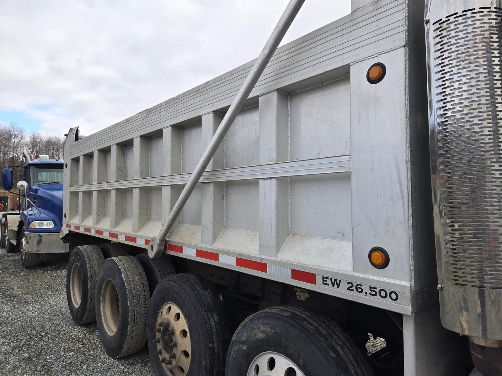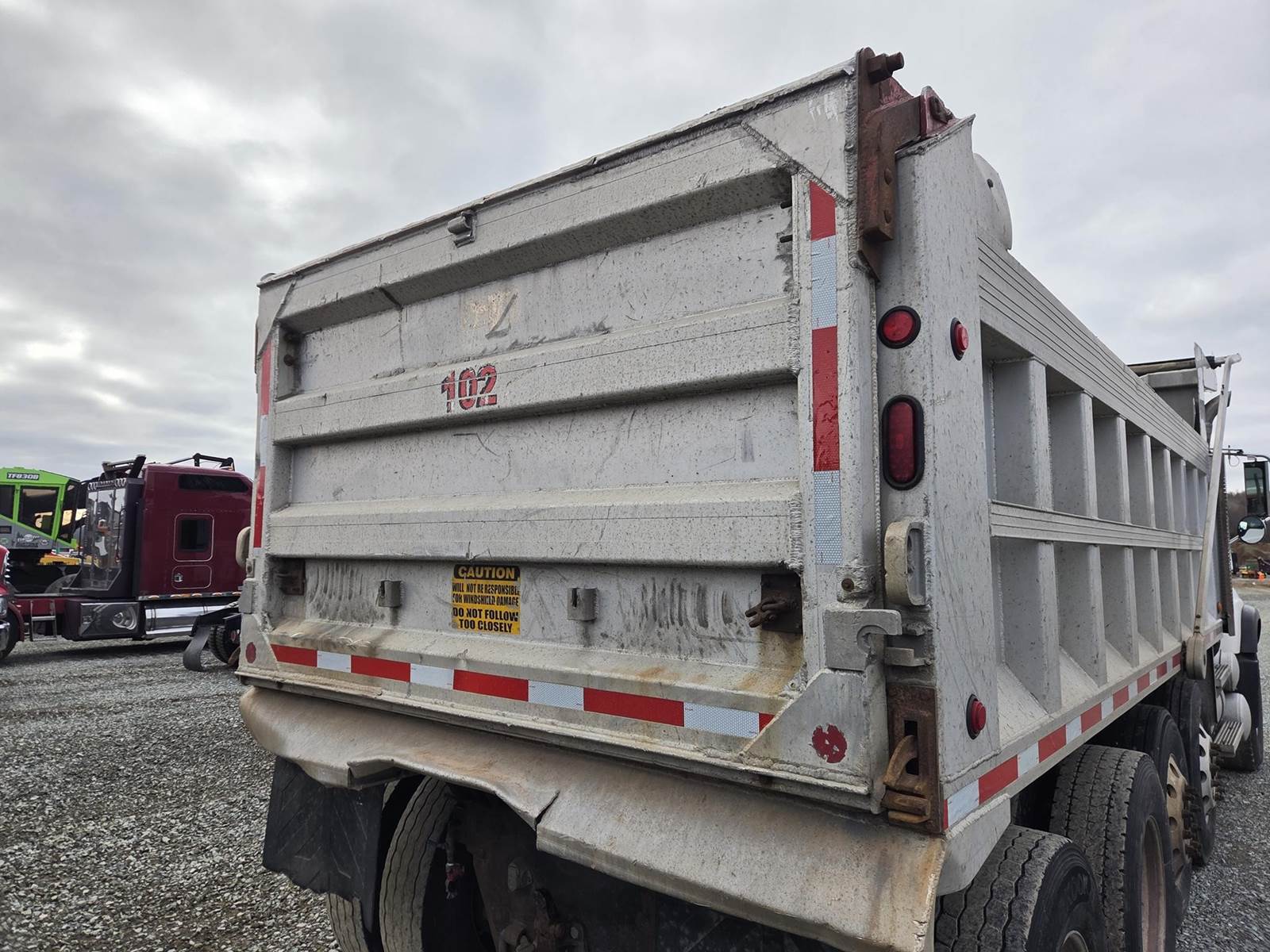 6 Cylinder Mack Turbo Diesel Engine, Maxitorque 10 Speed, Multi-Speed Reverse Manual Transmission, Camelback Suspension, Engine Brake, Inter Axle Lock, PTO, Approx 18' Dump Box, Air Trip Tailgate, Tarper, Steerable Air Lift Pusher Axles, Pintle Hitch W/ Air to the Rear, Air Ride Drivers Seat, Heat, A/C, Radio, Cruise Control, Full Aluminum Rims, 425/65R22.5 Front Tires, 11R22.5 Pushers and Drive Tires