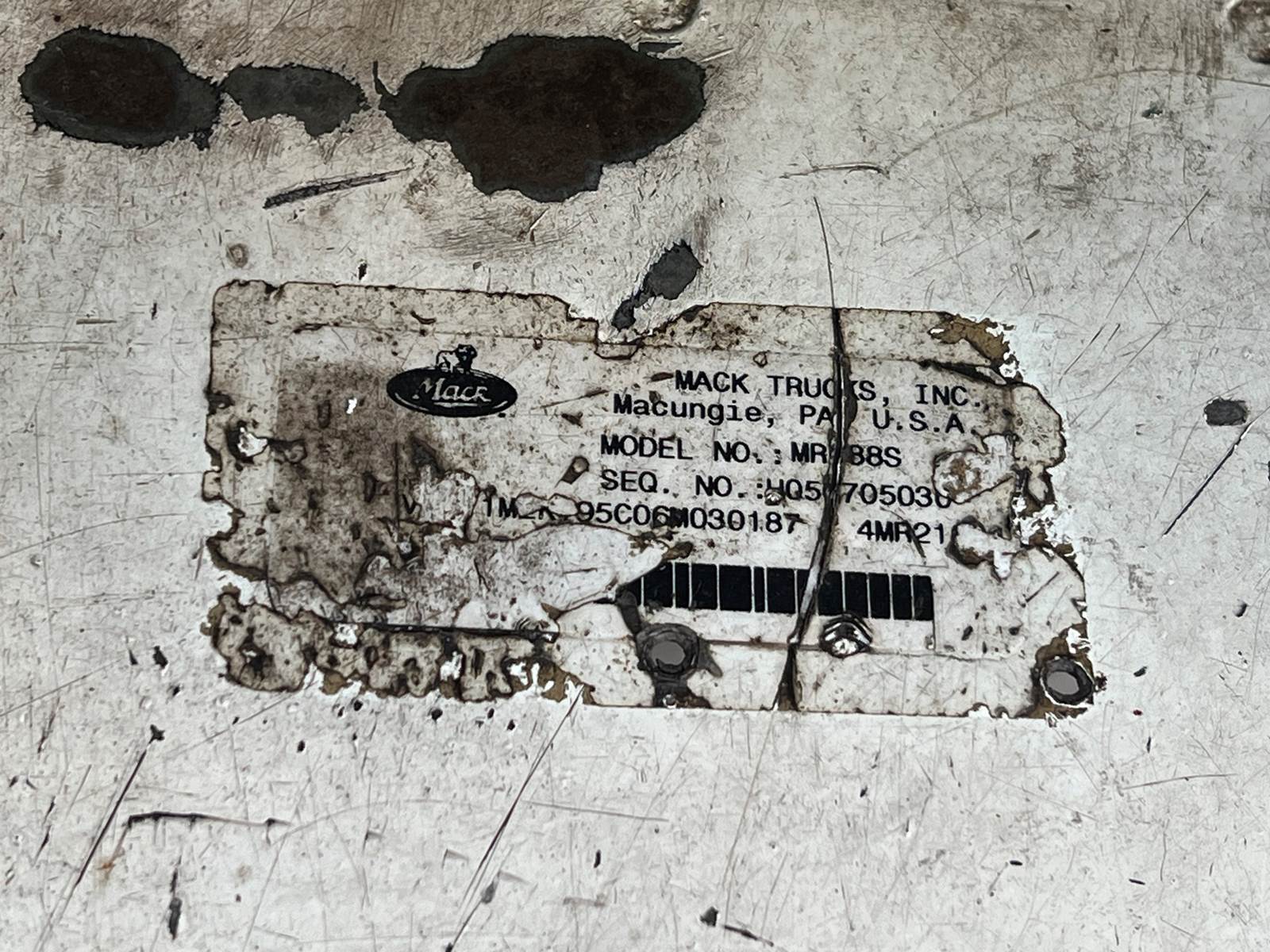 (USED / REPAIRABLE) 2006 Mack MR688S Forward Low CAB Shell For Sale, VIN: 1M2K195C06M030187, 600 Series, Air Brake System, Class 8: 33,001 LB and Over, Stock # 9828-1 OFF Delivery Truck w/ MACK E7 300HP, **COMES AS SEEN IN PHOTOS, CAB SHELL ONLY**