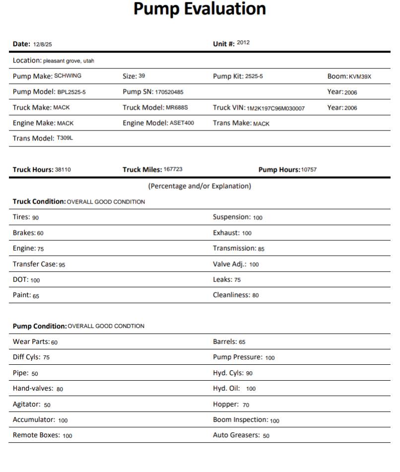 Schwing Concrete Pump 39M on a 2006 Mack MR688S, Boom Concrete Schwing Pump Truck, 450HP, MACK AL400, MACK TRANS T309L, Schwing Pump SN 170520485, 39M, Pump Kit BPL2525-5, Pump Hours 10757, Boom KVM39X, Pump in Good Condition, Pump Pressure 100, 167723 miles, Truck hours 38110, Barrels 65, Valve Adjusted 100, Boom Inspection 100, Hopper 70, Hand-Valves 80, Agitator 50, Accumulator 100, Suspension 100, Exhaust 100, Brakes 60, Tires 90, Engine 75, Transfer Case 95, Transmission 85, Head Cylinder 90, Remote Boxes 100, Pipe 50, Boom 100, Auto Greasers 90, TRUCK BENEFITS from METICULOUS MAINTENANCE, Runs and Operates Very Well, Video/ Face Time upon Request, Financing Available