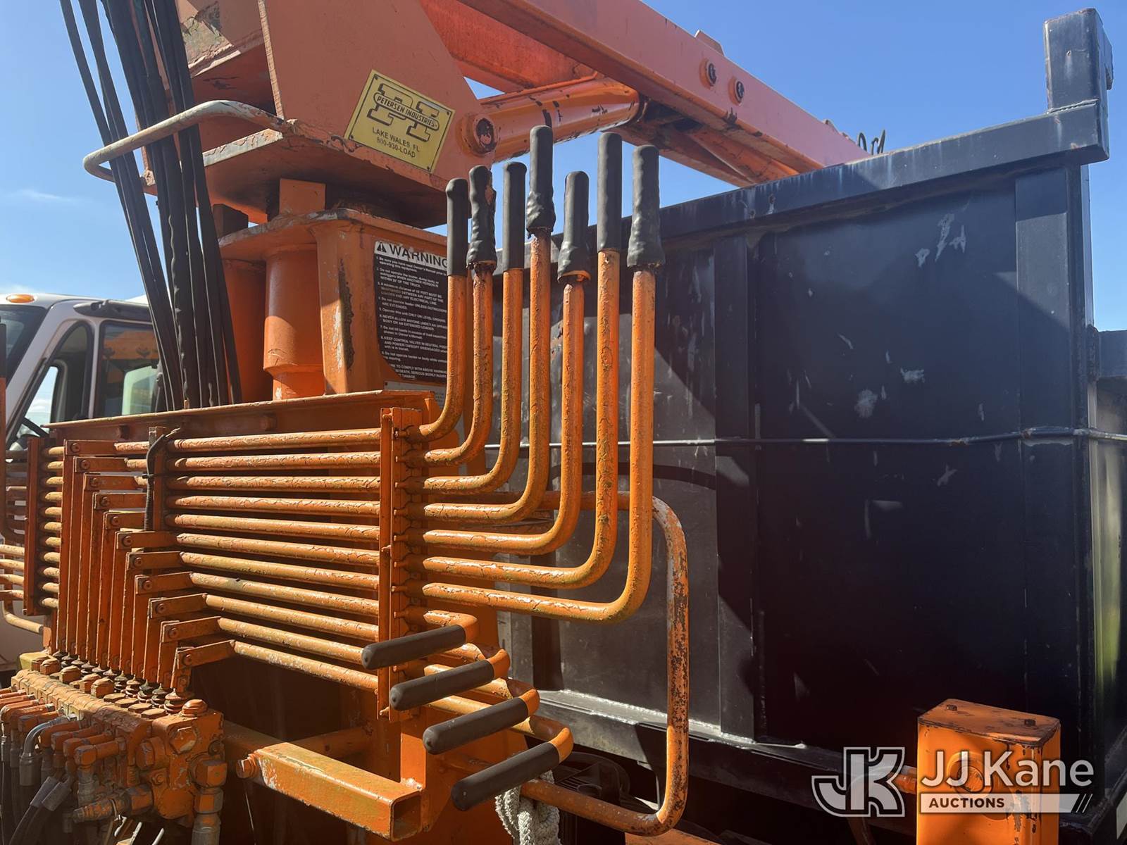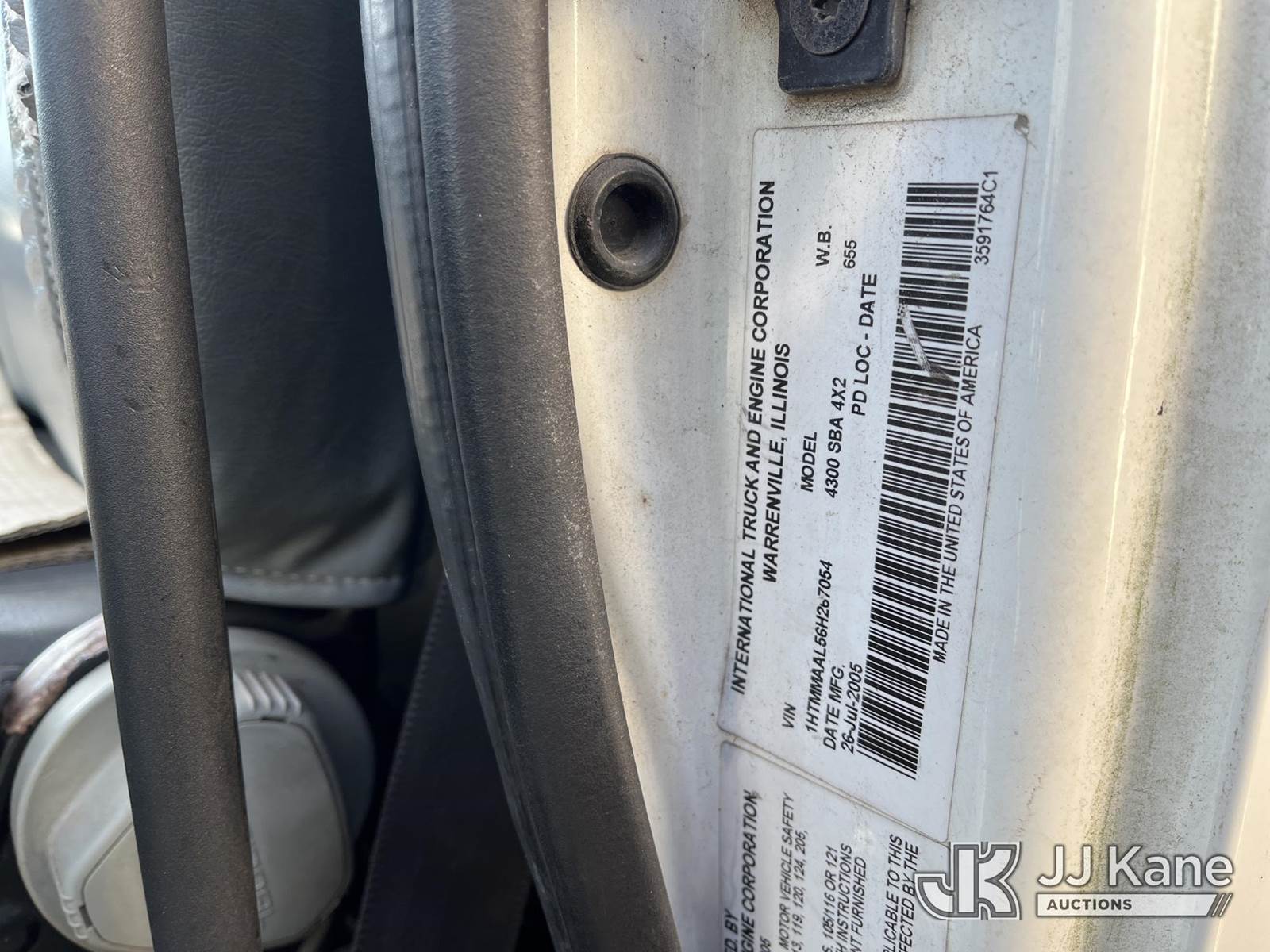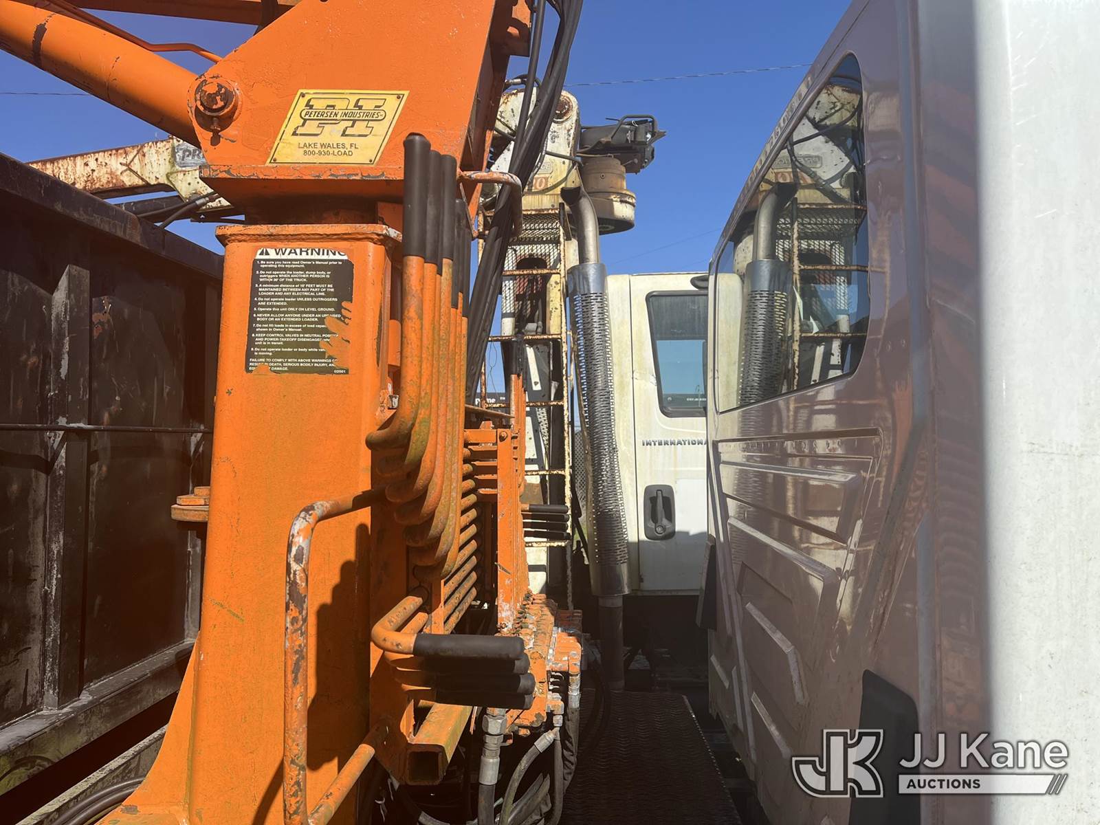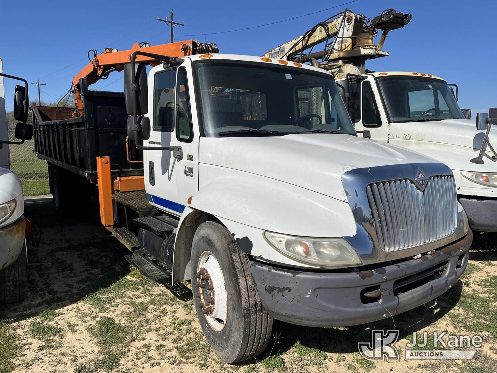Peterson TL3, Grappleboom/Log Loader Crane with grapple attachment, dual controls & 2 hyd outriggers, mounted behind cab on 2006 International DuraStar 4300 Debris Truck, DT466 diesel, Auto, A/C, (Exempt from Odometer Disclosure - Reads 93,858 miles) (Not Running. Condition Unknown. ABS Light. Check ELEC Light. Slight Hood Damage.) This is a Titled Item NOTE: This unit is being sold AS IS/WHERE IS via Timed Auction and is located in Houston, TX. Inspection & preview days for this unit are by appointment only; please contact us at contact@jjkane.com or 84-Go-JJKane for more details. For pre-sale questions, please contact Lowy Ghebre @ (281) 841-0069. (Buyer is responsible for removal. Assistance by consignor or JJ Kane Auctions is not assured.)