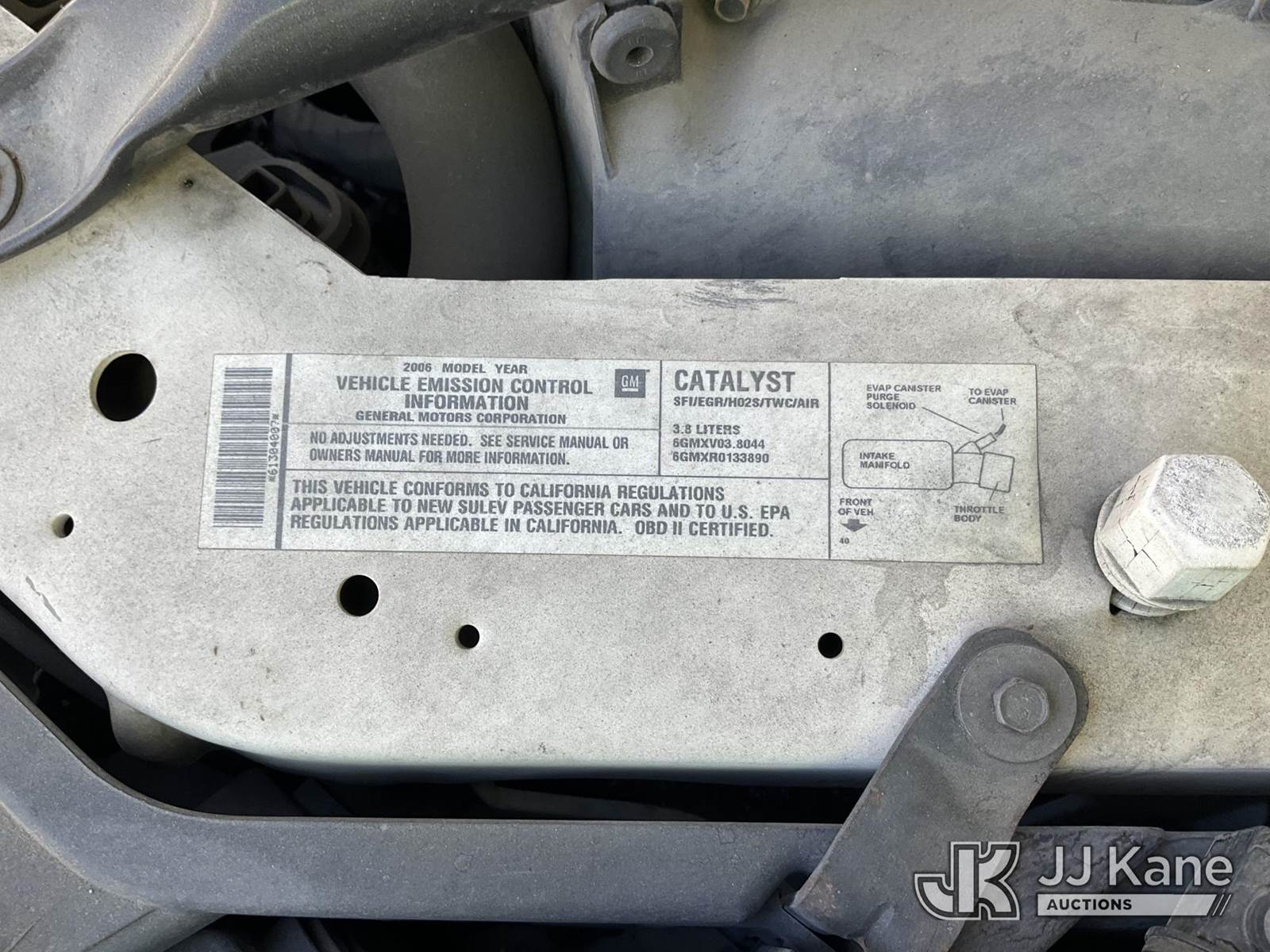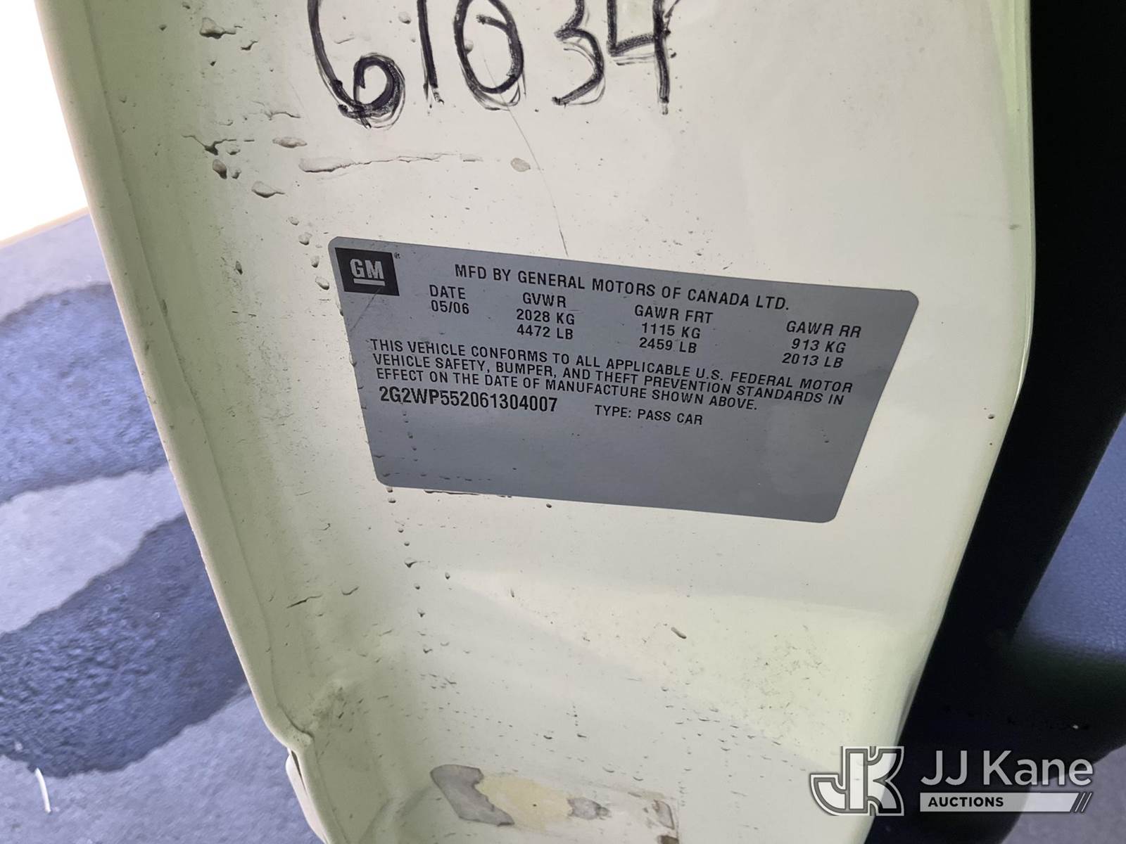2006 Pontiac Grand Prix 4-Door Sedan, s/n 2G2WP552061304007, 6-cyl gas, 4-Speed Automatic, A/C, (Exempt from Odometer Disclosure - Reads 76,340 miles) (Runs & Moves) This is a Titled Item NOTE: This unit is being sold AS IS/WHERE IS via Timed Auction and is located in Jurupa Valley, CA. Inspection & preview days for this unit are the 2 business days prior to the first day of items closing for this auction, item is located at 4510 Muth Way Jurupa Valley, CA 92509 and hours of operations are 8a-4p. For pre-sale questions, please contact please contact Office Staff @ (310) 353-7140. Dealer License Number 45696. (Buyer is responsible for removal. Assistance by consignor or JJ Kane Auctions is not assured.)