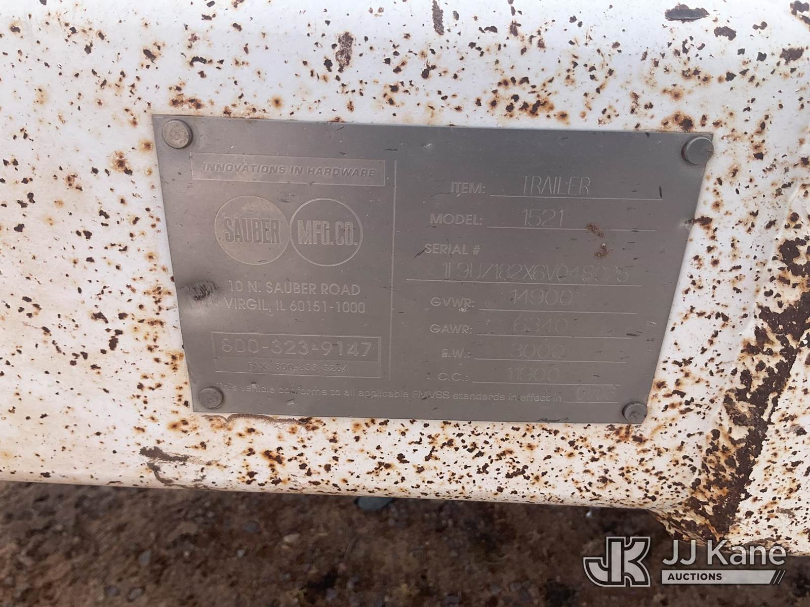 2006 SAUBER 1521 T/A Reel/Material Trailer, (Missing Pipe for Holding Wind Conductor) This is a Titled Item NOTE: This unit is being sold AS IS/WHERE IS via Timed Auction and is located in Fort Defiance, AZ. Contact Carson Wenner at (480) 617-3620 for removal details. SCHEDULED LOAD-OUT on March 4th - 5th and 11th-12th Buyers must present a RELEASE FORM. Remove all lots within the specified dates to avoid 3rd party towing and holding costs. (Buyer is responsible for removal. Assistance by consignor or JJ Kane Auctions is not assured.)