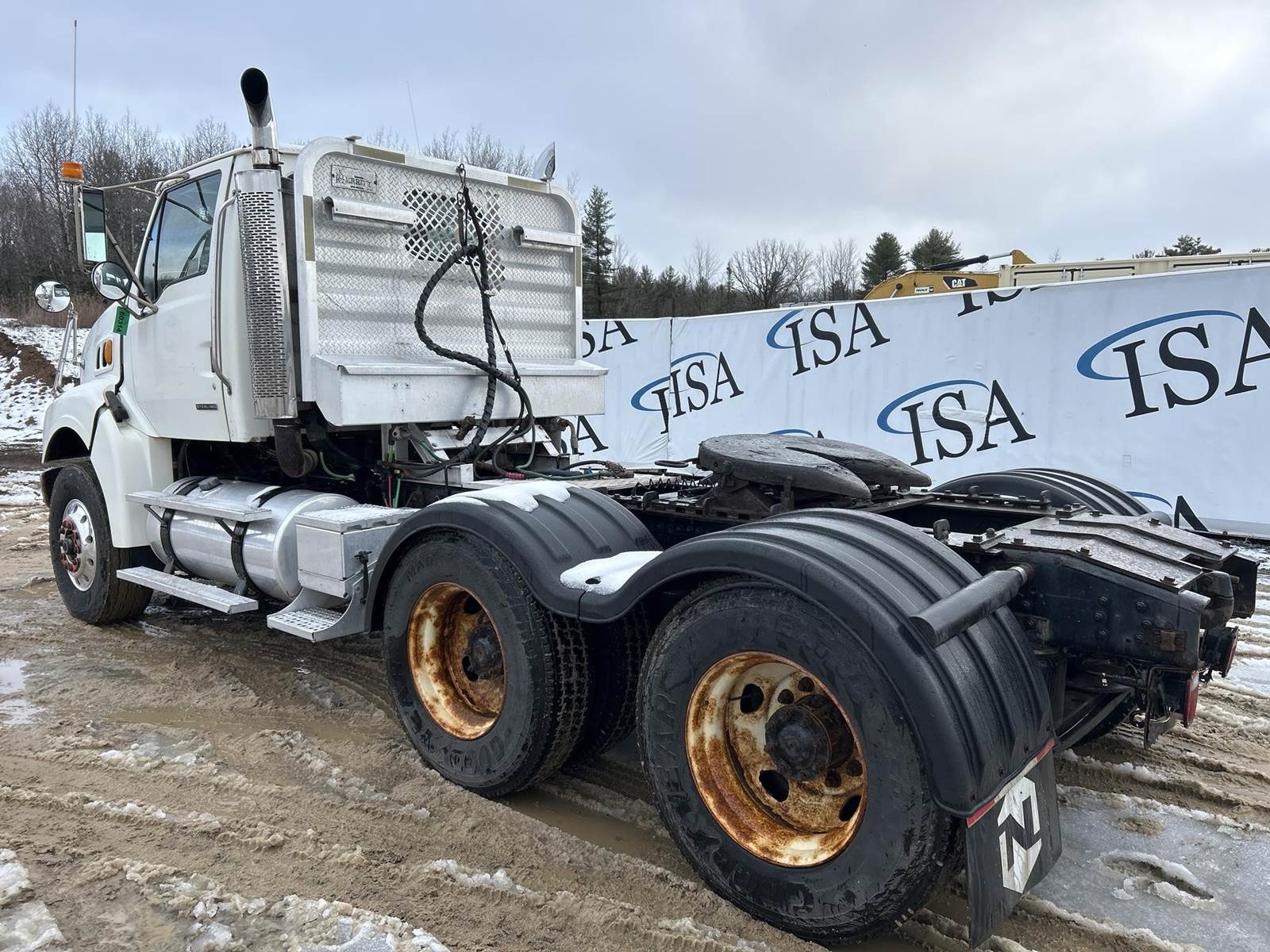 Caterpillar C15 ACERT Turbo Diesel Engine,13 Speed Manual Transmission, PTO, Wet Kit, Full Lockers, Aluminium Headache Rack, Chain/Strap Compartment, Approx. 5' Air Sliding Fifth Wheel, Single Frame, Air Ride Suspension, Day Cab, Air Ride Radio, Heat, AC, Radio, CB Radio, Aluminum Steer Rims, 315/80R22.5 Front Tires,11R22.5 Rear Tires