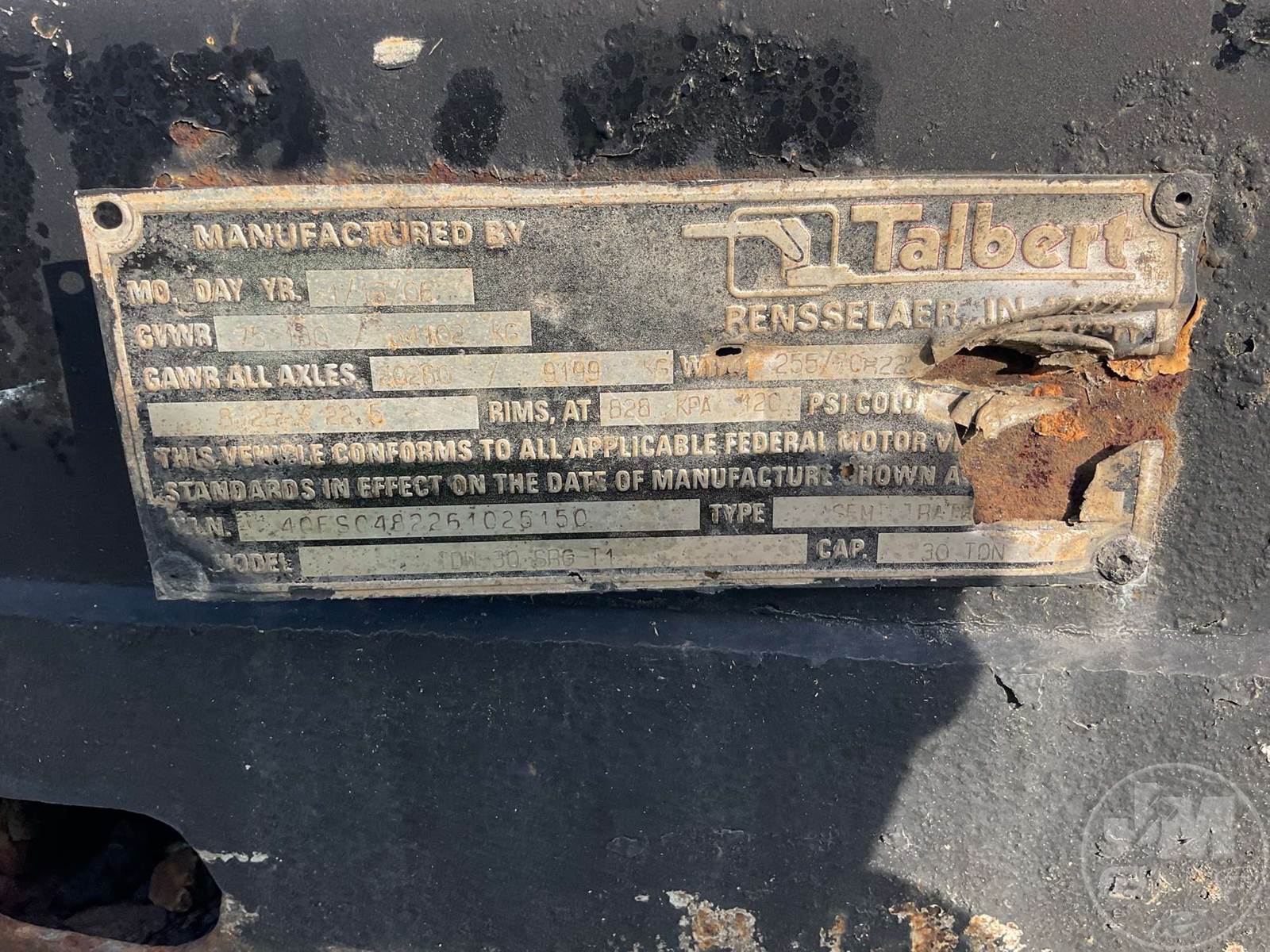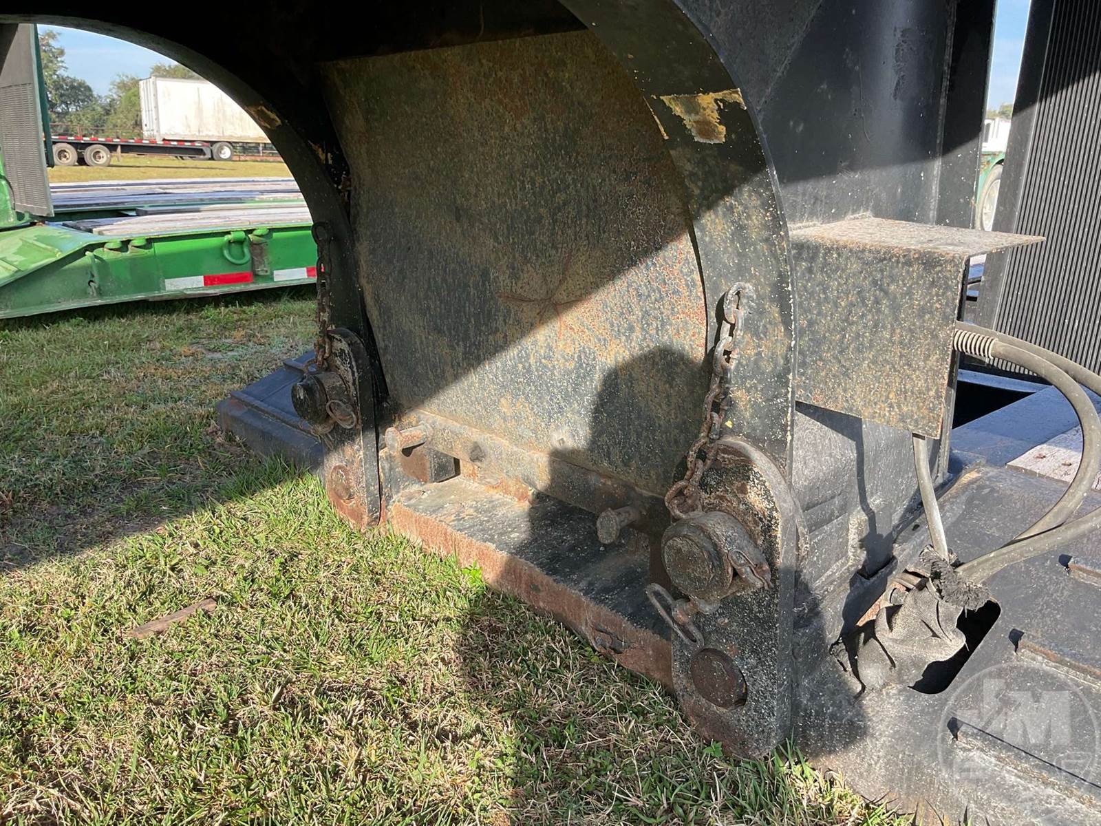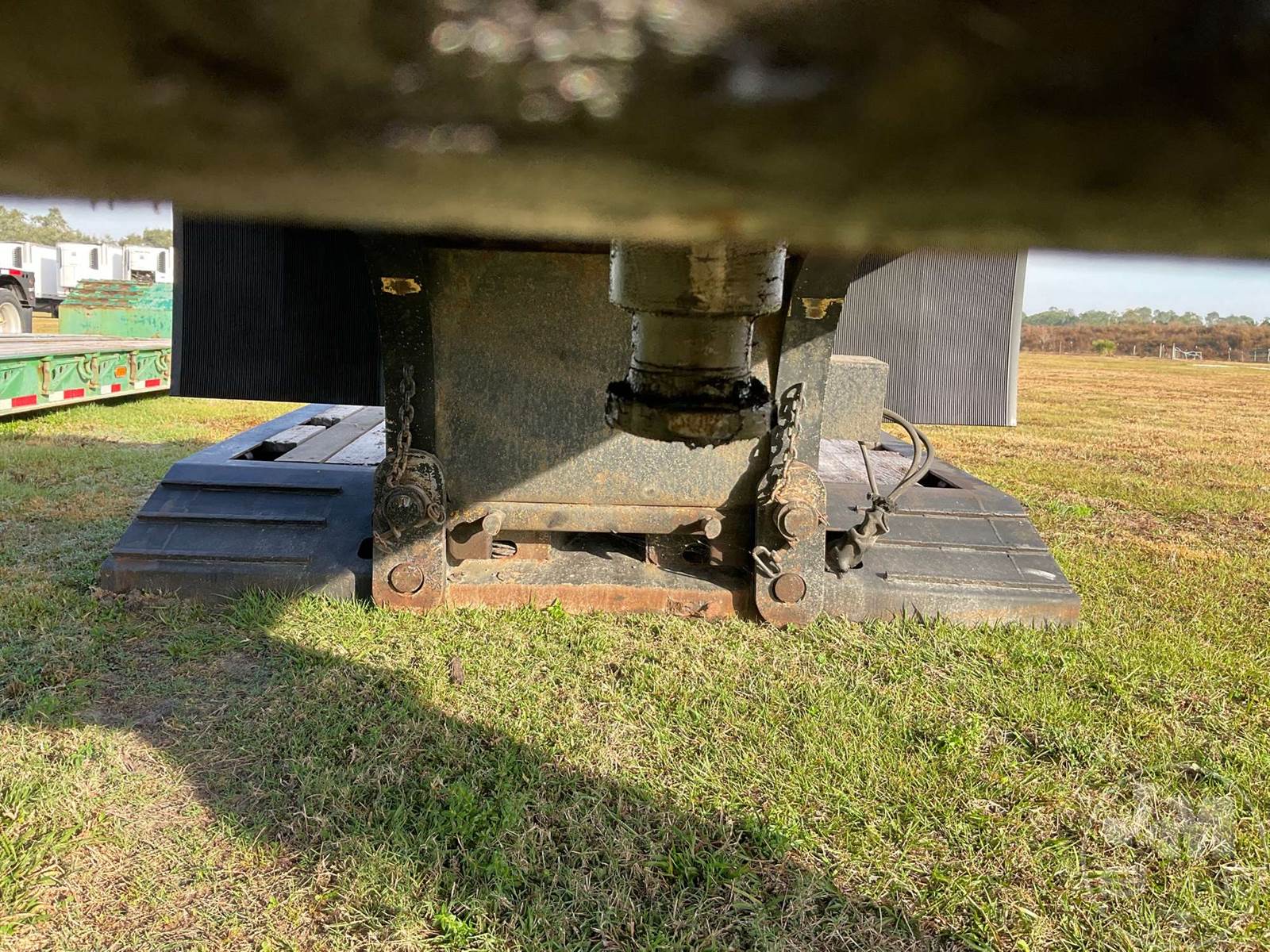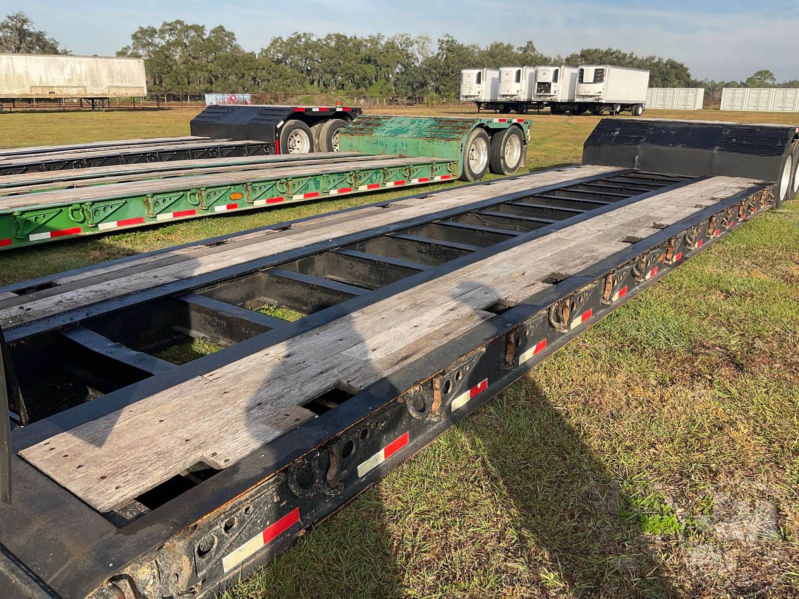 MECHANICAL RGN LOWBOY TRAILER, 30 TON, TANDEM AXLE, OUTRIGGERS, 8'6" WIDE, AIR RIDE SUSPENSION, WOOD DECKING, ALUMINUM OUTSIDE DISC WHEELS, 255/70R22.5 TIRES, 30 TON, TOP DECK LENGTH 120" MAIN DECK LENGTH 29' DECK OVER TANDEMS LENGTH 79" CENTRAL TIRE INFLATION