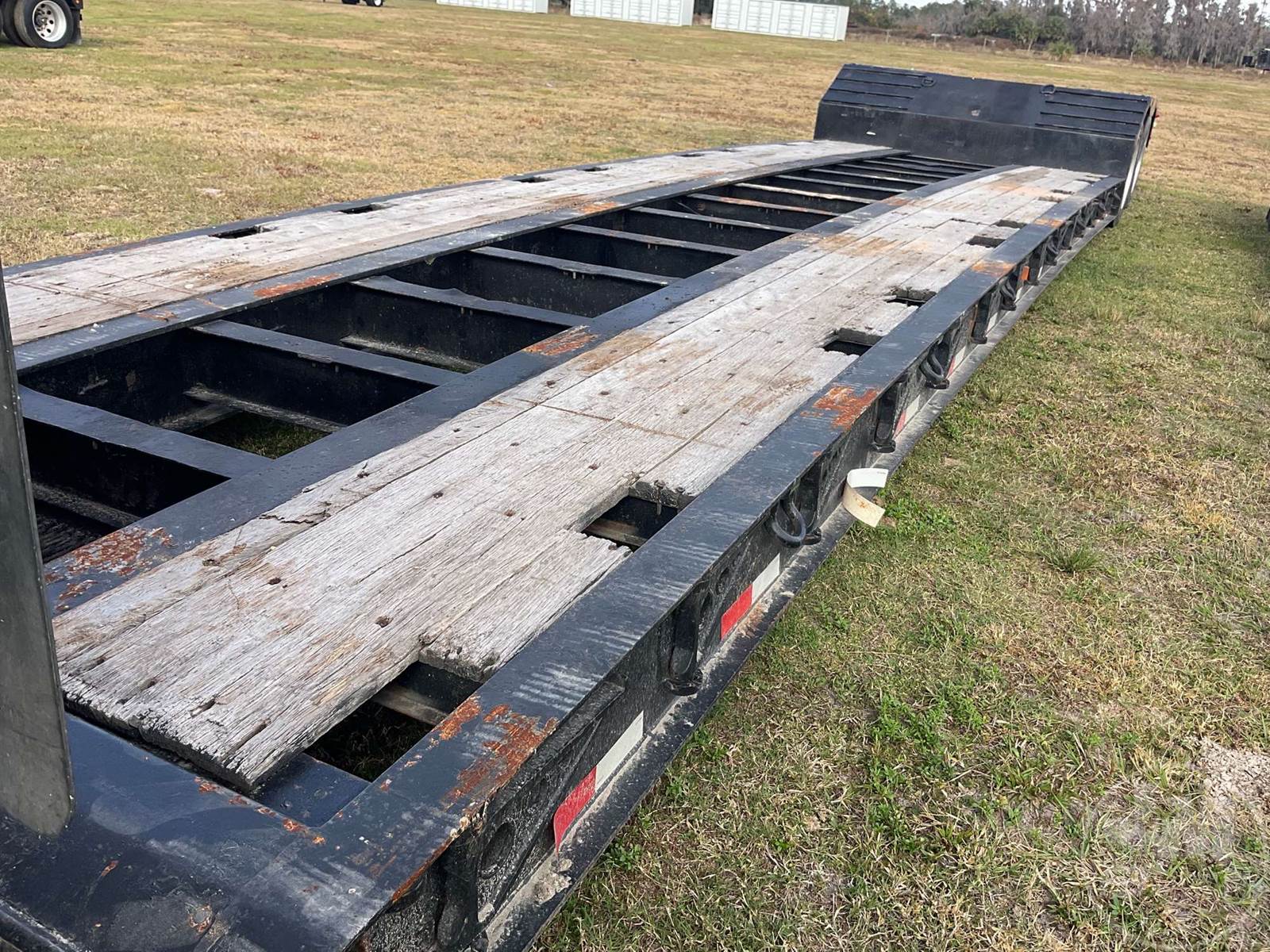 MECHANICAL RGN LOWBOY TRAILER, 30 TON, TANDEM AXLE, OUTRIGGERS, 8'6" WIDE, AIR RIDE SUSPENSION, WOOD DECKING, 255/70R22.5 TIRES, FRONT DECK 10', MAIN DECK 29', DECK OVER TANDEMS 6'-7", CENTRAL TIRE INFLATION