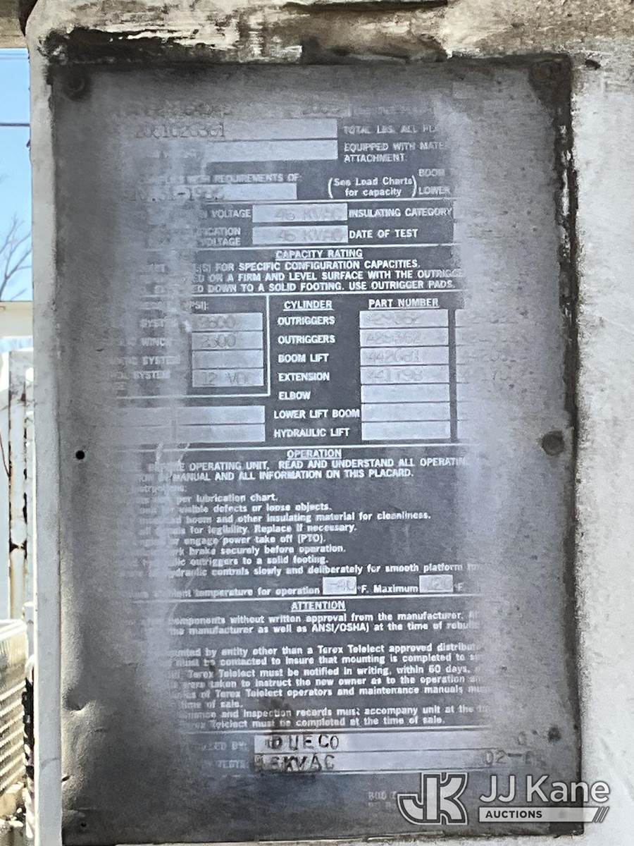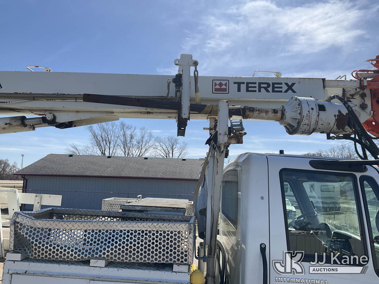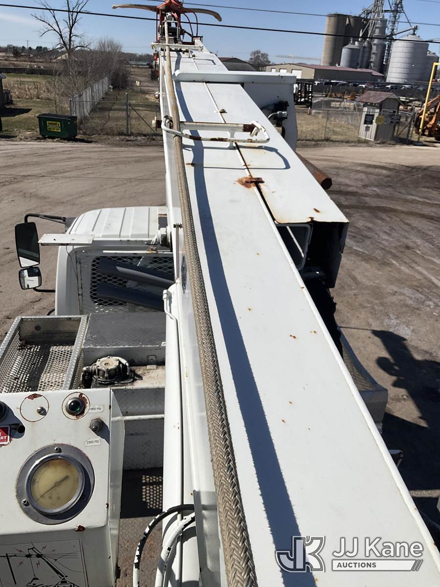 Terex/Telelect Commander 4045, 25,930 Lb Digger Derrick s/n 2051028361, with 45ft. sheave height, 2-spd digger, pole guides, heel winch & riding console, rear mounted on 2006 International 4300 Flatbed Truck, 7.6L diesel, 4X2, Auto, A/C, (Exempt from Odometer Disclosure - Reads 133,619 miles) (Runs, Moves & Upper Operates)(Pole Grab Does Not Tilt) (Reads 9,216 hours) This is a Titled Item NOTE: This unit is being sold AS IS/WHERE IS via Timed Auction and is located in South Beloit, IL. Inspection & preview days for this unit are the 2 business days prior to the first day of items closing for this auction, item is located at 14354 Dearborn Ave South Beloit, IL and hours of operations are 8a-4p. For pre-sale questions, please contact Derek Eklund at (608) 904-0618 or (derek.eklund@jjkane.com). (Missing manuals, See Auction Company for Manufacturers Information to obtain manuals) (Buyer is responsible for removal. Assistance by consignor or JJ Kane Auctions is not assured.)