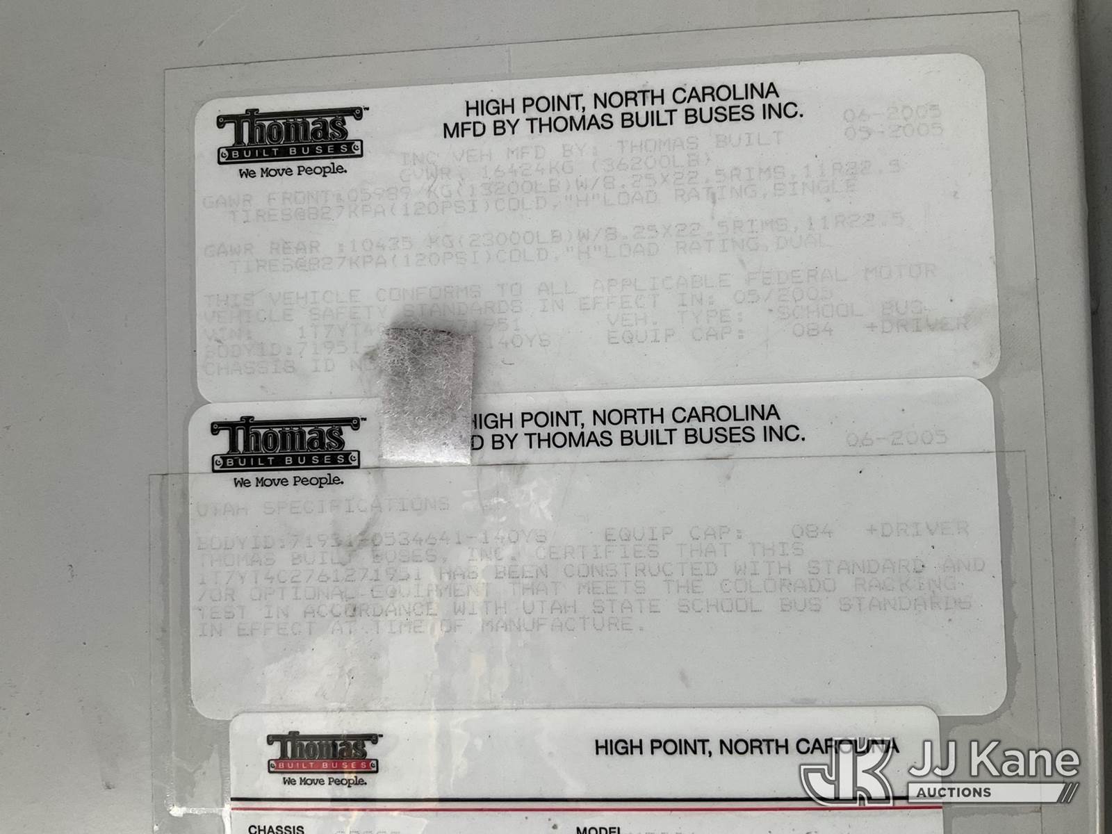 2006 Thomas Saf-T-Liner HDX School Bus, Cat C7 diesel, Auto, (Exempt from Odometer Disclosure - Reads 172,111 miles) (Runs & Moves) (Reads 10,910 hours) This is a Titled Item NOTE: This unit is being sold AS IS/WHERE IS via Timed Auction and is located in Salt Lake City, UT. Inspection & preview days for this unit are the 2 business days prior to the first day of items closing for this auction, item is located at 2353 N Redwood Rd Salt Lake City, UT 84116 and hours of operations are 8a-4p. Titles executed exactly as bidder registered. Ensure your name and/or business name and address in JJ Kane and/or ProxiBid is correct before bidding. For pre-sale questions, please contact Office Staff @ (801) 519-0123. (Buyer is responsible for removal. Assistance by consignor or JJ Kane Auctions is not assured.)