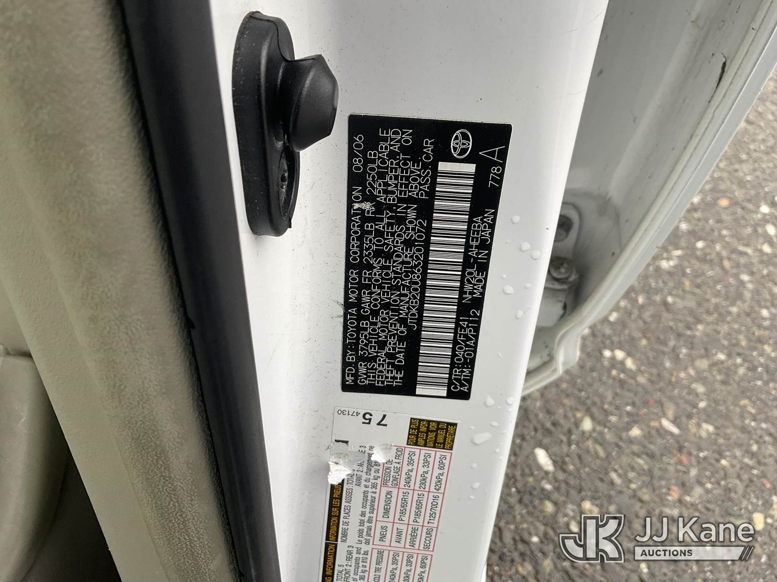 2006 Toyota Prius 4-Door Hatch Back, 4-cyl Hybrid Continuously Variable Transmission, A/C, (Exempt from Odometer Disclosure - Reads 52,517 miles) (Runs & Moves) (Touchscreen Does Not Work) This is a Titled Item NOTE: This unit is being sold AS IS/WHERE IS via Timed Auction and is located in Dixon, CA. Inspection & preview days for this unit are the 2 business days prior to the first day of items closing for this auction, item is located at 8668 Sparling Ln Dixon, CA 95620 and hours of operations are 8a-4p. For pre-sale questions, please contact JJ Kane Staff at (707) 678-8060 (dixon@jjkane.com). Dealer License Number 45696. (Buyer is responsible for removal. Assistance by consignor or JJ Kane Auctions is not assured.)