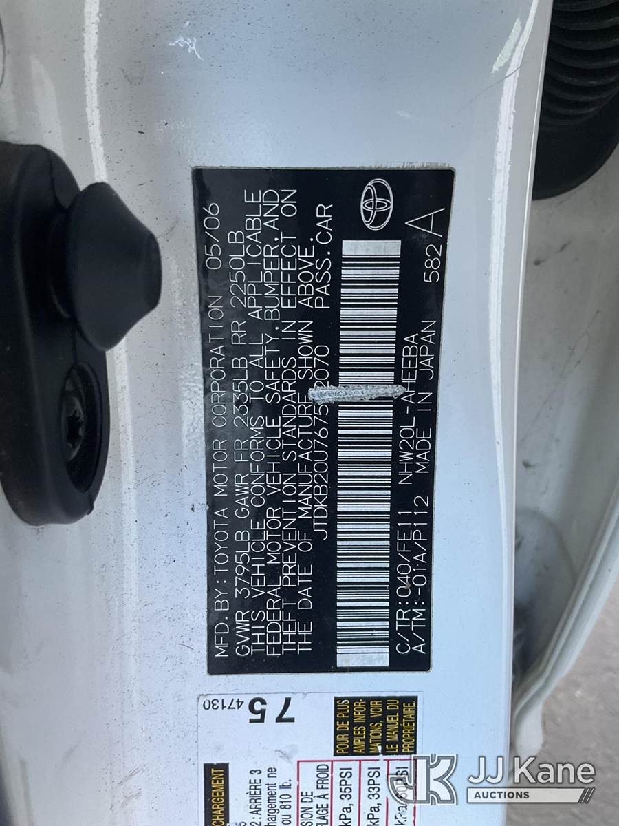 2006 Toyota Prius Hybrid 4-Door Liftback 4-Door Hatch Back, s/n JTDKB20U767502070, 1.5L L4 DOHC 16V Gas/Electric FWD, Continuously Variable Transmission, A/C, (Exempt from Odometer Disclosure - Reads 44,559 miles) (Runs & Moves) This is a Titled Item NOTE: This unit is being sold AS IS/WHERE IS via Timed Auction and is located in Jurupa Valley, CA. Inspection & preview days for this unit are the 2 business days prior to the first day of items closing for this auction, item is located at 4510 Muth Way Jurupa Valley, CA 92509 and hours of operations are 8a-4p. For pre-sale questions, please contact please contact Office Staff @ (310) 353-7140. Dealer License Number 45696. (Buyer is responsible for removal. Assistance by consignor or JJ Kane Auctions is not assured.)