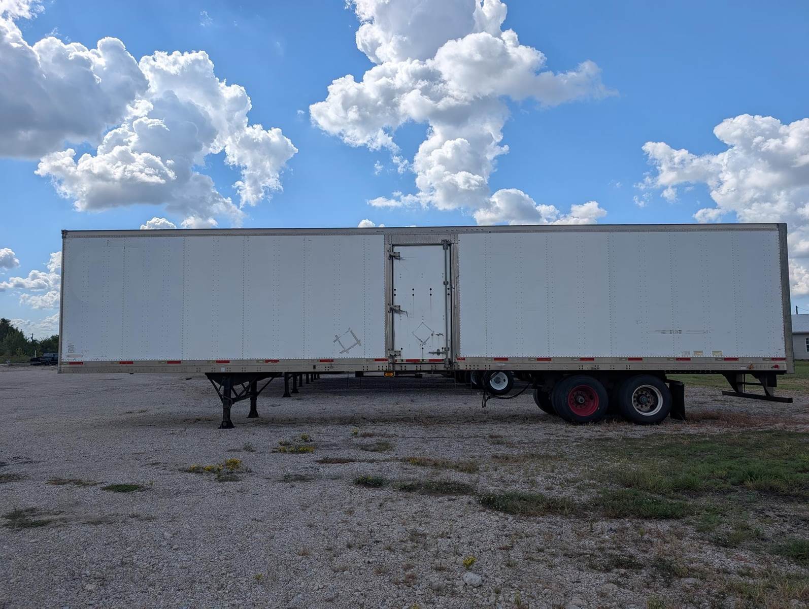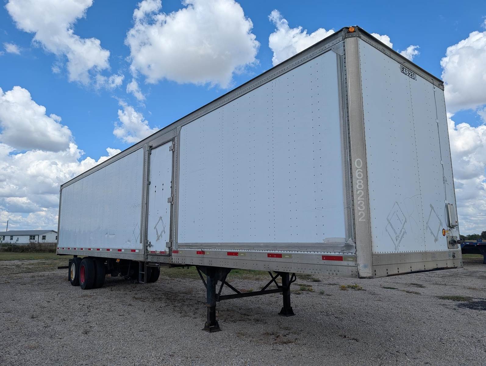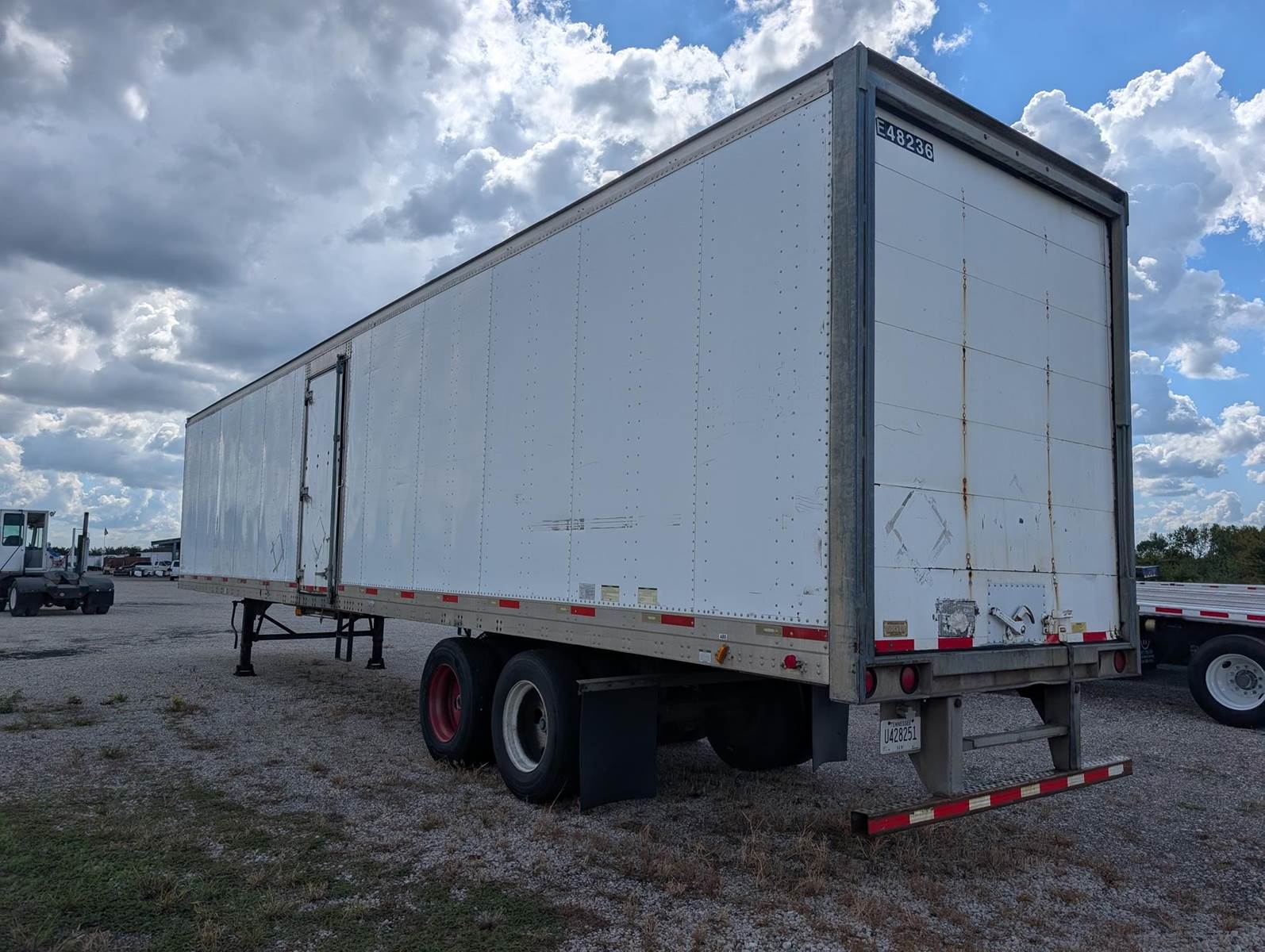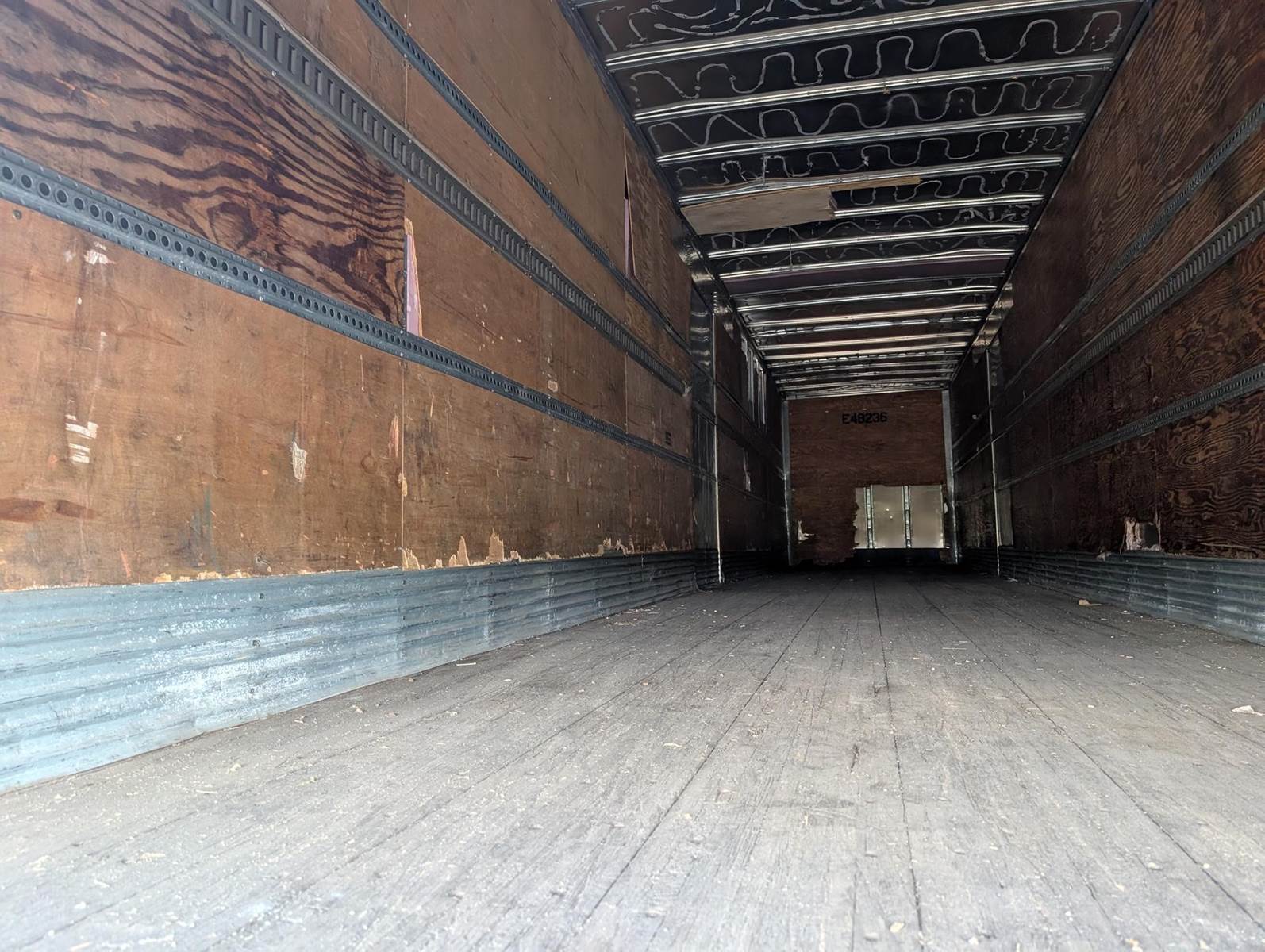 CASH TRAILER; SLIDING TANDEMS; CURBSIDE DOOR; 2006 Trailmobile 48’ x 102” Dry Van; Sliding Axles; Aluminum Roof; Plywood Lined Walls; E Track; Roll Door; Steel Wheels; Curbside Door