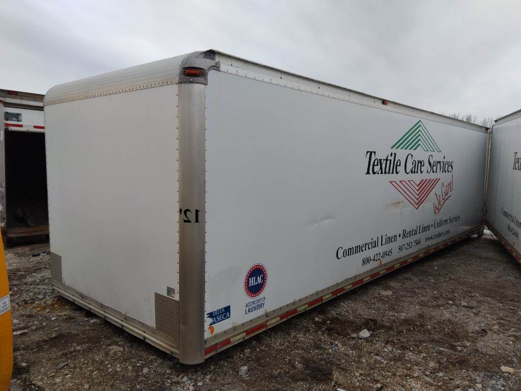 USED BOX VAN BODY WITH SOME DAMAGE. GOOD BOX FOR STORAGE.
