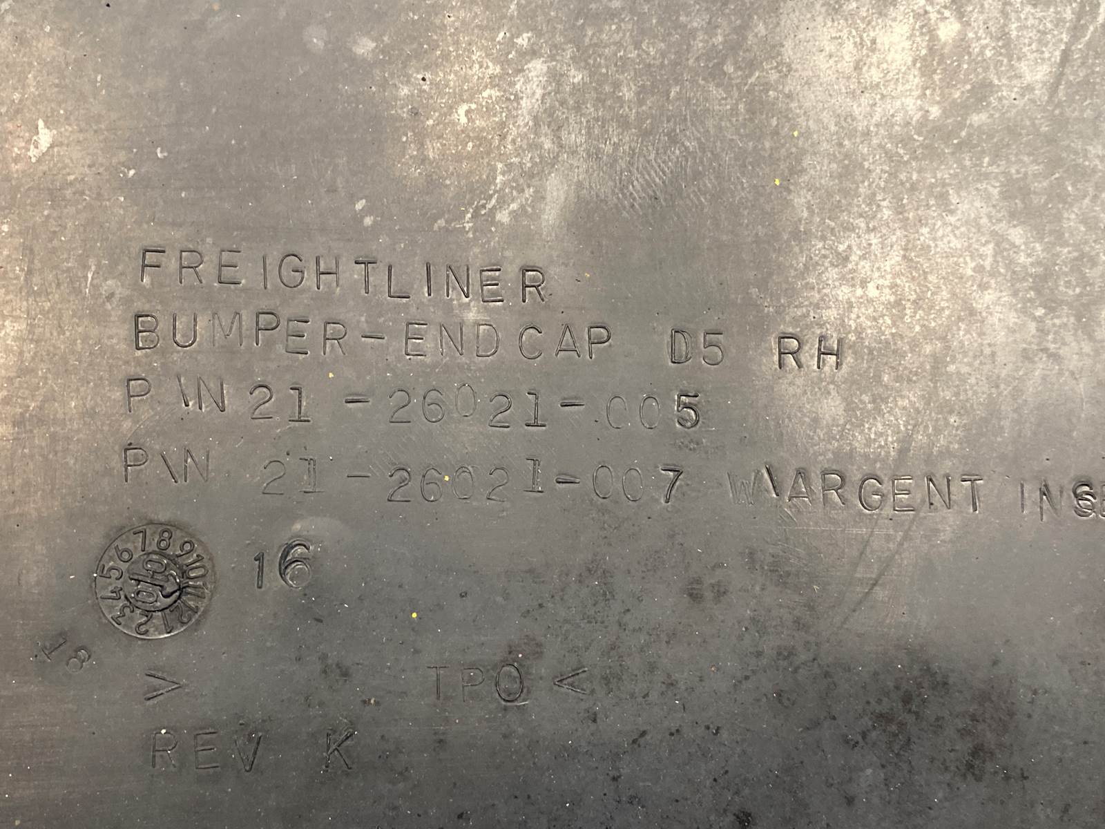 Used Columbia RH Bumper End, Side: Passenger, Type: Outer Bumper End, Width: 27.00", Height: 21.00", Material: Composite