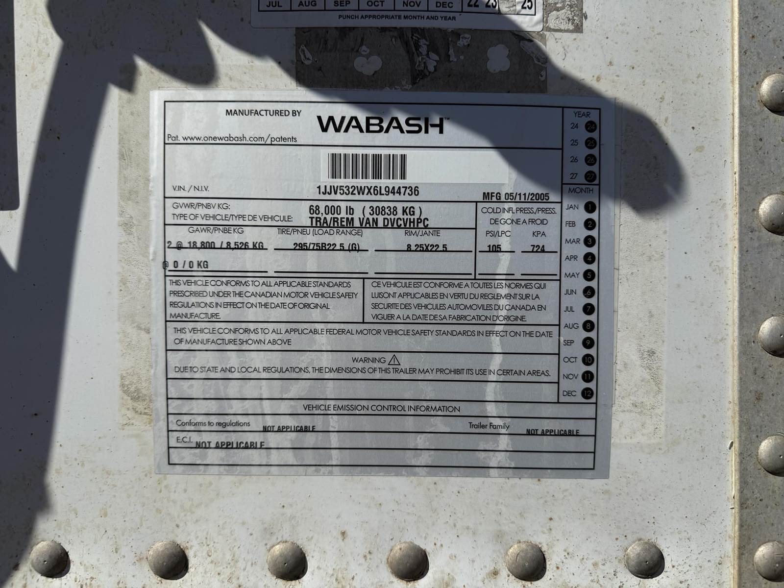 2007 Wabash 53 ft Dry Van Trailer - Swing Door, Spring, Sliding Axle