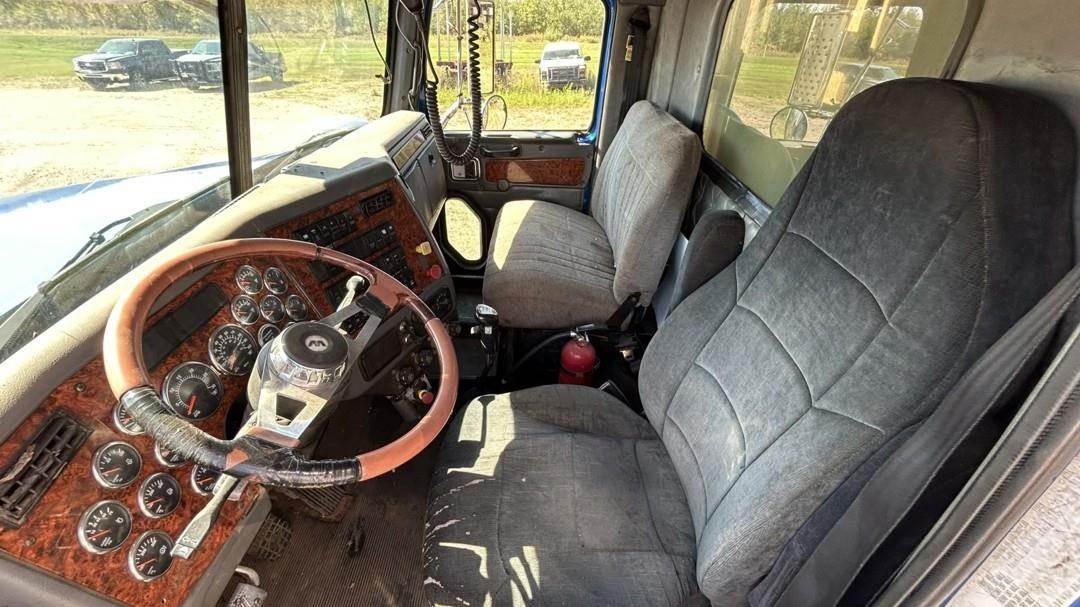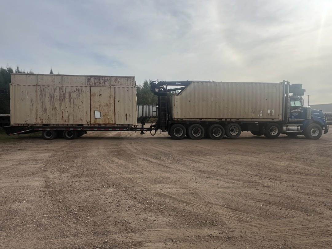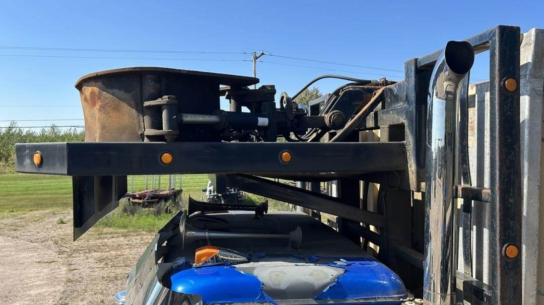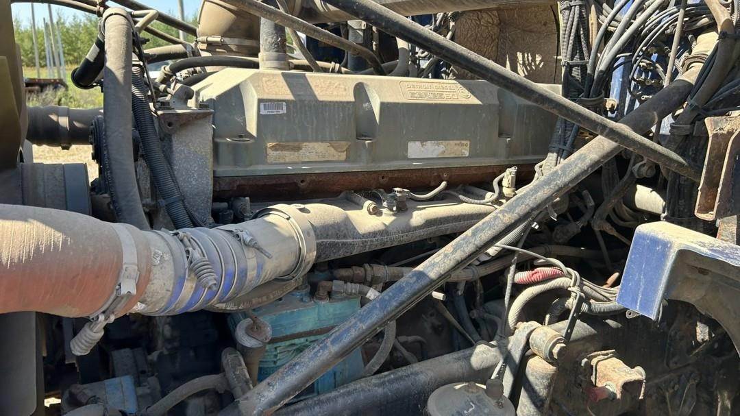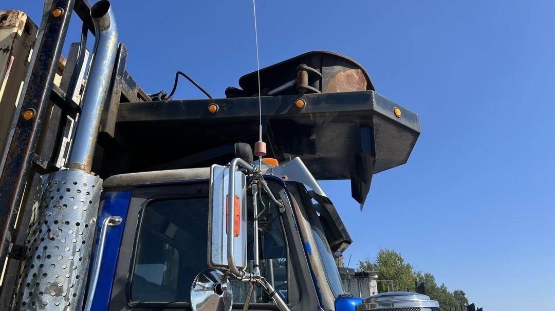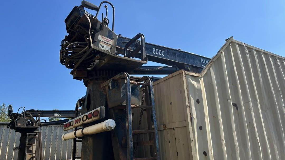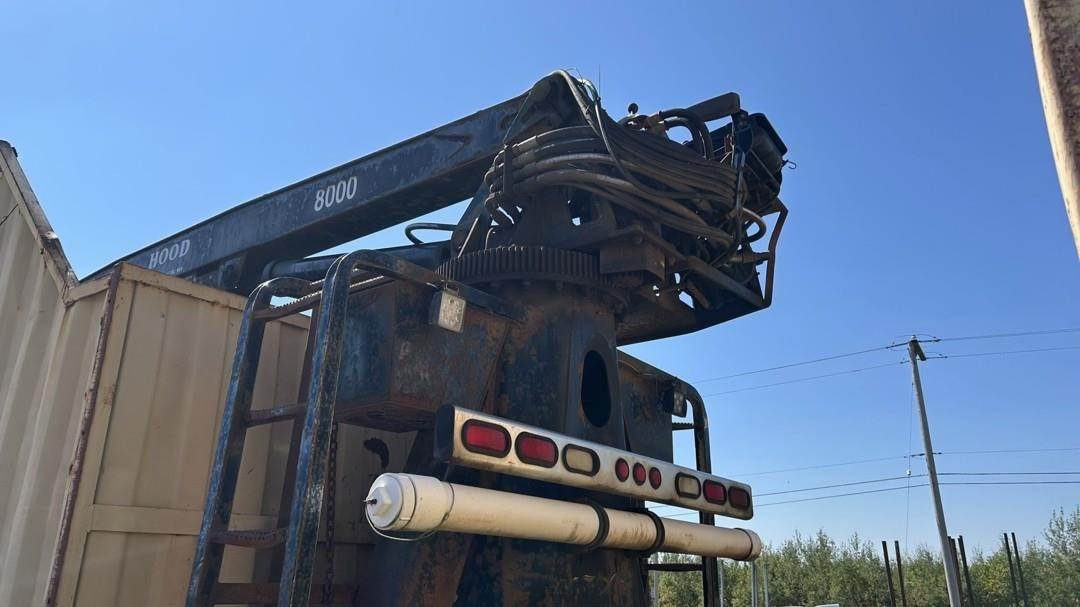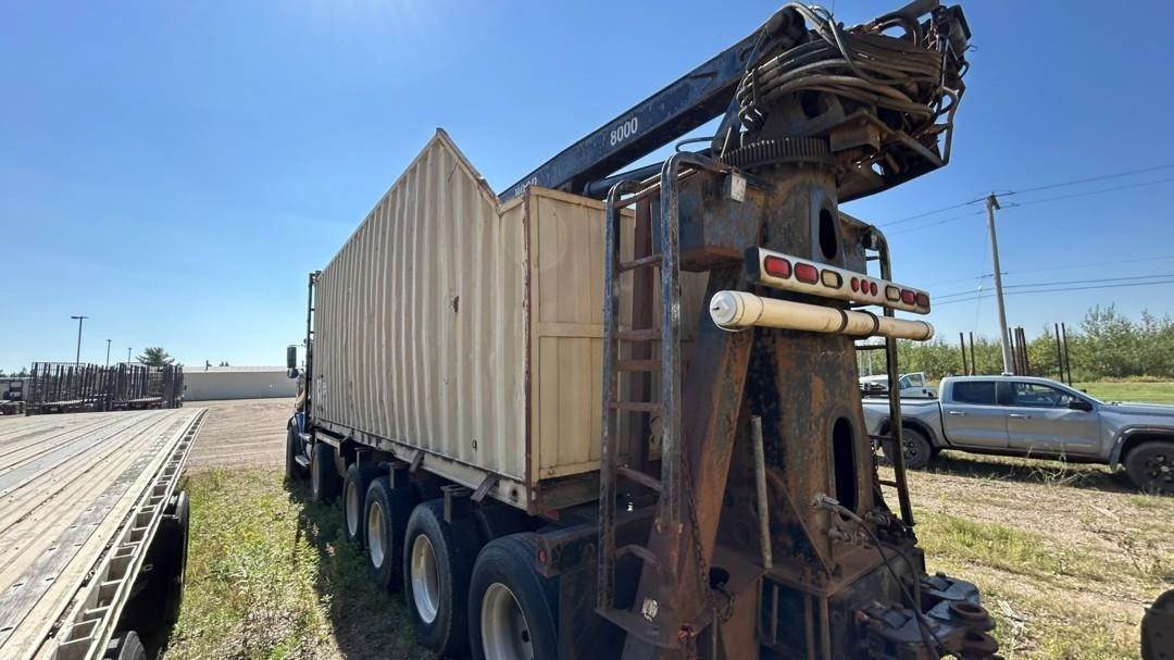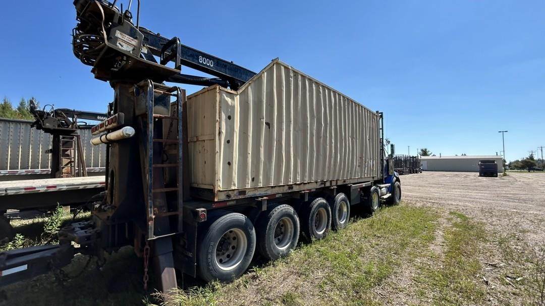 6 Cylinder Detroit Diesel Turbo Diesel Engine, 18 Speed Eaton Fuller Manual Transmission, PTO, Full Lockers, (2) Pusher Axles, GVWR: 64000lbs, Double Frame, Full Aluminum Rims,Approx. 24' Storm Box, Work Lights, Butt Grapple, Hood 8000 Loader, Outriggers, Joystick Controls, Approx. 25' Flatbed Trailer, Approx. 24' Storm Box, Two Speed Jack, Day Cab, Air Ride Driver Seat, Heat, AC, Radio, Cruise Control, Heated Mirrors, CB Radio, 445/65R22.5 Front Tires, 11R 22.5 Rear Tires