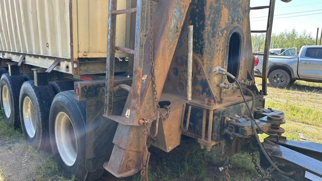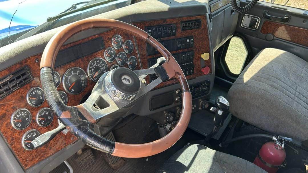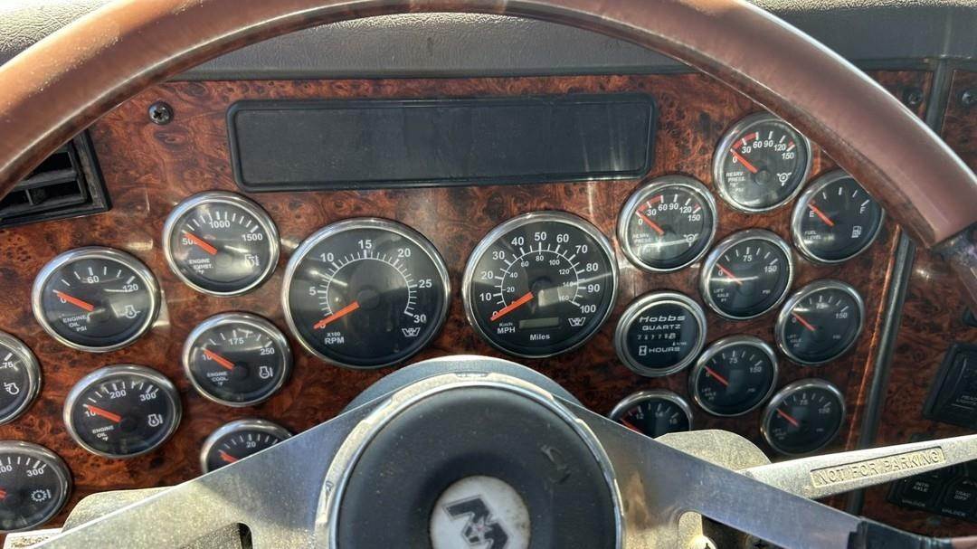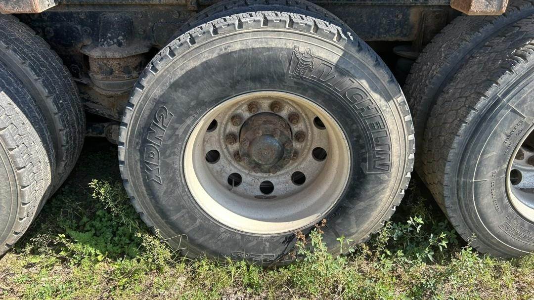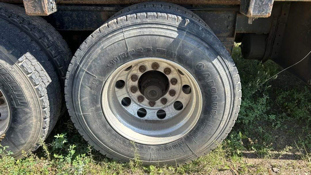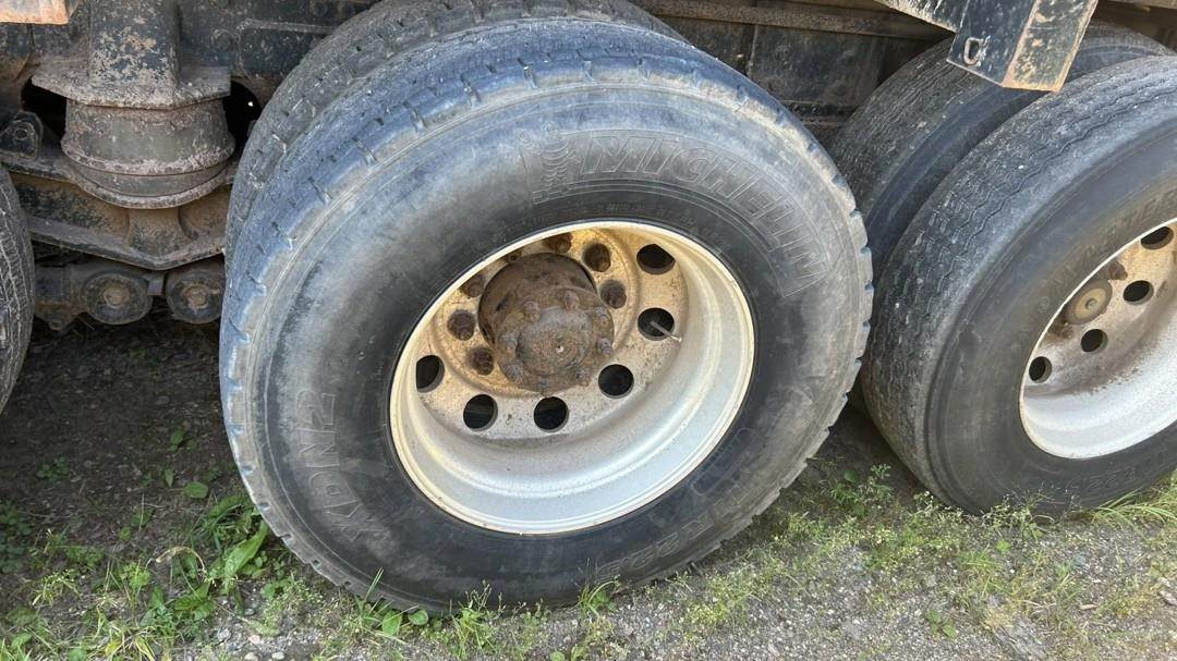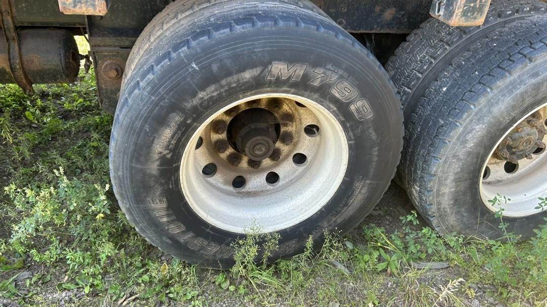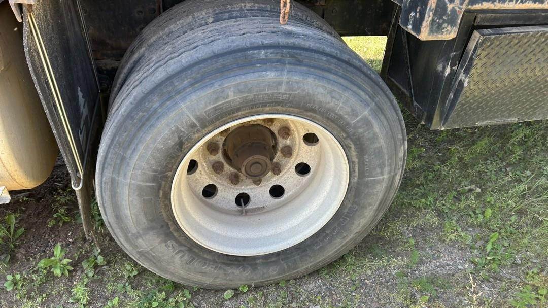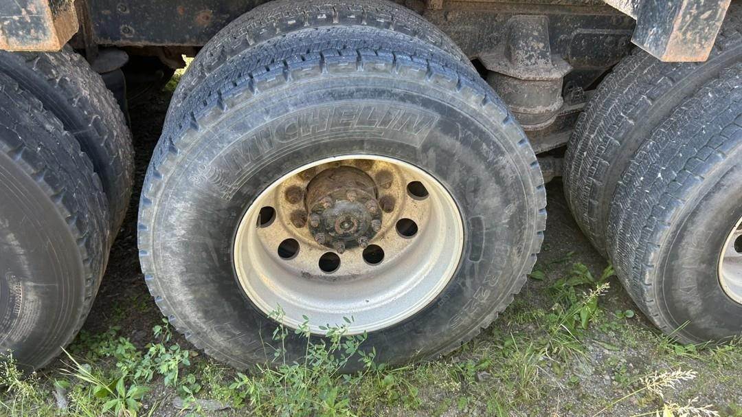 6 Cylinder Detroit Diesel Turbo Diesel Engine, 18 Speed Eaton Fuller Manual Transmission, PTO, Full Lockers, (2) Pusher Axles, GVWR: 64000lbs, Double Frame, Full Aluminum Rims,Approx. 24' Storm Box, Work Lights, Butt Grapple, Hood 8000 Loader, Outriggers, Joystick Controls, Approx. 25' Flatbed Trailer, Approx. 24' Storm Box, Two Speed Jack, Day Cab, Air Ride Driver Seat, Heat, AC, Radio, Cruise Control, Heated Mirrors, CB Radio, 445/65R22.5 Front Tires, 11R 22.5 Rear Tires