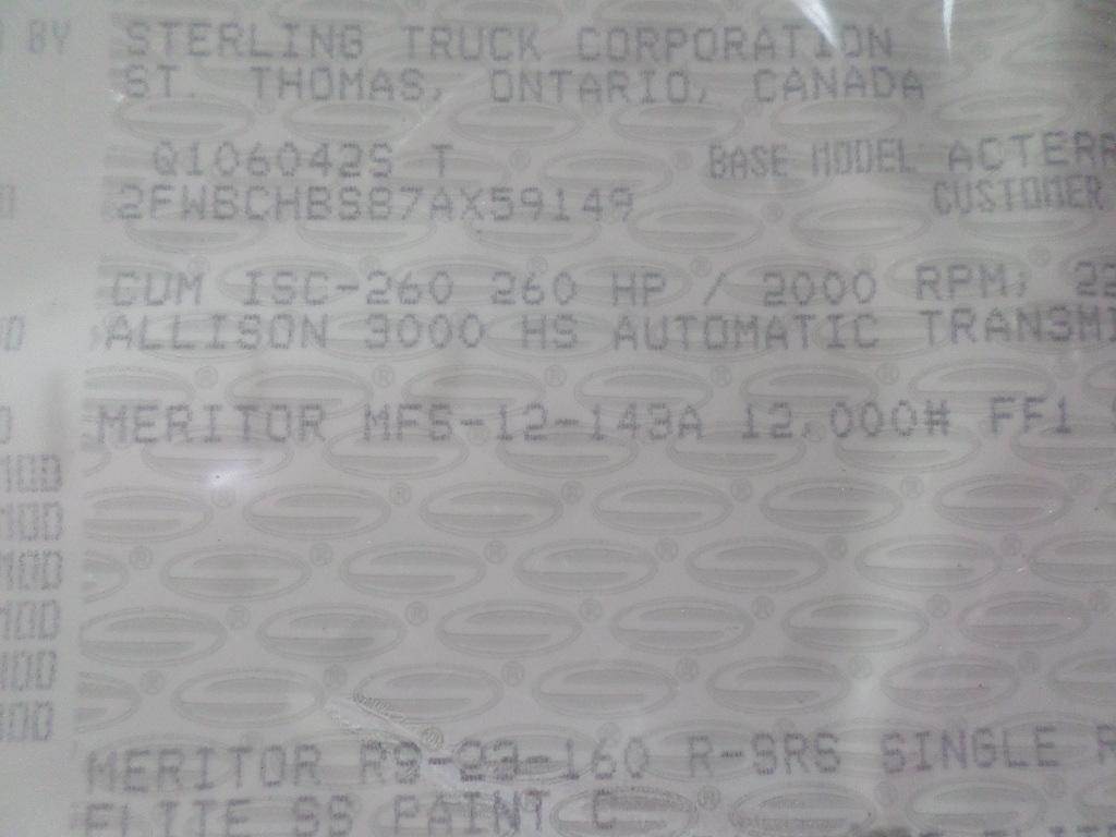 2007 Sterling Acterra 5500 Windshield Washer Reservoir