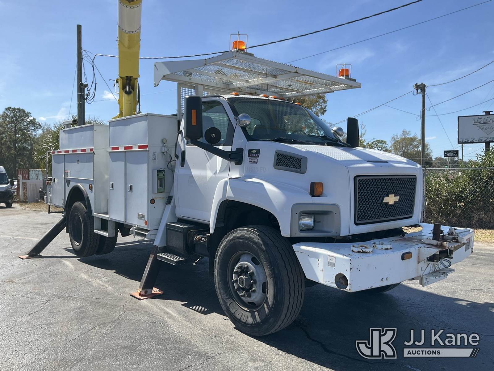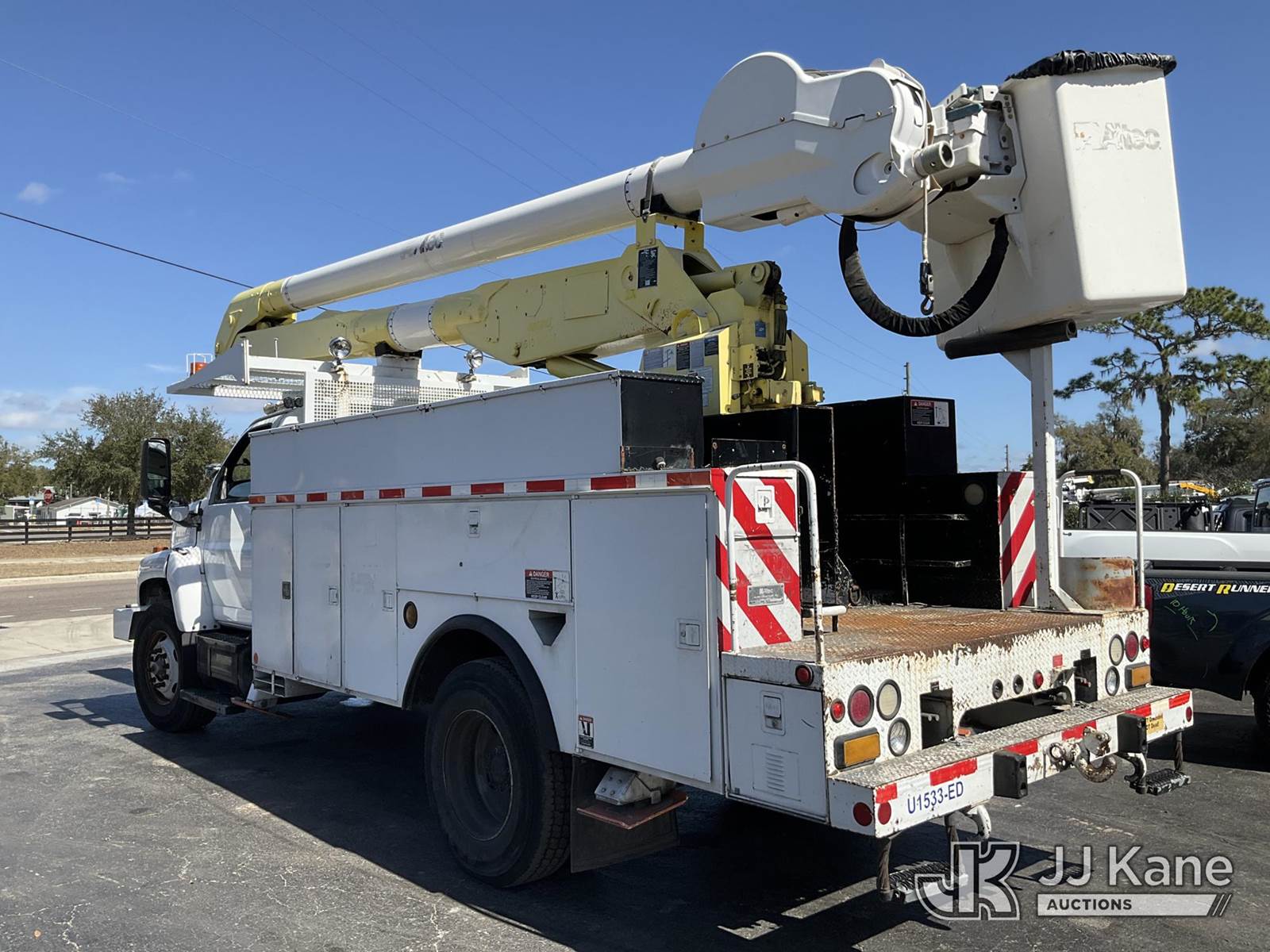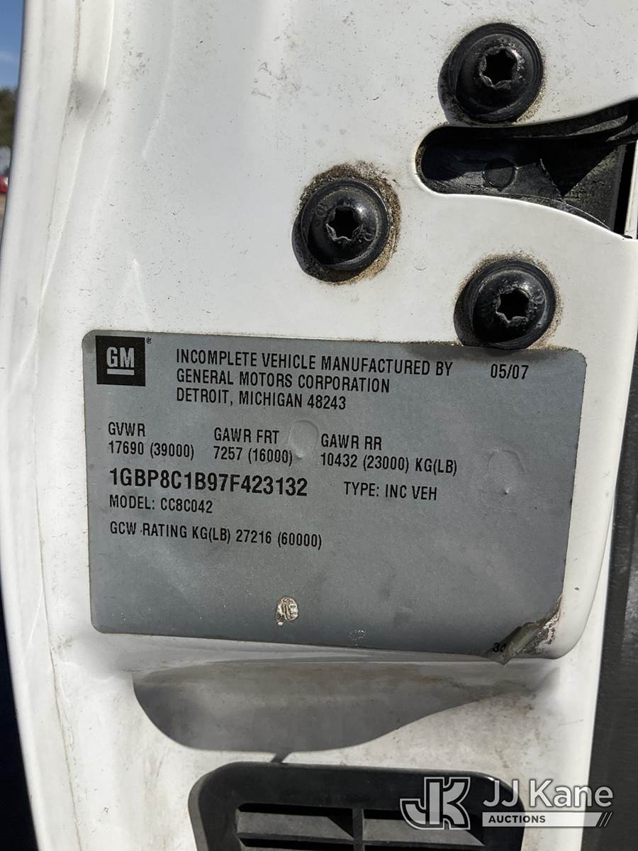 Altec AA600-MH, 55 ft, Material Handling Bucket Truck s/n 0607-J4243, with two-man bucket, rear mounted on 2007 Chevrolet C8500 Utility Truck, Isuzu 7.8L diesel, 4X2, Auto, A/C, with front winch, (68,536 miles) (Runs, Moves & Upper Operates) (Body/Paint Damage) This is a Titled Item NOTE: This unit is being sold AS IS/WHERE IS via Timed Auction and is located in Ocala, FL. For more information & removal arrangements please contact Mike Lessard @ 352-629-6677. (Manuals provided in cab) (Buyer is responsible for removal. Assistance by consignor or JJ Kane Auctions is not assured.)