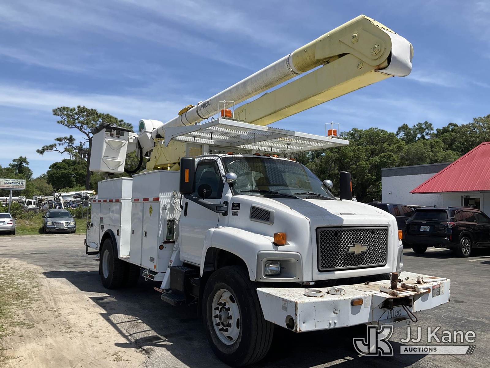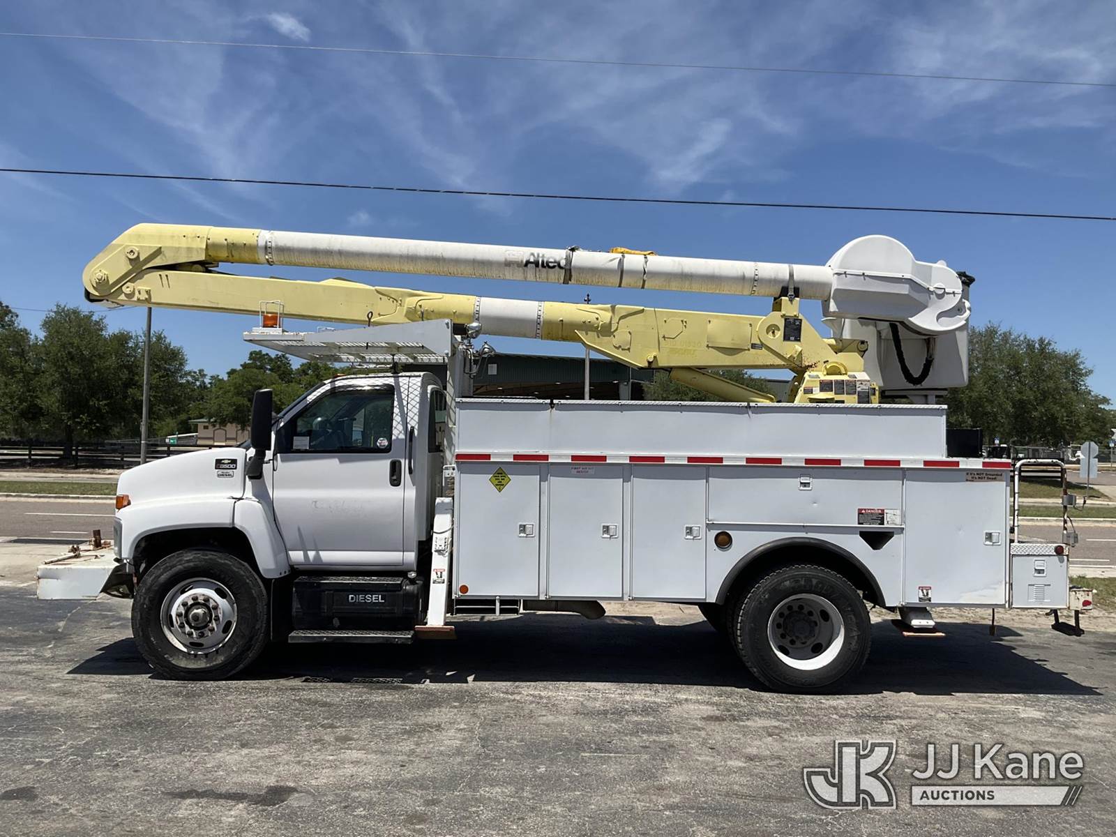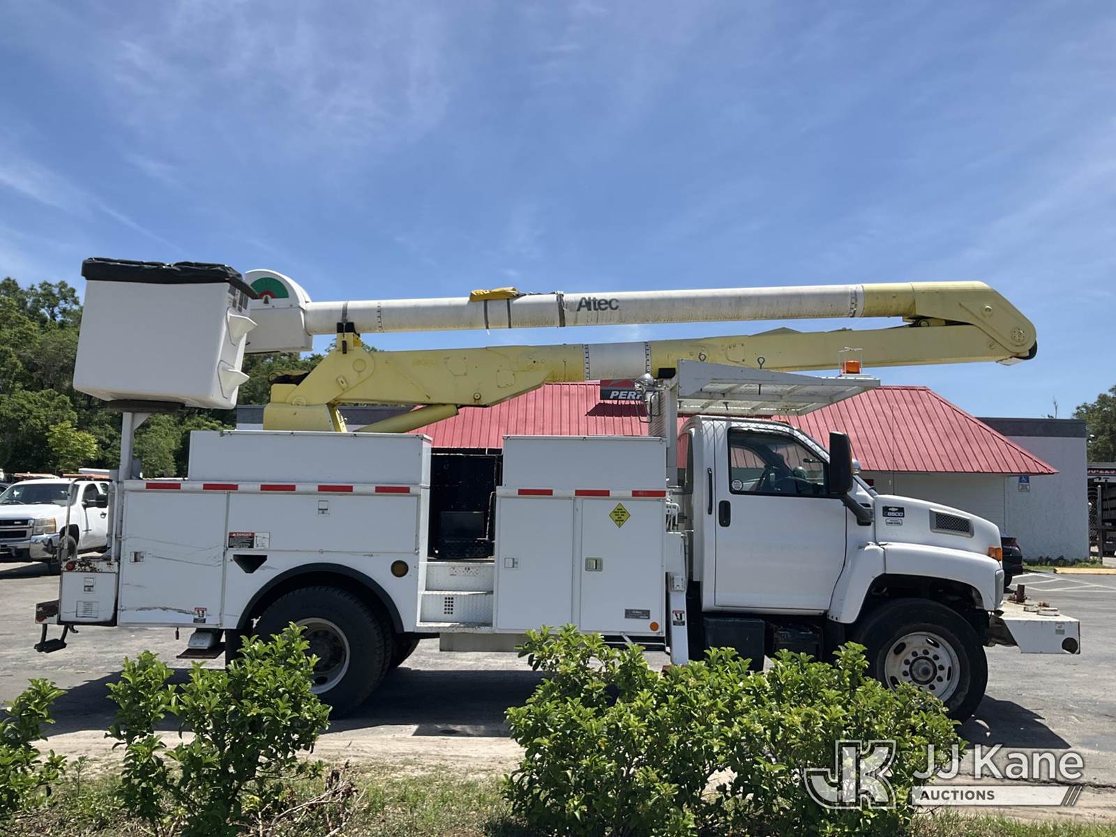 Altec AA600-MH, 55 ft, Material Handling Bucket Truck s/n 0607-J4242, with two-man bucket & 4 hyd outriggers, rear mounted on 2007 Chevrolet C8500 Utility Truck, Isuzu 7.8L 4X2, diesel, Auto, A/C, with front winch, (90,328 miles) (Runs, Will Move, Transmission Is Not Shifting Right) (Seller States: Upper Unit Is Disabled For Safety Reasons, Boom Leveling Cables Are Out Of Date, Missing Manual Tilt Safety Pin, Boom Has Been Disabled At Batteries, Truck ECM Is Bad Most Dash Functions Do Not Work, Check Engine Light Is) (Bidding Restricted to Licensed Vehicle Dealers Only), This is a Titled Item NOTE: This unit is being sold AS IS/WHERE IS via Timed Auction and is located in Ocala, FL. Inspection & preview days for this unit are by appointment only; please contact us at contact@jjkane.com or 84-Go-JJKane for more details. For more information & removal arrangements please contact Mike Lessard @ (352) 629-6677. (Missing manuals, See Auction Company for Manufacturers Information to obtain manuals) (Buyer is responsible for removal. Assistance by consignor or JJ Kane Auctions is not assured.)