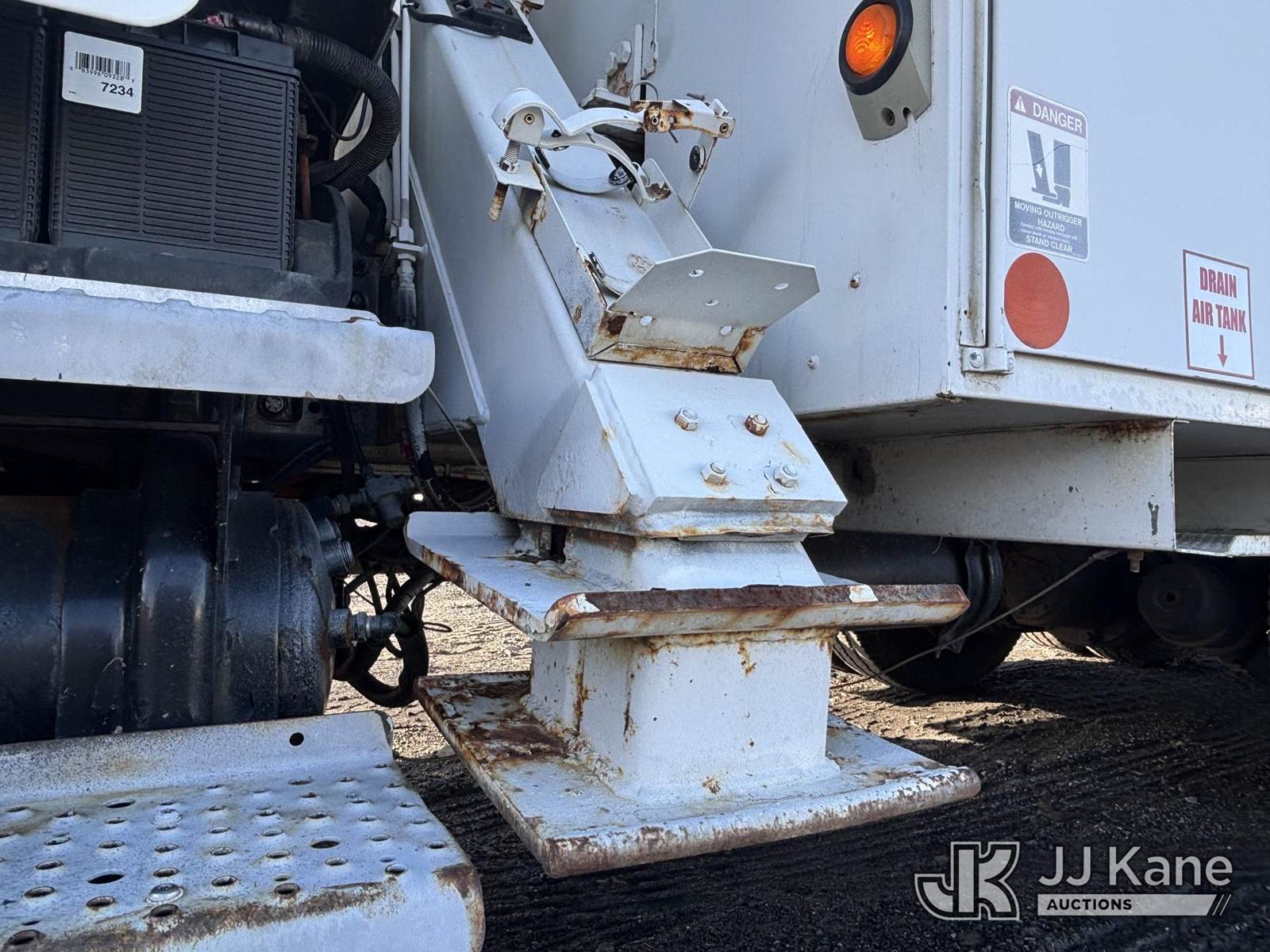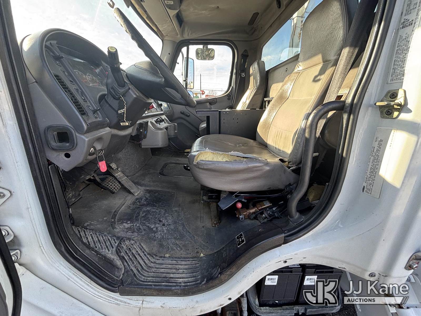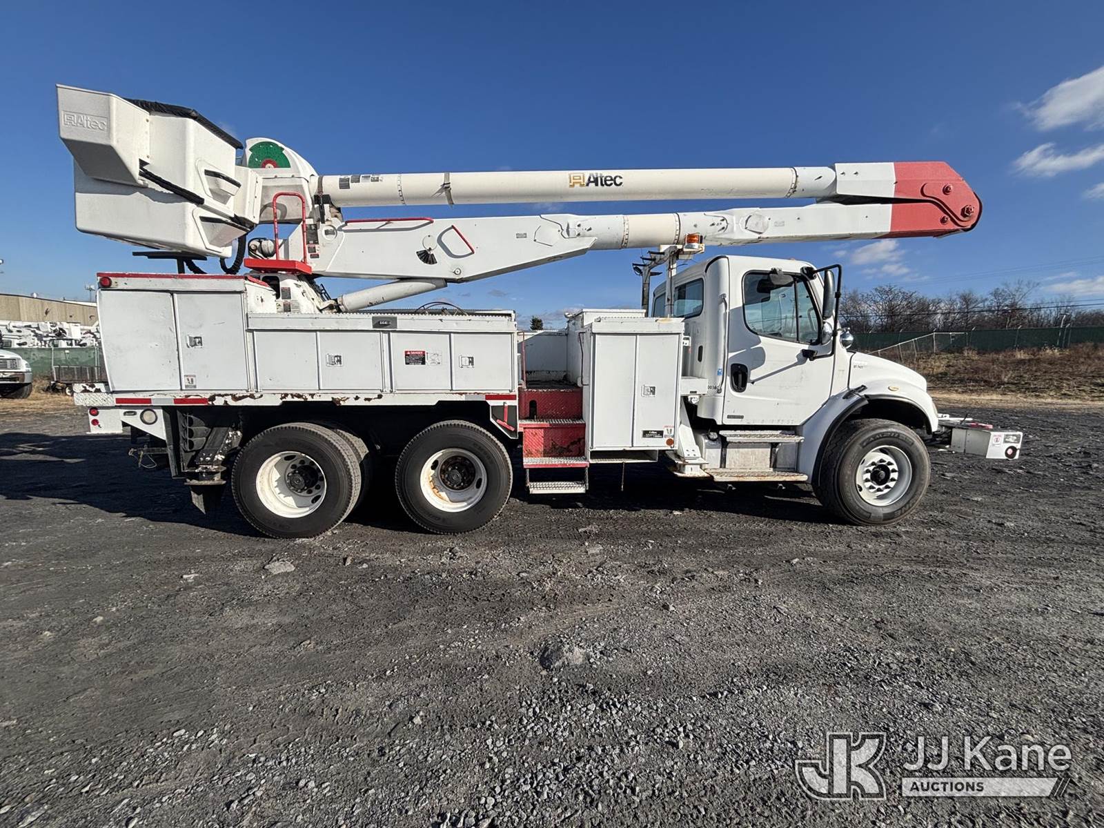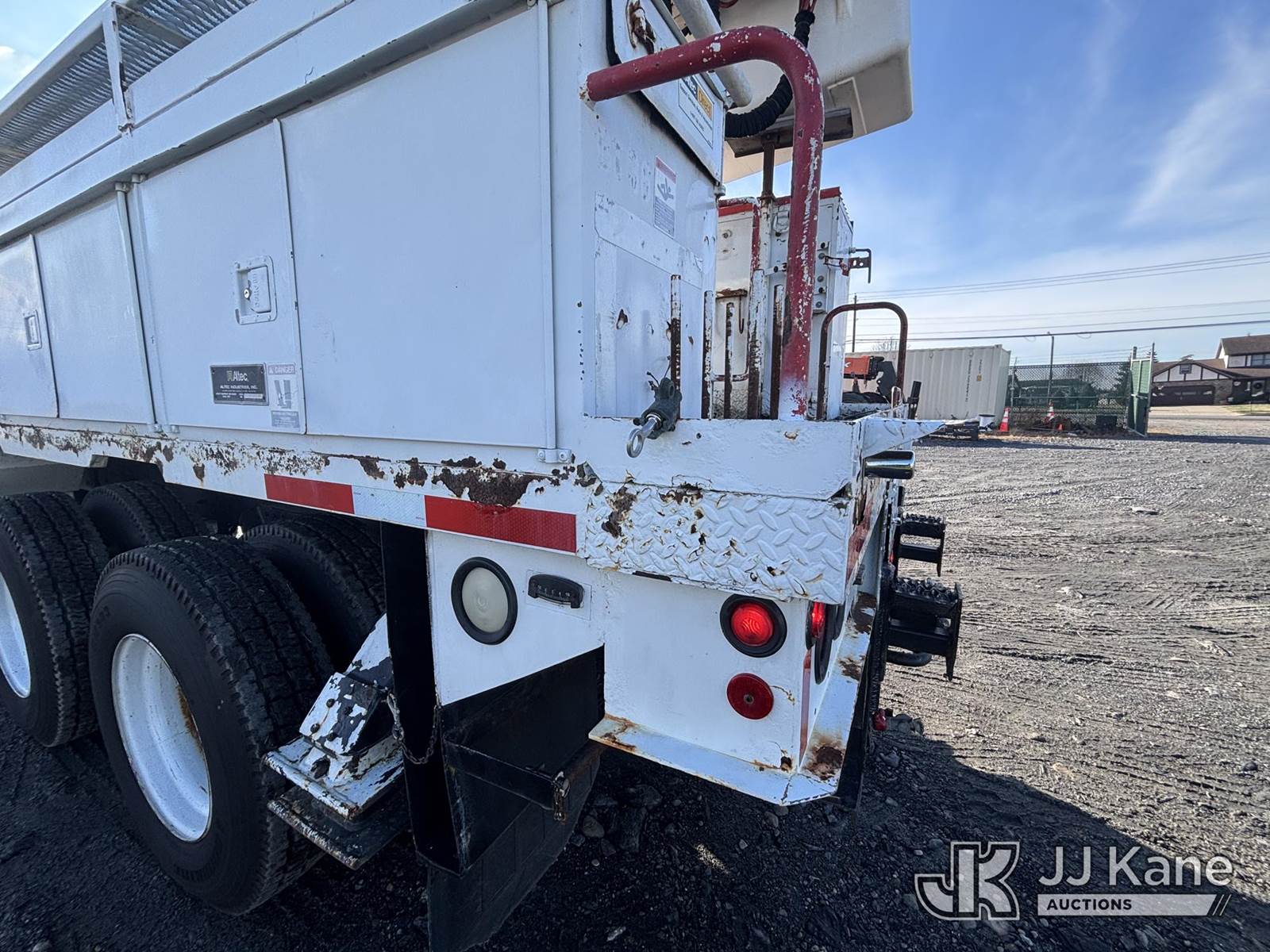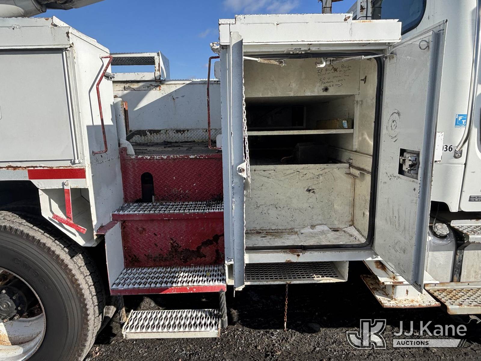 Altec AA755, 55 ft, Material Handling Bucket Truck s/n 0806BZ4466, with Two-Man Bucket, rear mounted on 2007 Freightliner M2 106 T/A Utility Truck, Cat C7 Diesel, Auto, A/C, with Front End Cable Winch & Rope, (138,789 miles) (Runs & Moves, Does Not Operate, Unit Main Fuse Leads Corroded & Cut, Condition Unknown, Several Areas of Fiberglass Damage, Cracked Hoses, Boom Tip Damage, Body & Rust Damage; Requires ANSI Inspection for repair/replacement requirements) (Reads 1,394 hours) This is a Titled Item NOTE: This unit is being sold AS IS/WHERE IS via Timed Auction and is located in Plains, PA. Inspection & preview days for this unit are the 2 business days prior to the first day of items closing for this auction, item is located at 250 Laird St Plains, PA 18705 and hours of operations are 8a-4p.For pre-sale questions, please contact Mary Darlington @ (570) 899-4930 or Mary.Darlington@JJKane.com. (Missing manuals, See Auction Company for Manufacturers Information to obtain manuals) (Buyer is responsible for removal. Assistance by consignor or JJ Kane Auctions is not assured.)