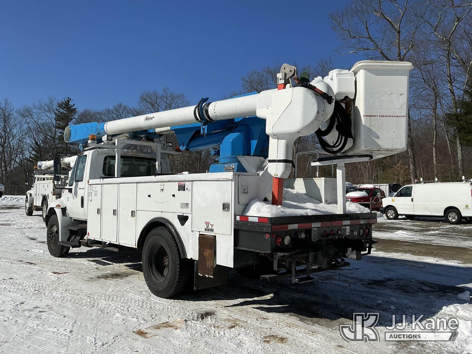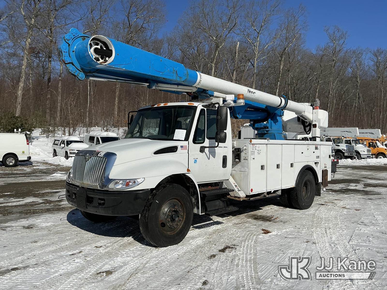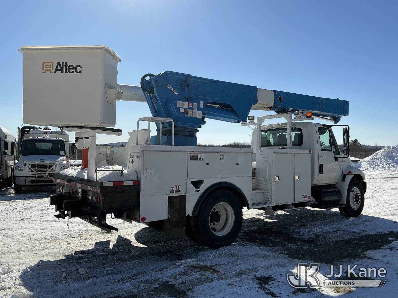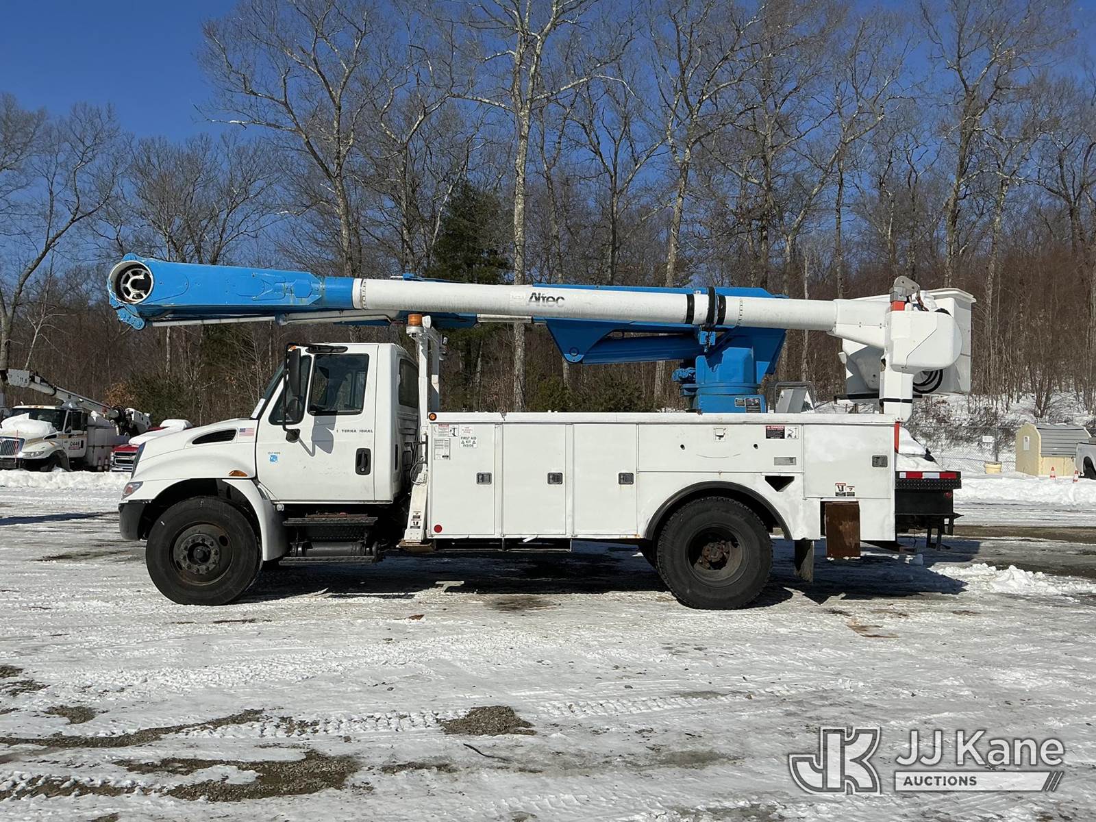 Altec AM55-E, 61 ft, Over-Center Material Handling Bucket Truck s/n 0406DM1105, with single-man bucket & 4 hyd outriggers, rear mounted on 2007 International 4300 Utility Truck, DT466 diesel, Auto, A/C, (172,759 miles) (Runs, Moves & Upper Operates) (Air Leak, Does Not Build Air, ABS Light On, Rust Damage) (Reads 15,643 hours) This is a Titled Item NOTE: This unit is being sold AS IS/WHERE IS via Timed Auction and is located in Shrewsbury, MA. Inspection & preview days for this unit are the 2 business days prior to the first day of items closing for this auction, item is located at 11 Fortune Blvd Shrewsbury, MA 01545 and hours of operations are 8a-4p. For pre-sale questions, please contact Rob Gifford @ (508) 864-4126. (Manuals provided in cab) (Buyer is responsible for removal. Assistance by consignor or JJ Kane Auctions is not assured.)