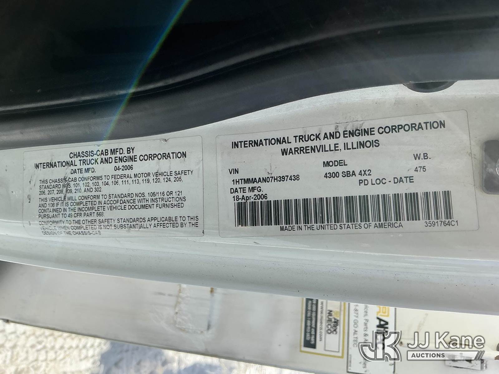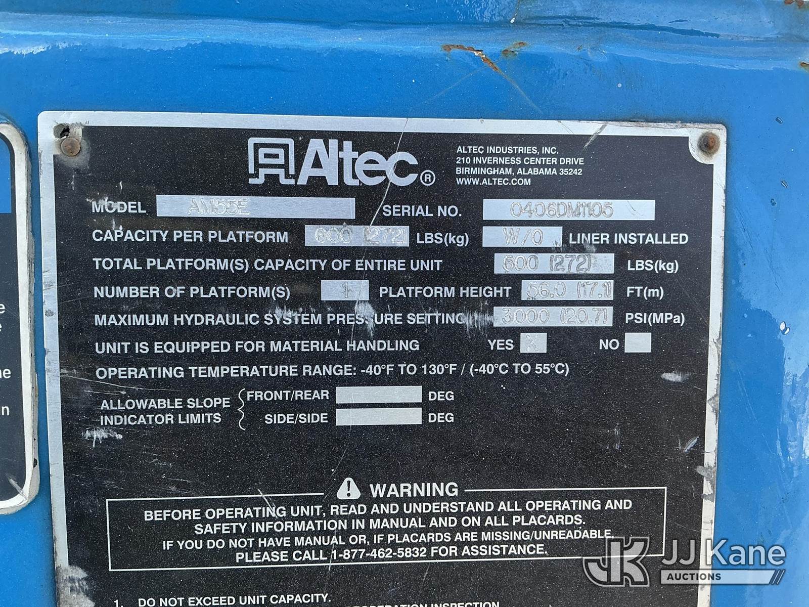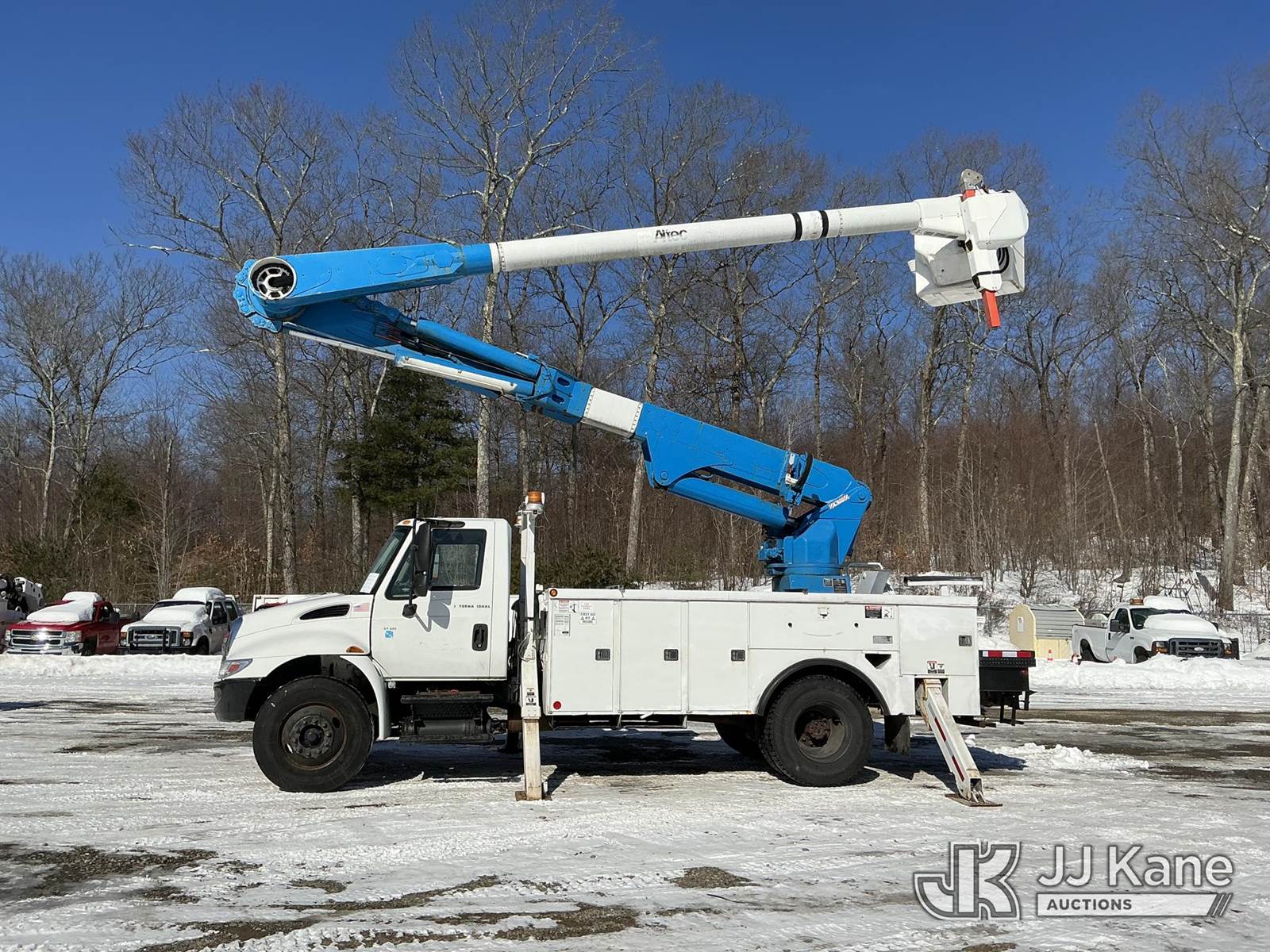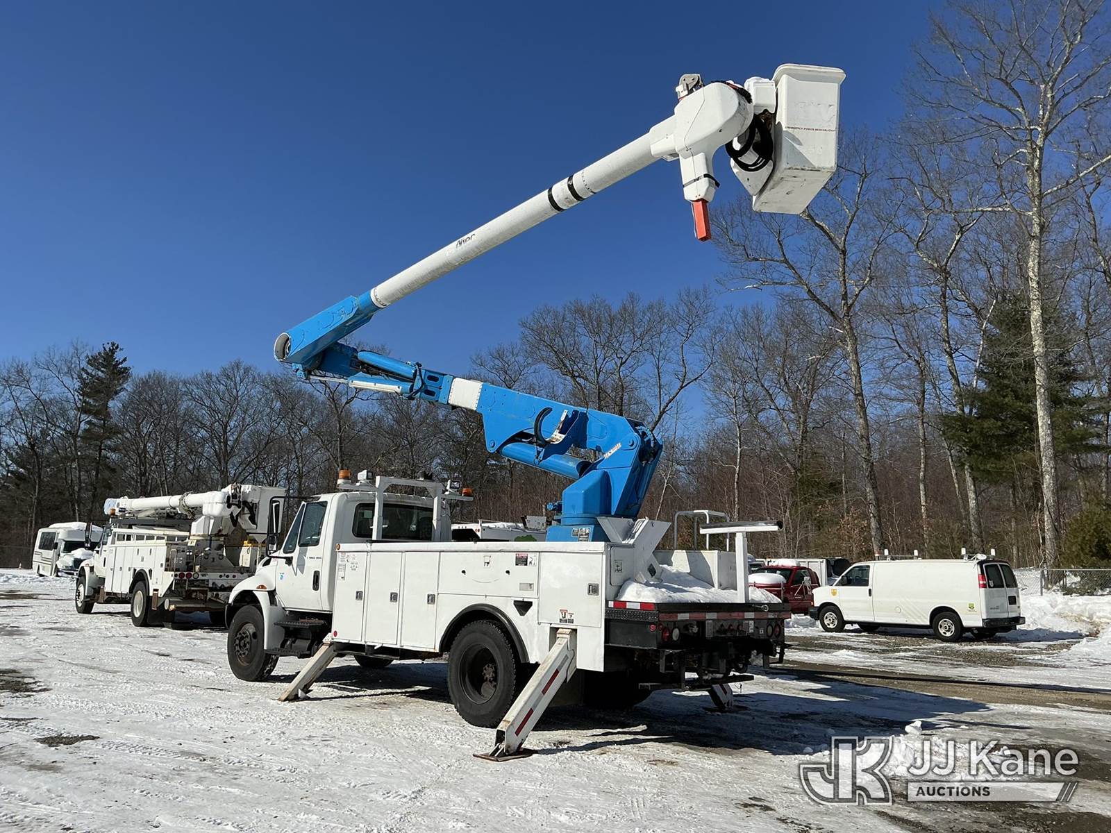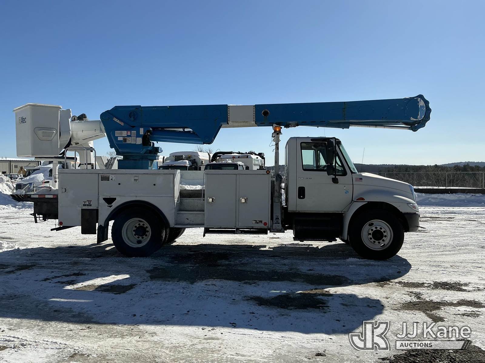 Altec AM55-E, 61 ft, Over-Center Material Handling Bucket Truck s/n 0406DM1105, with single-man bucket & 4 hyd outriggers, rear mounted on 2007 International 4300 Utility Truck, DT466 diesel, Auto, A/C, (172,759 miles) (Runs, Moves & Upper Operates) (Air Leak, Does Not Build Air, ABS Light On, Rust Damage) (Reads 15,643 hours) This is a Titled Item NOTE: This unit is being sold AS IS/WHERE IS via Timed Auction and is located in Shrewsbury, MA. Inspection & preview days for this unit are the 2 business days prior to the first day of items closing for this auction, item is located at 11 Fortune Blvd Shrewsbury, MA 01545 and hours of operations are 8a-4p. For pre-sale questions, please contact Rob Gifford @ (508) 864-4126. (Manuals provided in cab) (Buyer is responsible for removal. Assistance by consignor or JJ Kane Auctions is not assured.)