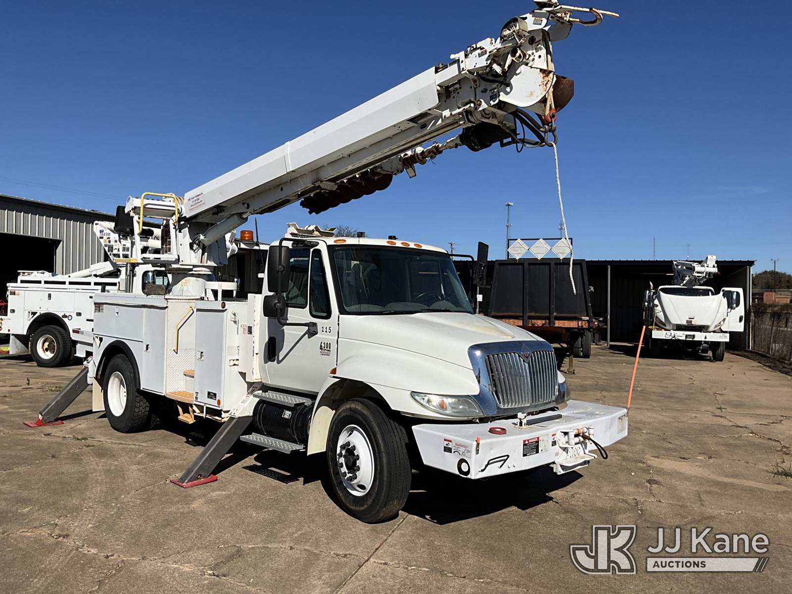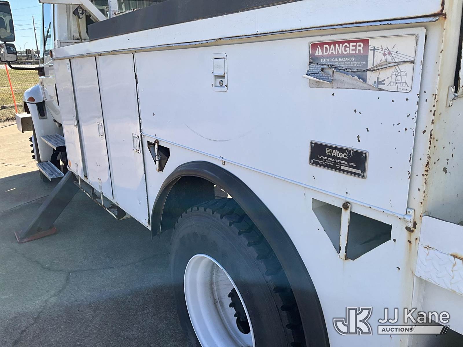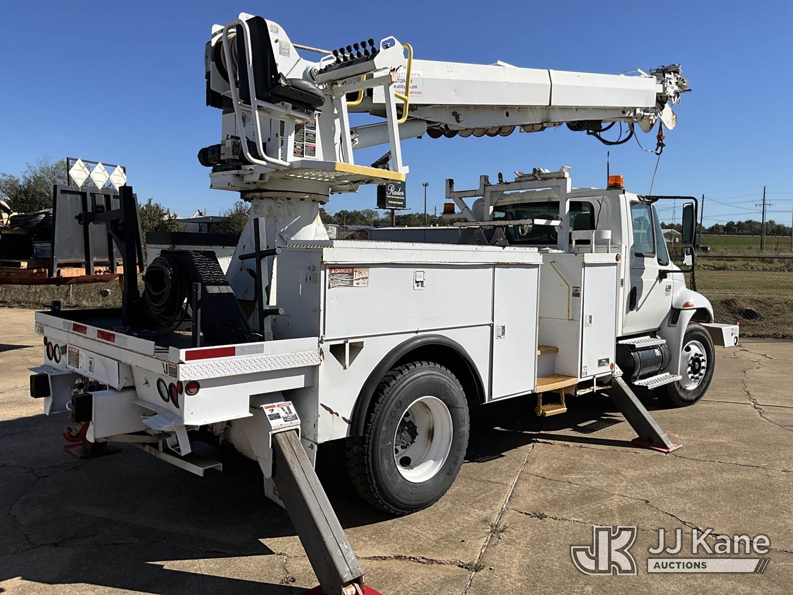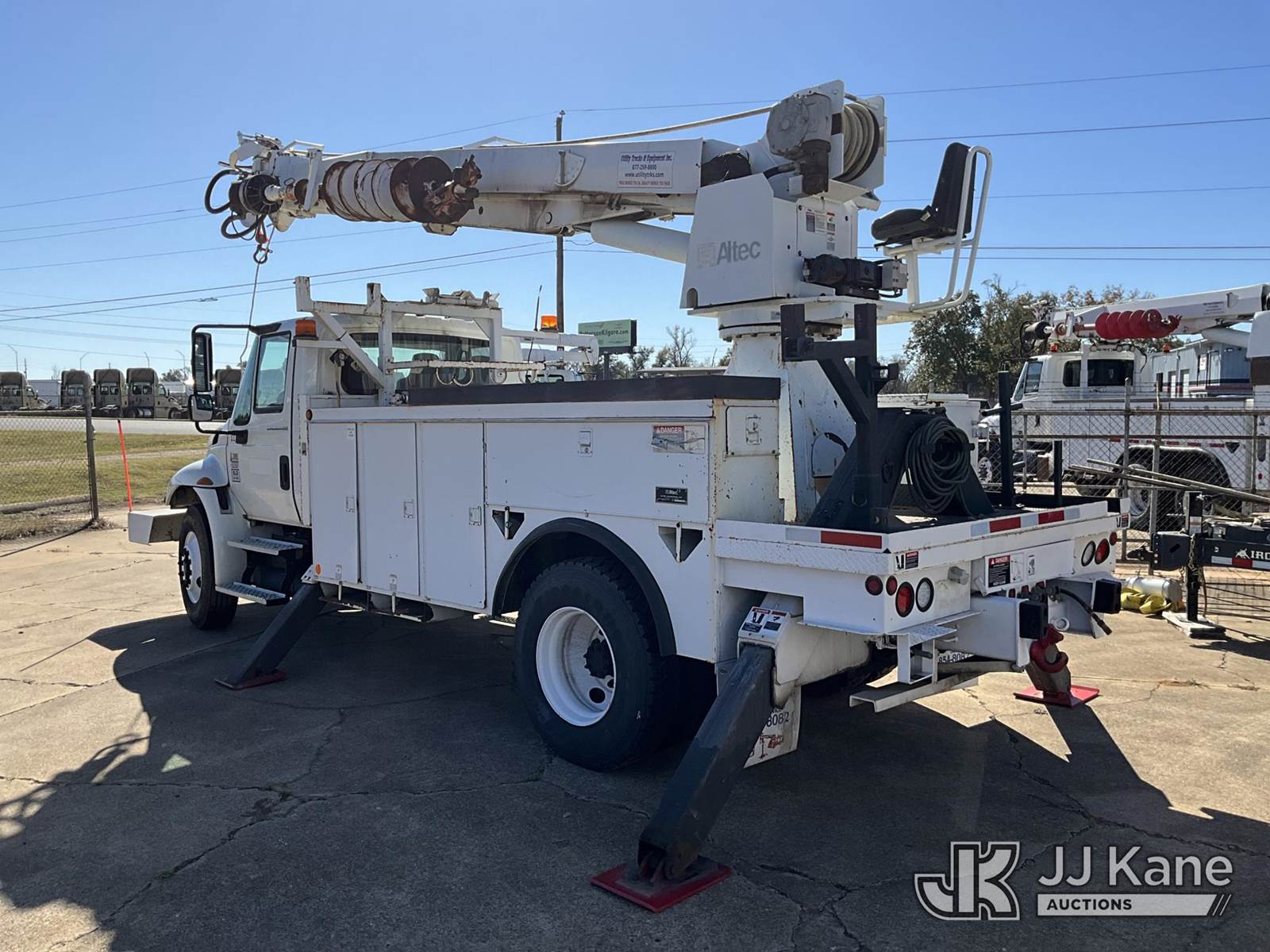 Altec DM47TR, 23,790 Lb Digger Derrick s/n 0706DV2145, with 47' sheave height,3 section hyd boom, 2 spd digger, heel winch, pole grabs, upper controls, riding seat & 4 hyd outriggers, rear mounted on 2007 International 4300 Utility Truck, 7.6L Auto, 4X2, diesel, A/C, with Front winch, (113,675 miles) (Runs, Moves & Upper Operates) (Body Damage) This is a Titled Item NOTE: This unit is being sold AS IS/WHERE IS via Timed Auction and is located in Longview, TX. For more information & removal arrangements please contact Julio Labato @ 575-551-8075. (Missing manuals, See Auction Company for Manufacturers Information to obtain manuals) (Buyer is responsible for removal. Assistance by consignor or JJ Kane Auctioneers is not assured.)
