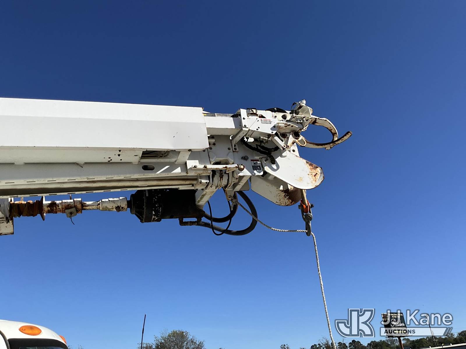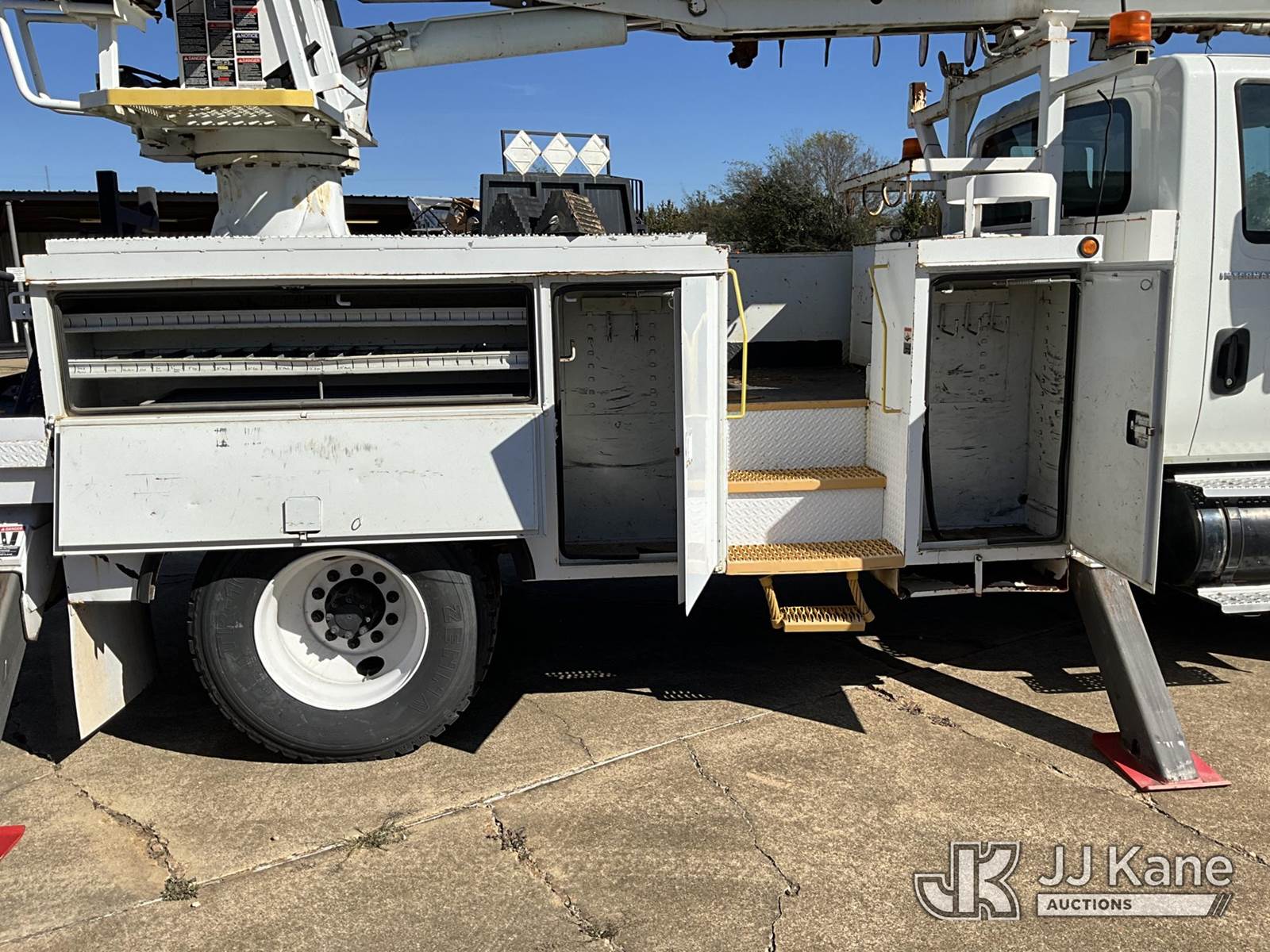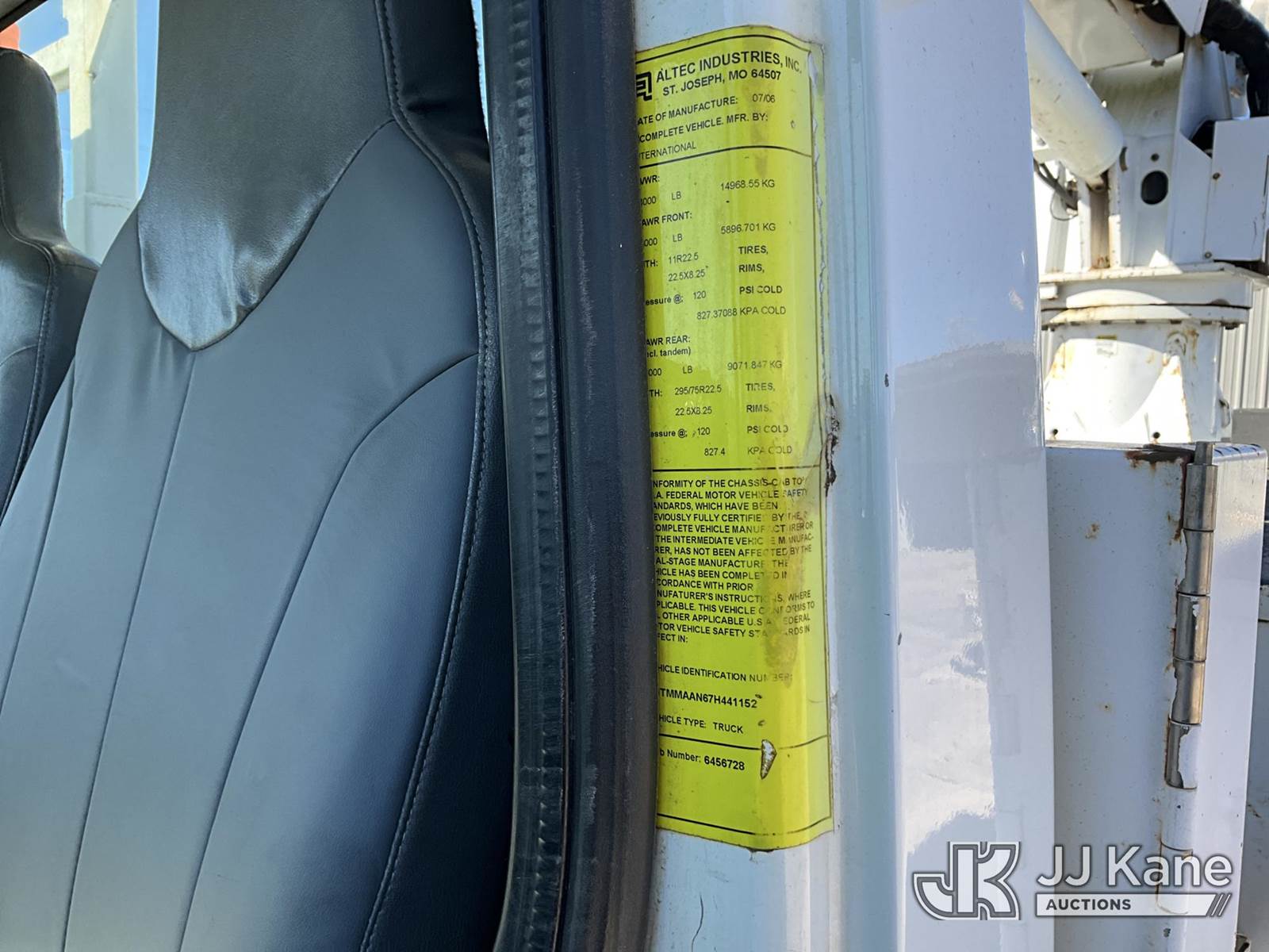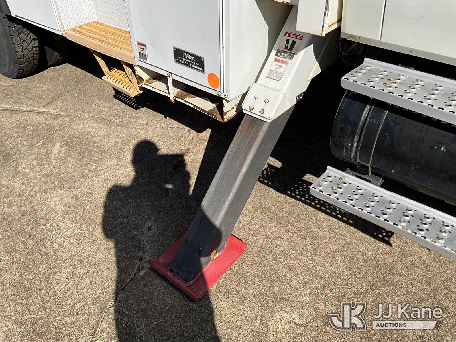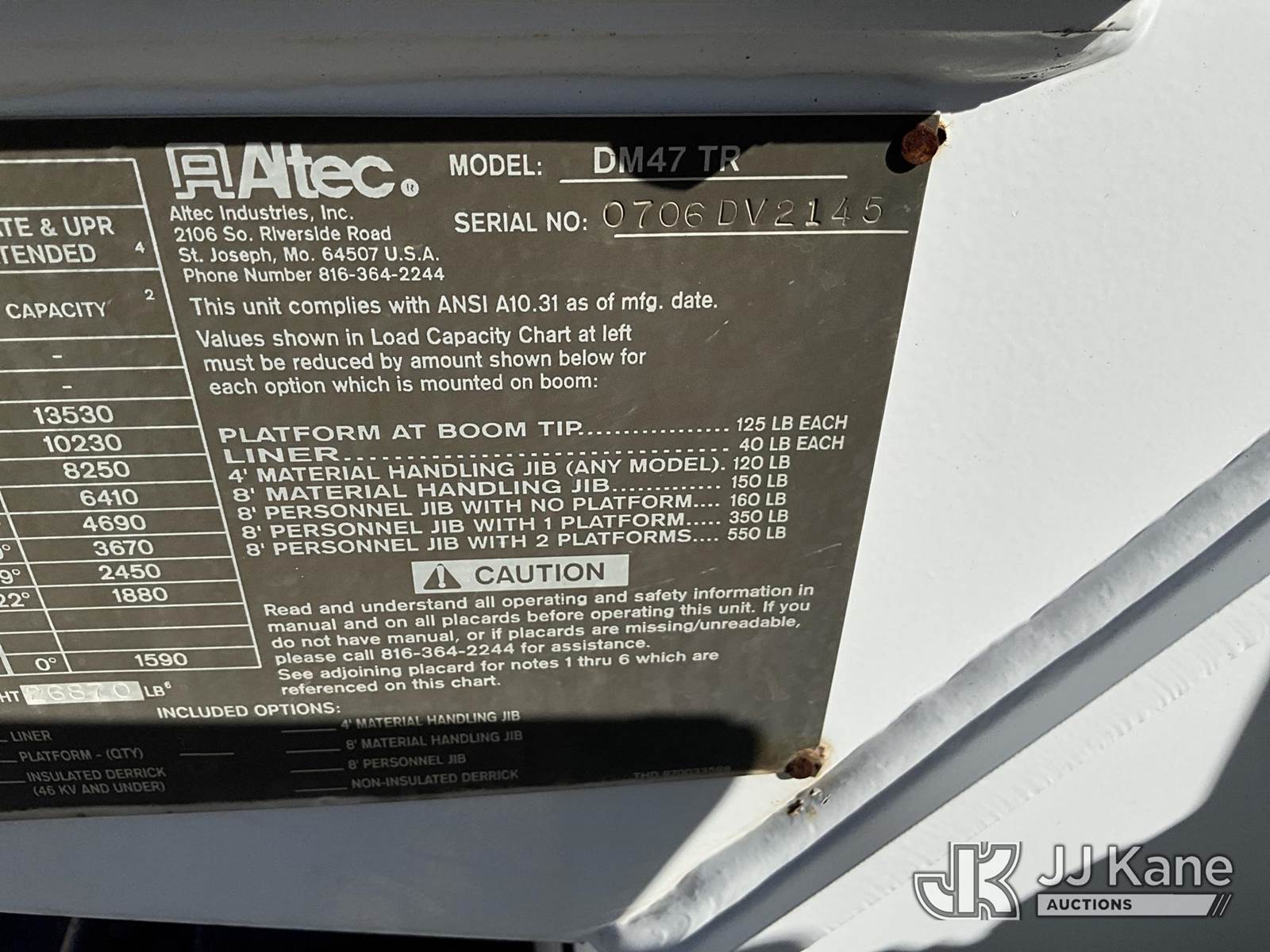 Altec DM47TR, 23,790 Lb Digger Derrick s/n 0706DV2145, with 47' sheave height,3 section hyd boom, 2 spd digger, heel winch, pole grabs, upper controls, riding seat & 4 hyd outriggers, rear mounted on 2007 International 4300 Utility Truck, 7.6L Auto, 4X2, diesel, A/C, with Front winch, (113,675 miles) (Runs, Moves & Upper Operates) (Body Damage) This is a Titled Item NOTE: This unit is being sold AS IS/WHERE IS via Timed Auction and is located in Longview, TX. For more information & removal arrangements please contact Julio Labato @ 575-551-8075. (Missing manuals, See Auction Company for Manufacturers Information to obtain manuals) (Buyer is responsible for removal. Assistance by consignor or JJ Kane Auctioneers is not assured.)