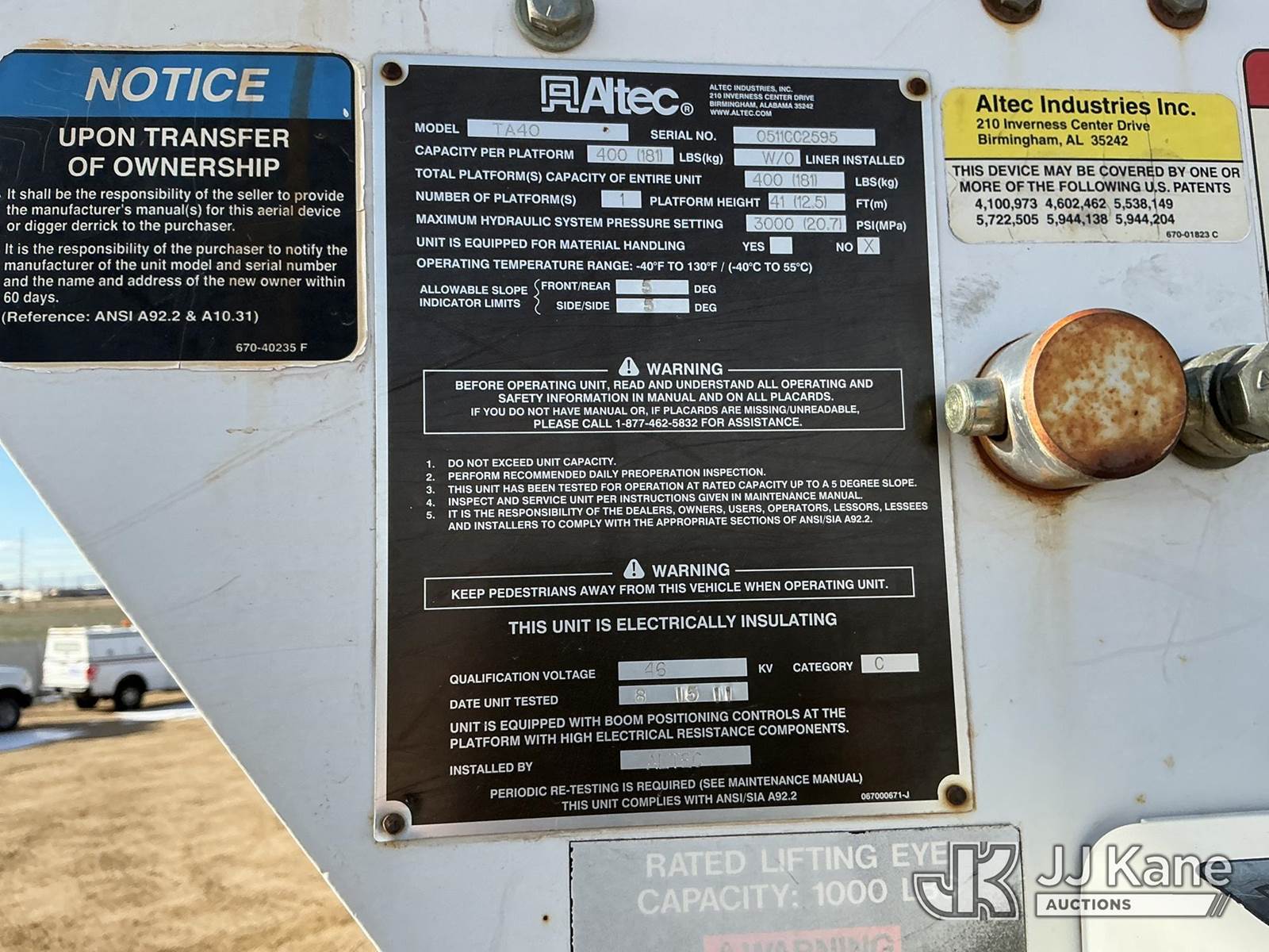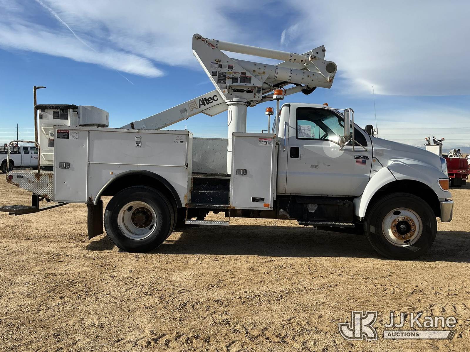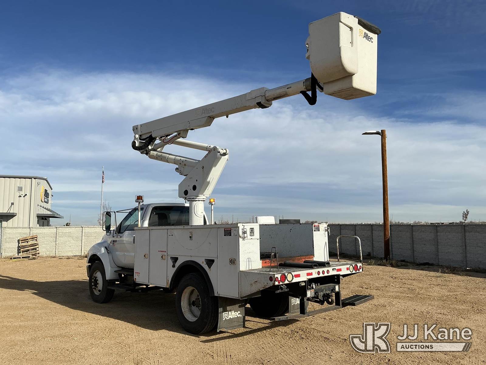 Altec TA40, 46 ft, Articulating & Telescopic Bucket Truck s/n 0511CC2595, with Single-Man Bucket, mounted behind cab on 2007 FORD F750 Utility Truck, Cat C7 Acert Auto, diesel, A/C, (149,384 miles) (Runs, Moves & Upper Operates) (No Emissions)) (Reads 3,285 hours) This is a Titled Item NOTE: This unit is being sold AS IS/WHERE IS via Timed Auction and is located in Fort Lupton, CO. Inspection & preview days for this unit are the 2 business days prior to the first day of items closing for this auction, item is located at 2105 Northland Dr Fort Lupton, CO 80621 and hours of operations are 8a-4p. For pre-sale questions, please contact Dakota Hoffman @ (720) 621-0786. Dealer License Number 47109. (Manuals provided in cab) (Buyer is responsible for removal. Assistance by consignor or JJ Kane Auctioneers is not assured.)