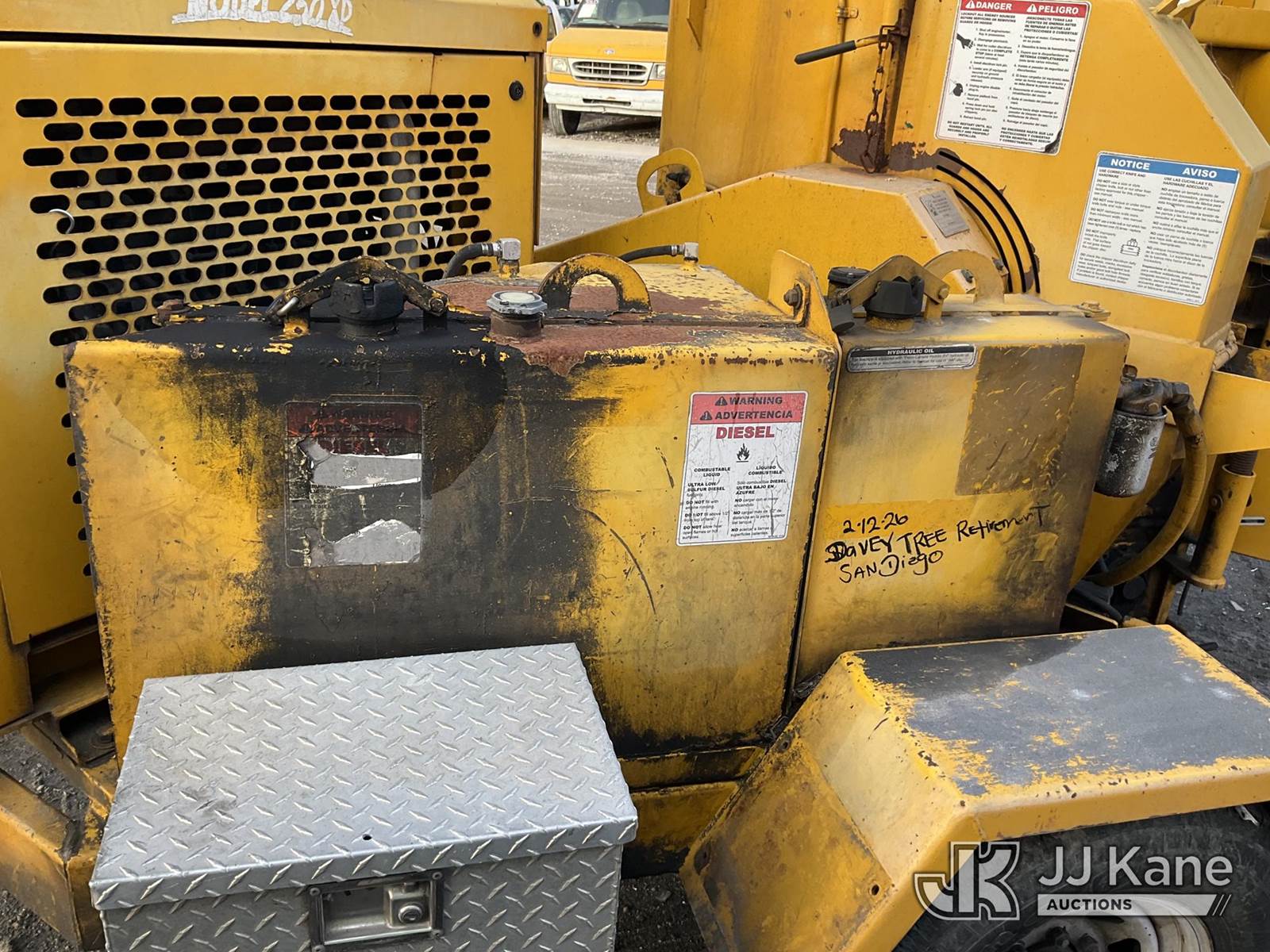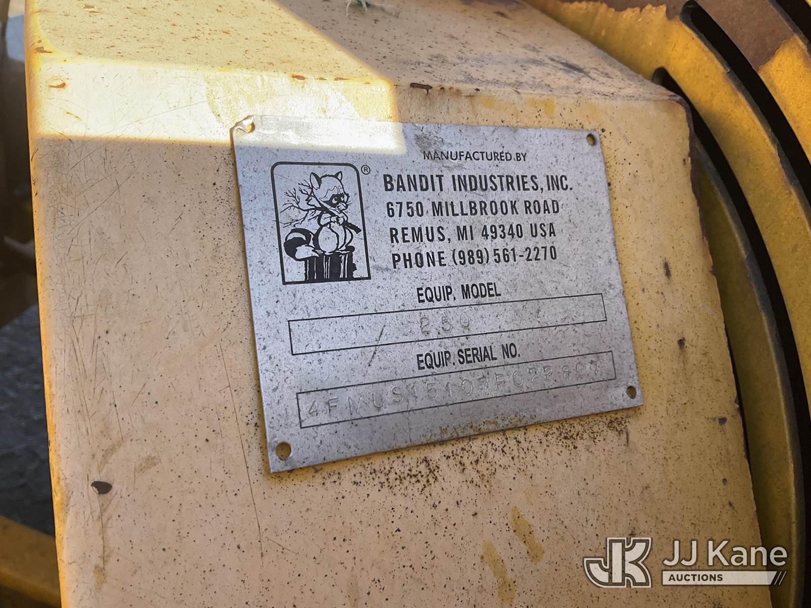2007 Bandit 250 Chipper (12in Drum), s/n 4FMUS15107R022807, John Deere diesel, with pintle hitch, (Not Running, Operation Unknown) (True Hours Unknown, No Key, Unable To Access Battery Compartment, No Key For Battery Compartment) May be subject to ARB Regulations This is a Titled Item NOTE: This unit is being sold AS IS/WHERE IS via Timed Auction and is located in Jurupa Valley, CA. Inspection & preview days for this unit are the 2 business days prior to the first day of items closing for this auction, item is located at 4510 Muth Way Jurupa Valley, CA 92509 and hours of operations are 8a-4p. For pre-sale questions, please contact please contact Office Staff @ (310) 353-7140. Dealer License Number 45696. (Buyer is responsible for removal. Assistance by consignor or JJ Kane Auctions is not assured.)
